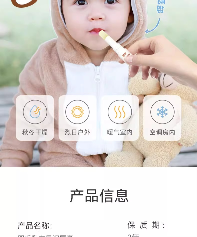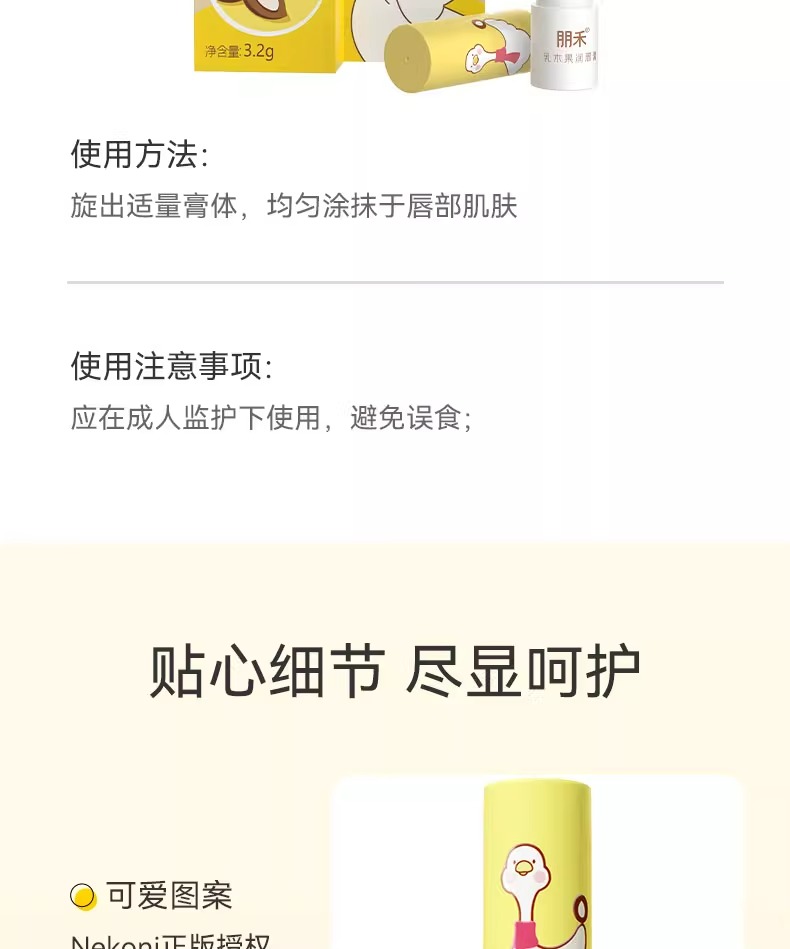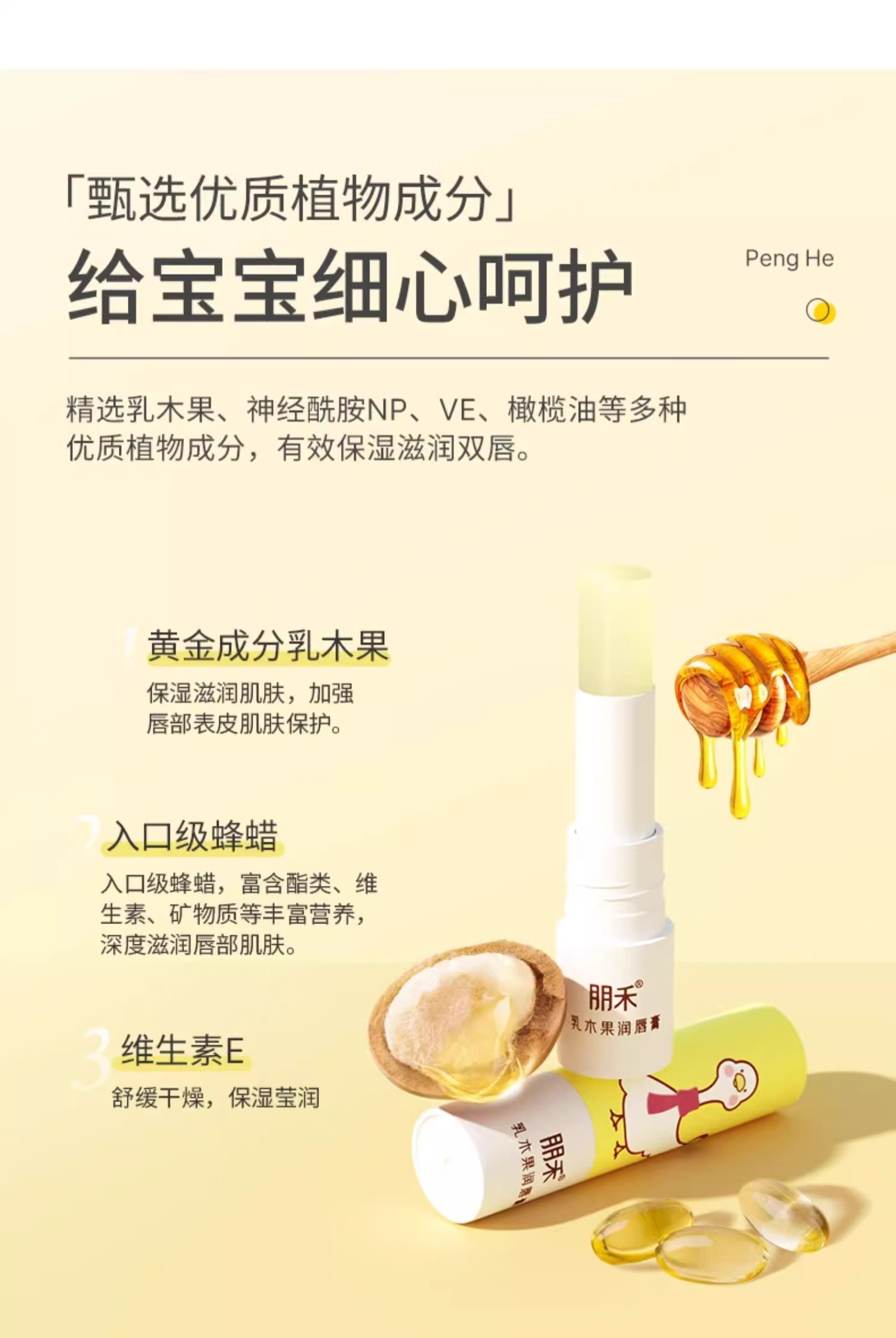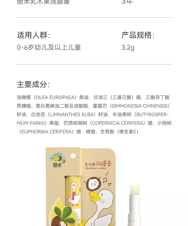 3.2g朋禾乳木果润唇膏(新生儿可用)0-6岁幼儿及以上儿童