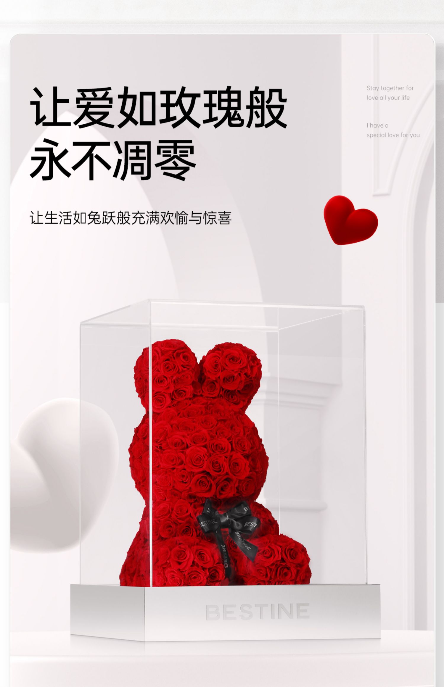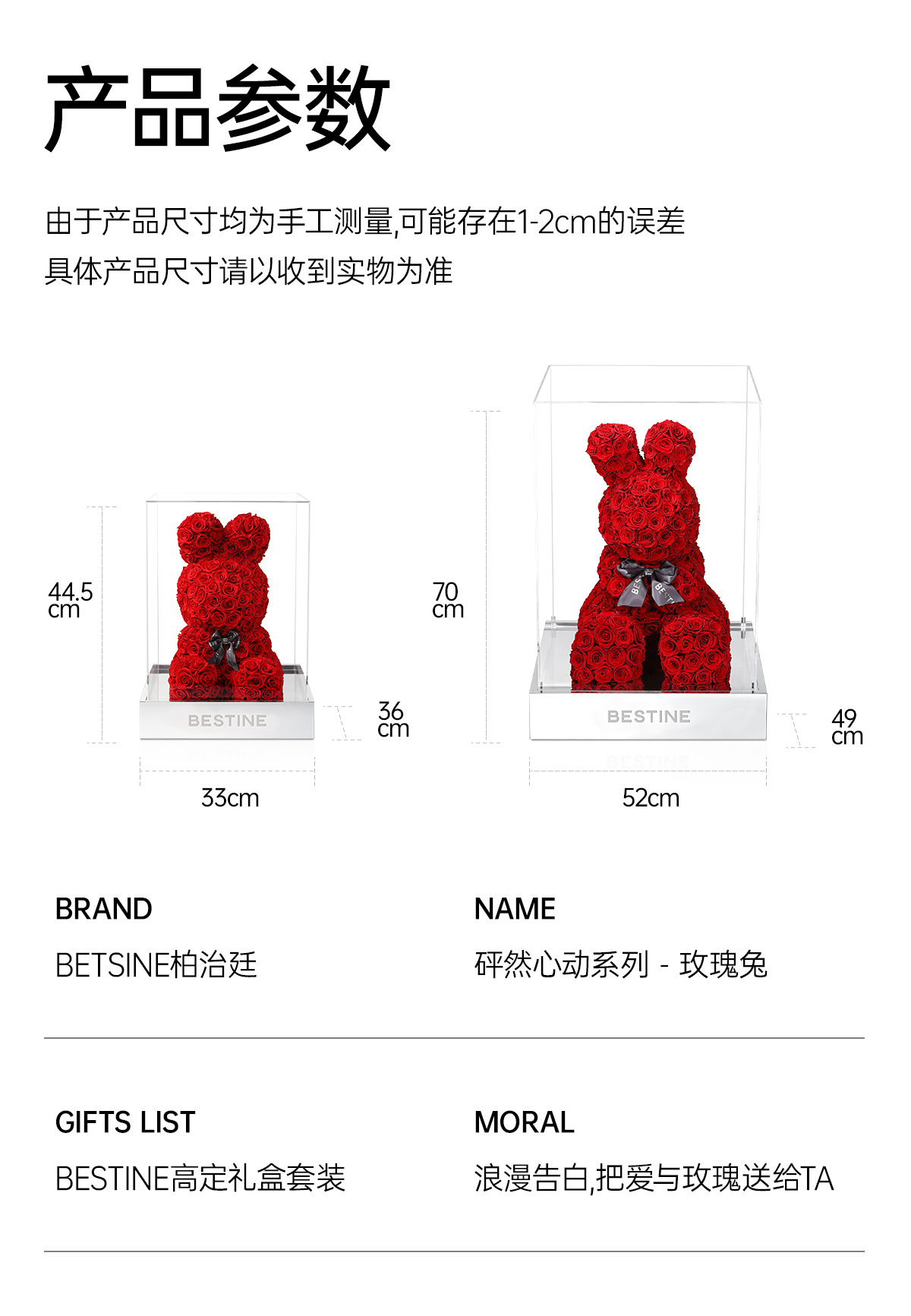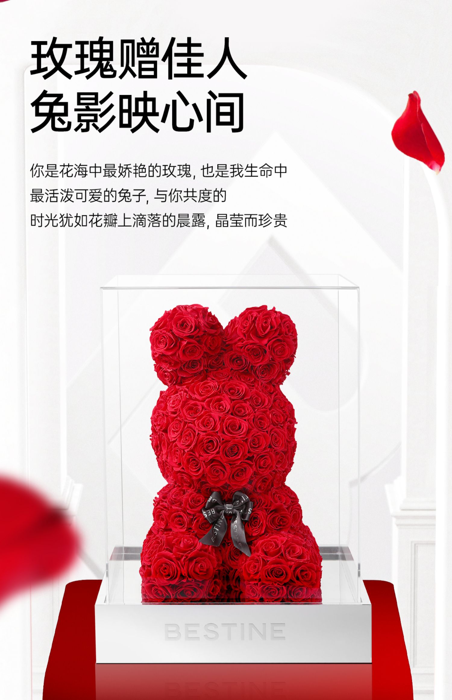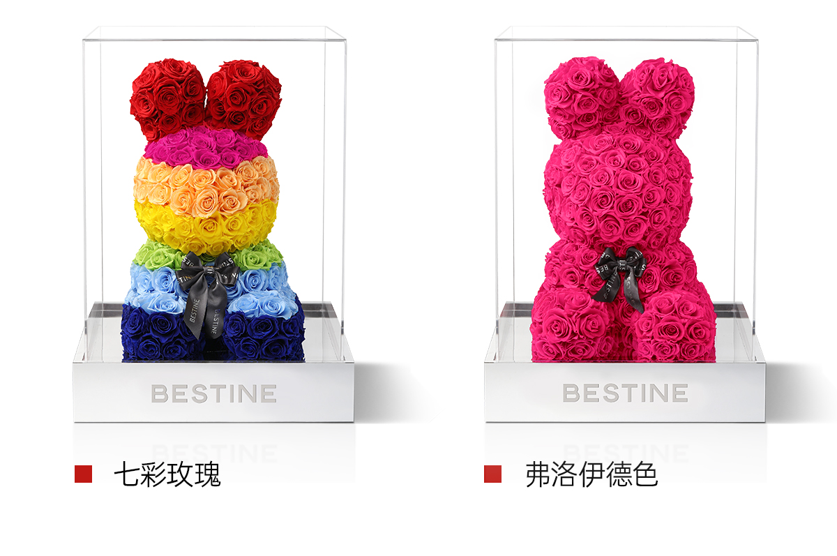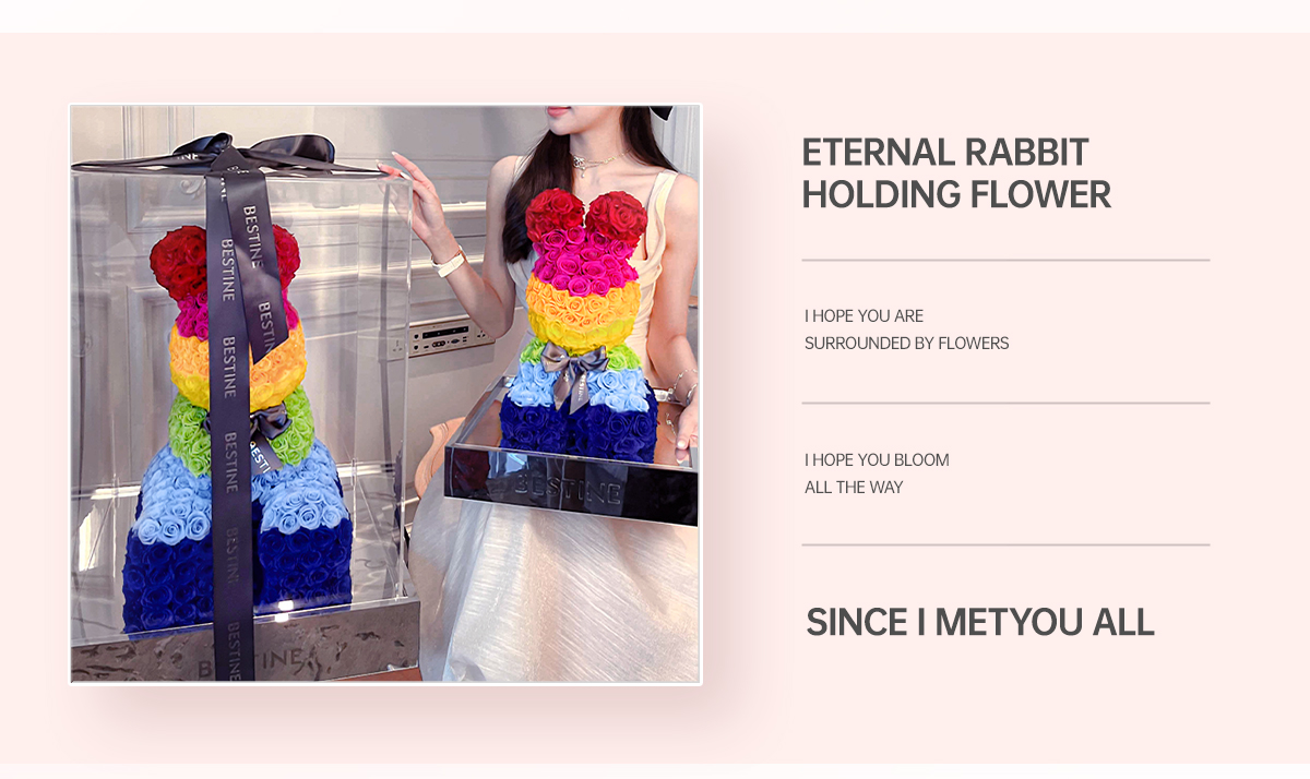 VBEINGS花语 红色玫瑰兔 永生花定制礼盒送女友表白生日礼物
