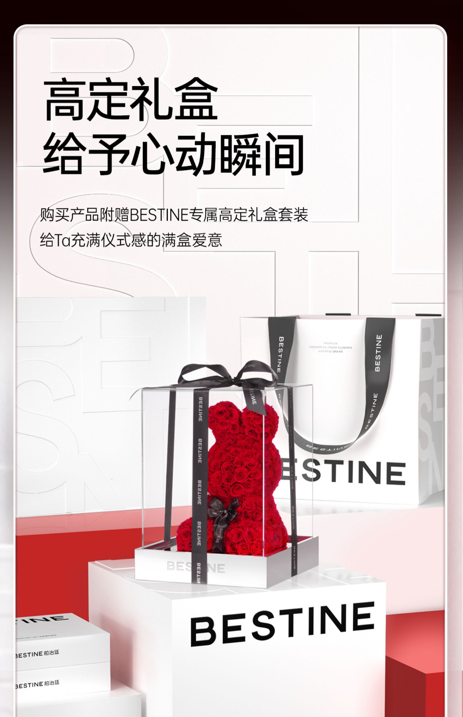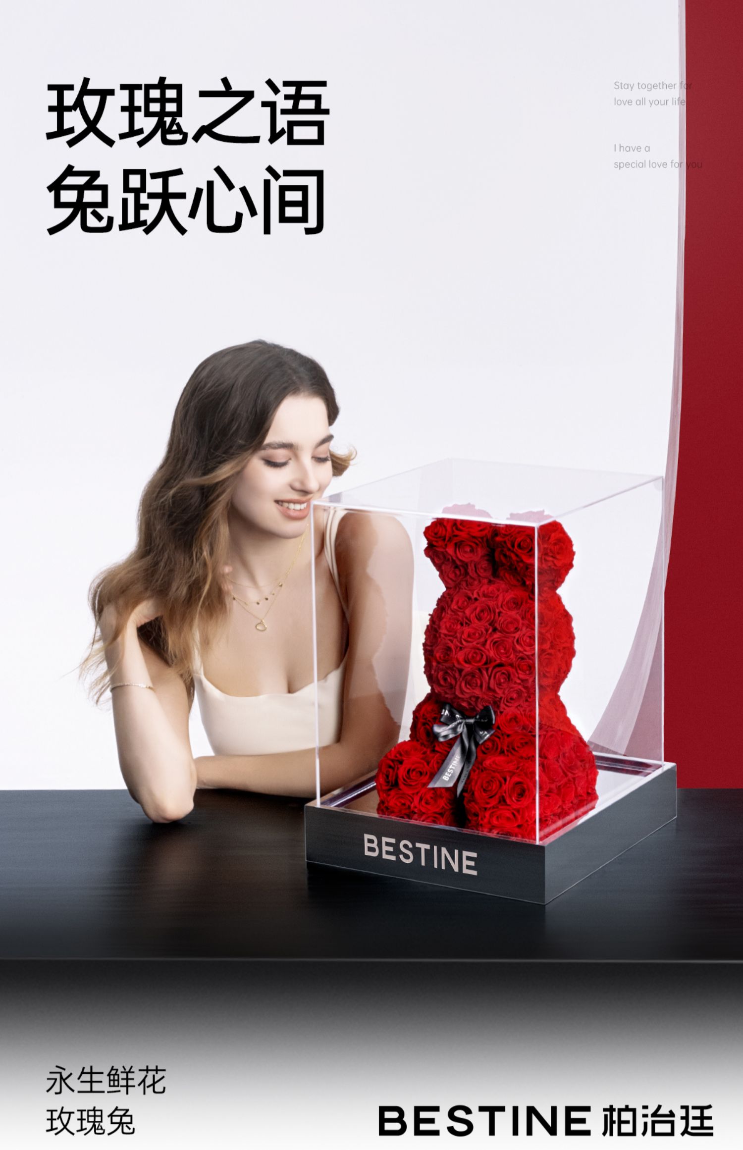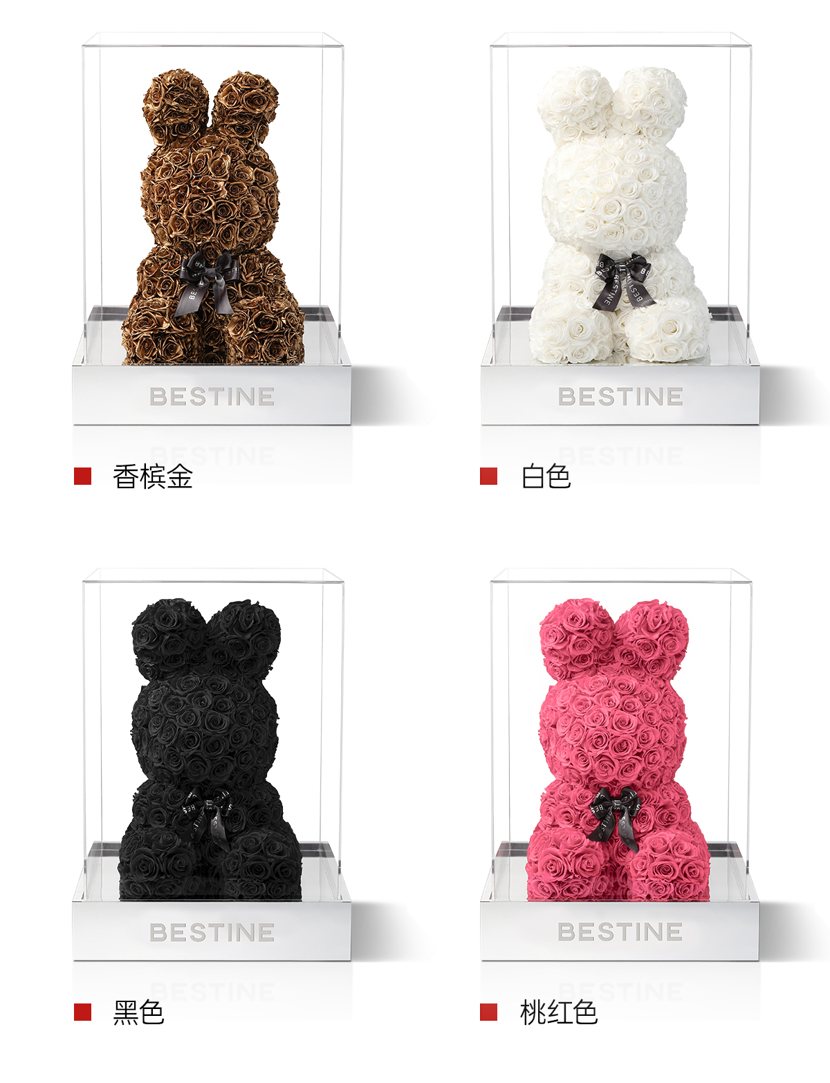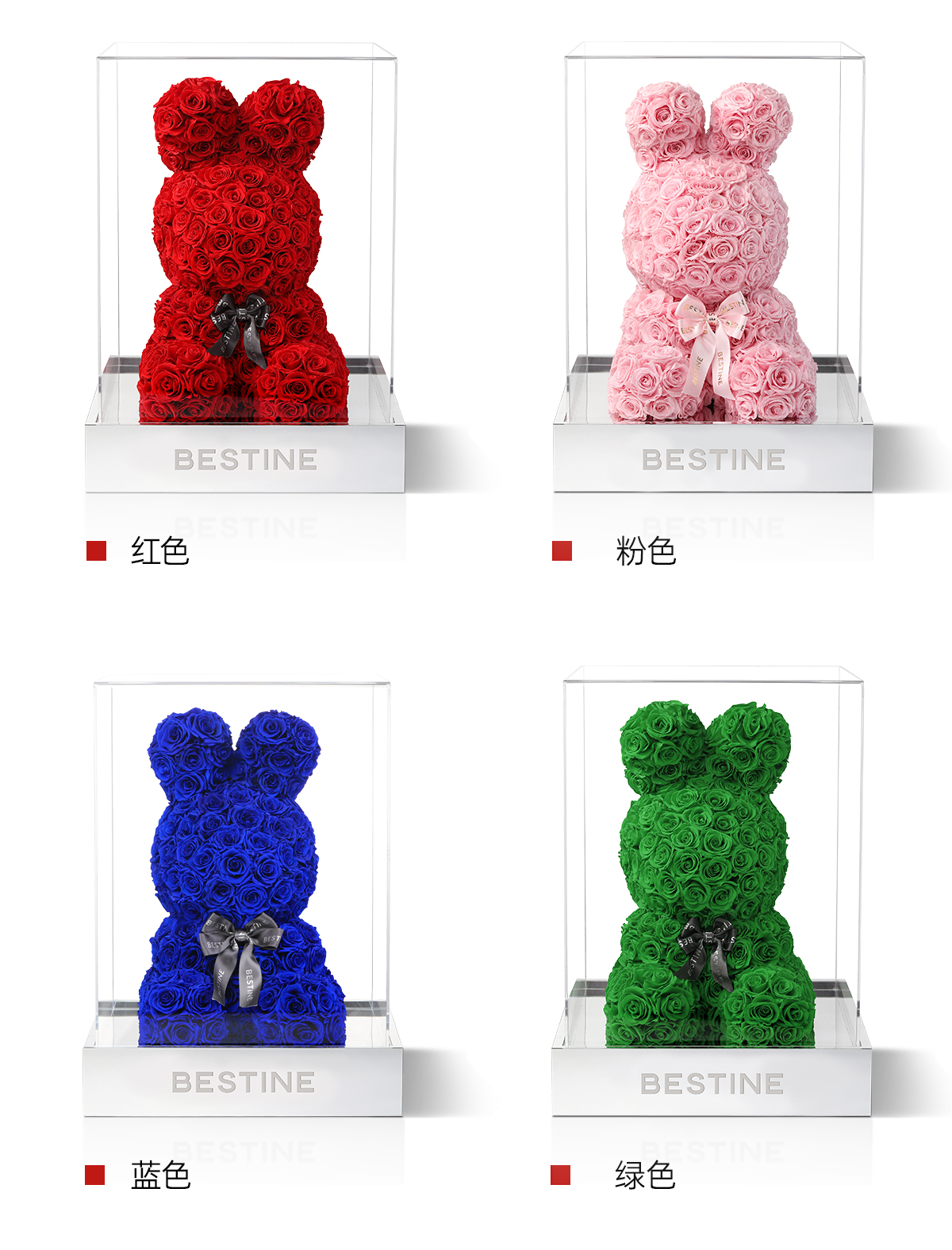 VBEINGS花语 红色玫瑰兔 永生花定制礼盒送女友表白生日礼物