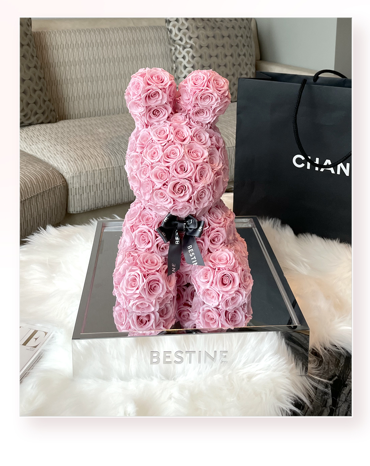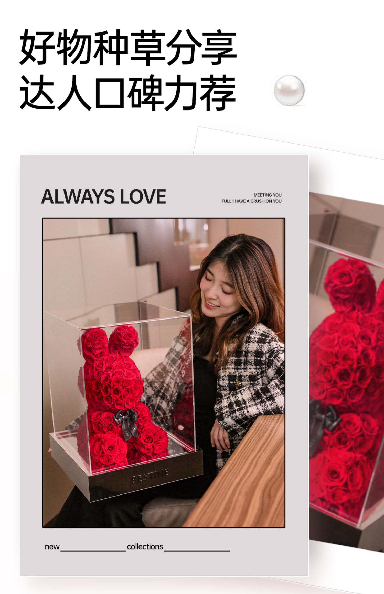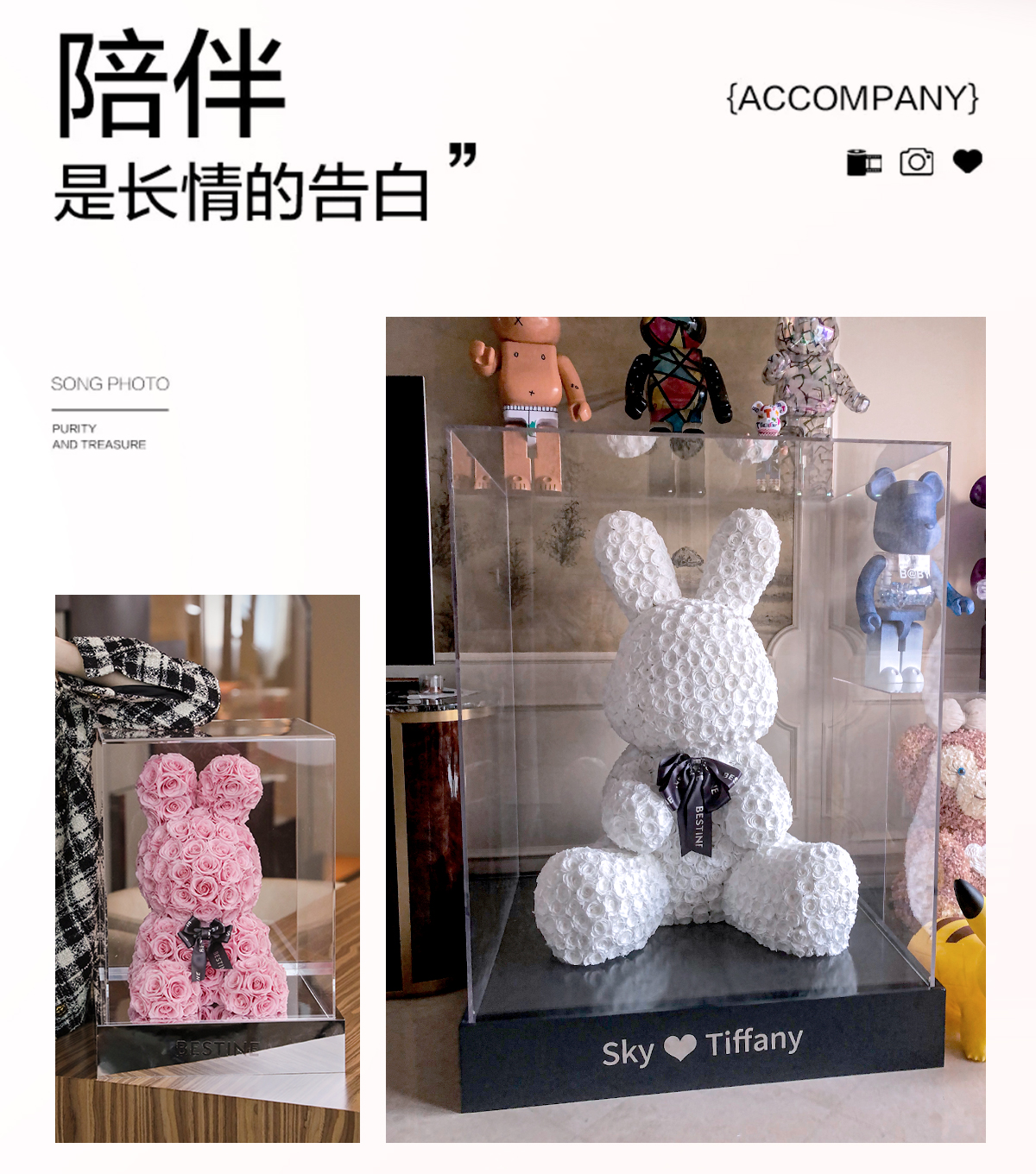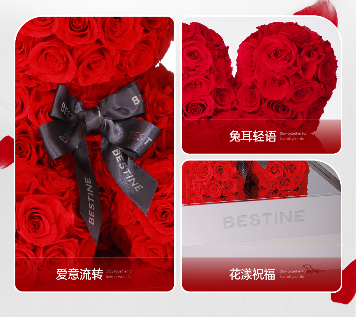 VBEINGS花语 红色玫瑰兔 永生花定制礼盒送女友表白生日礼物
