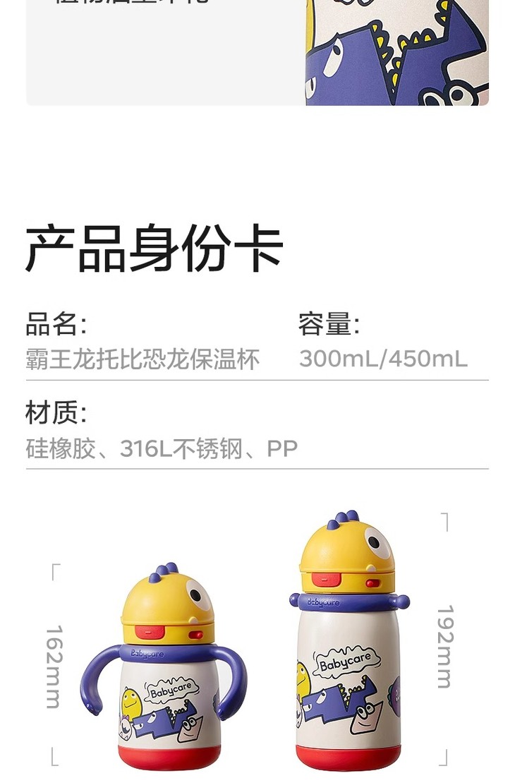 【幼儿园入园保温杯推荐】Babycare霸王龙托比保温杯300ml/450ml可选