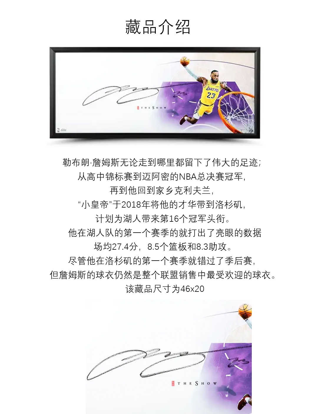 收藏系列 詹姆斯 “The Show” Lakers 限量亲笔签名画