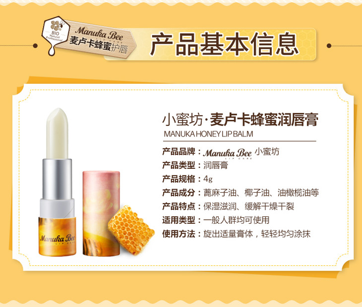 小蜜坊麦卢卡蜂蜜润唇膏