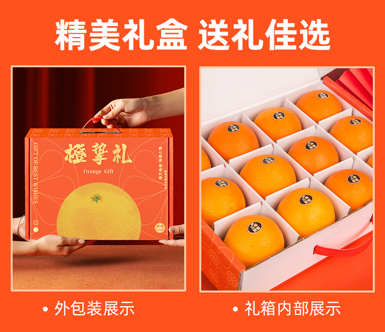 【规格】12枚橙挚礼彩箱(70-75mm)5斤左右(每箱都是独立的包装,如购买多件分多个包裹发出,可能会前后陆续到货)。