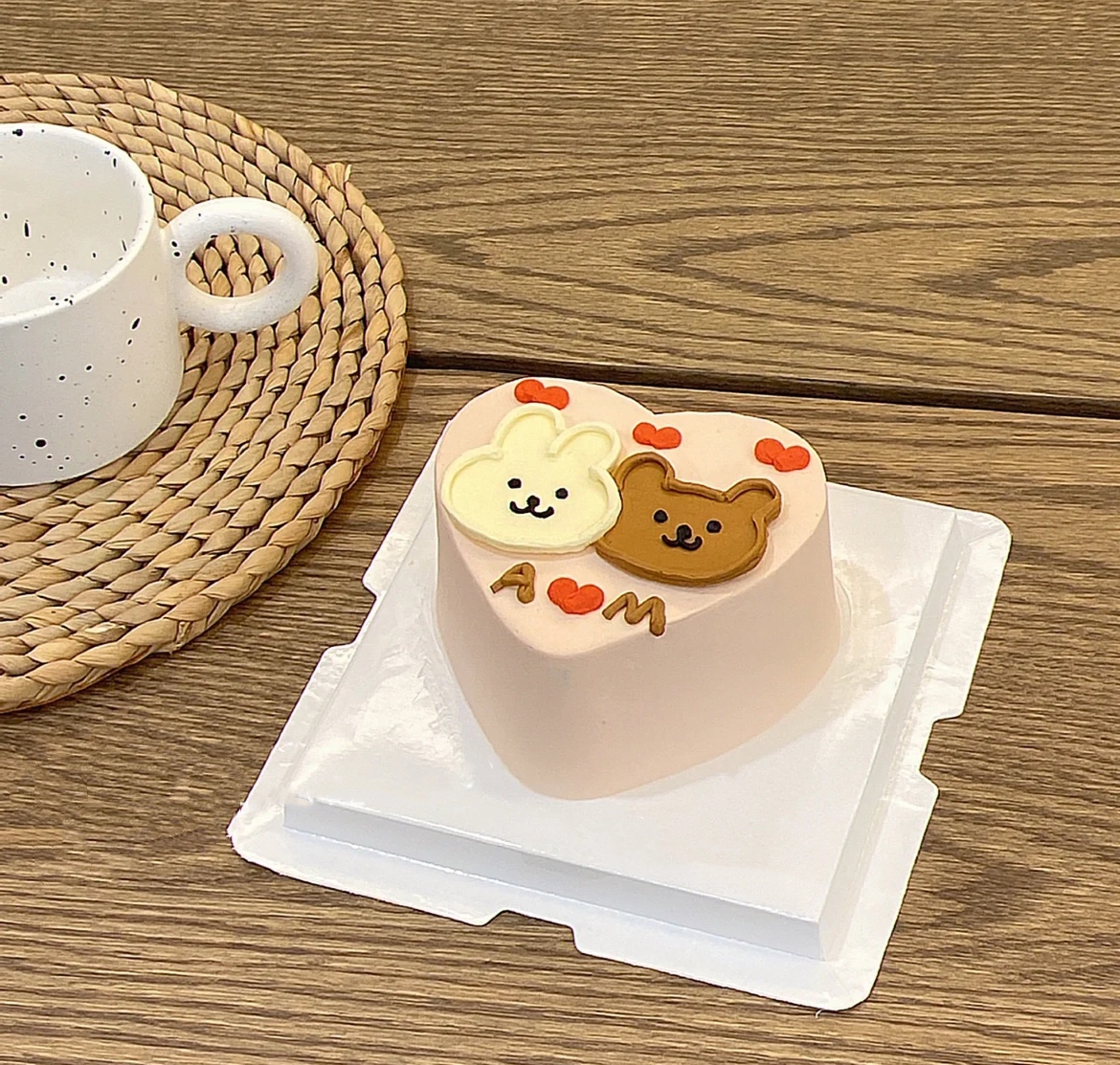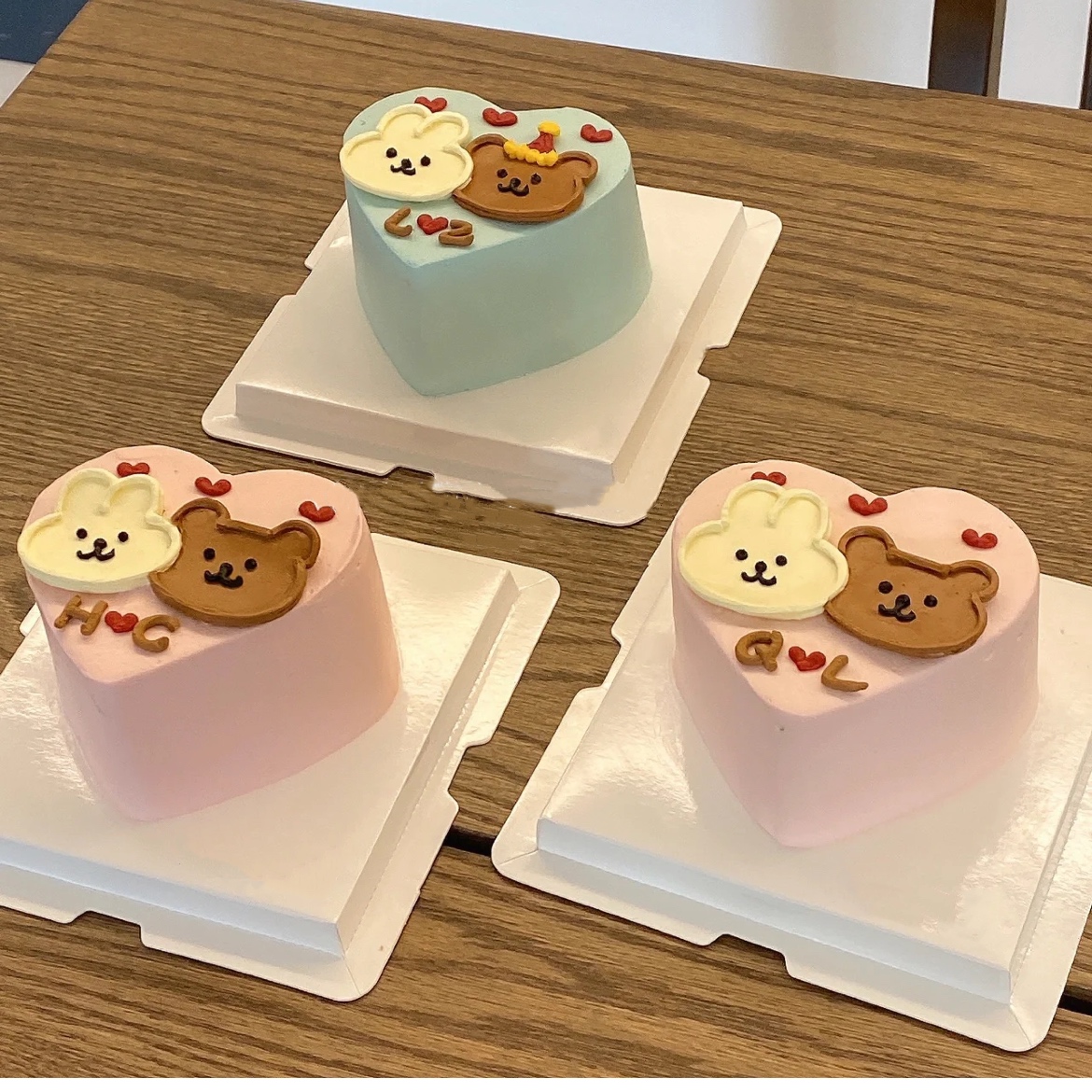 爱心形贴贴小熊小兔子情侣手绘蛋糕(两个颜色可选)-低糖处理无添加