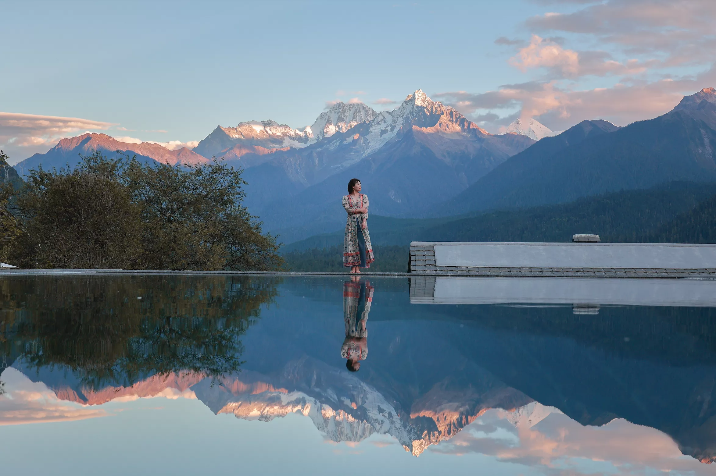【雪山日落晚餐】在南迦巴瓦,冬季的夜幕在6点多落下。抓住夕阳落下山肩的时光,在粉红色的余晖中,享用一餐雪山绝景中的美味。冬日的瑰色浪漫,定格在这一刻。