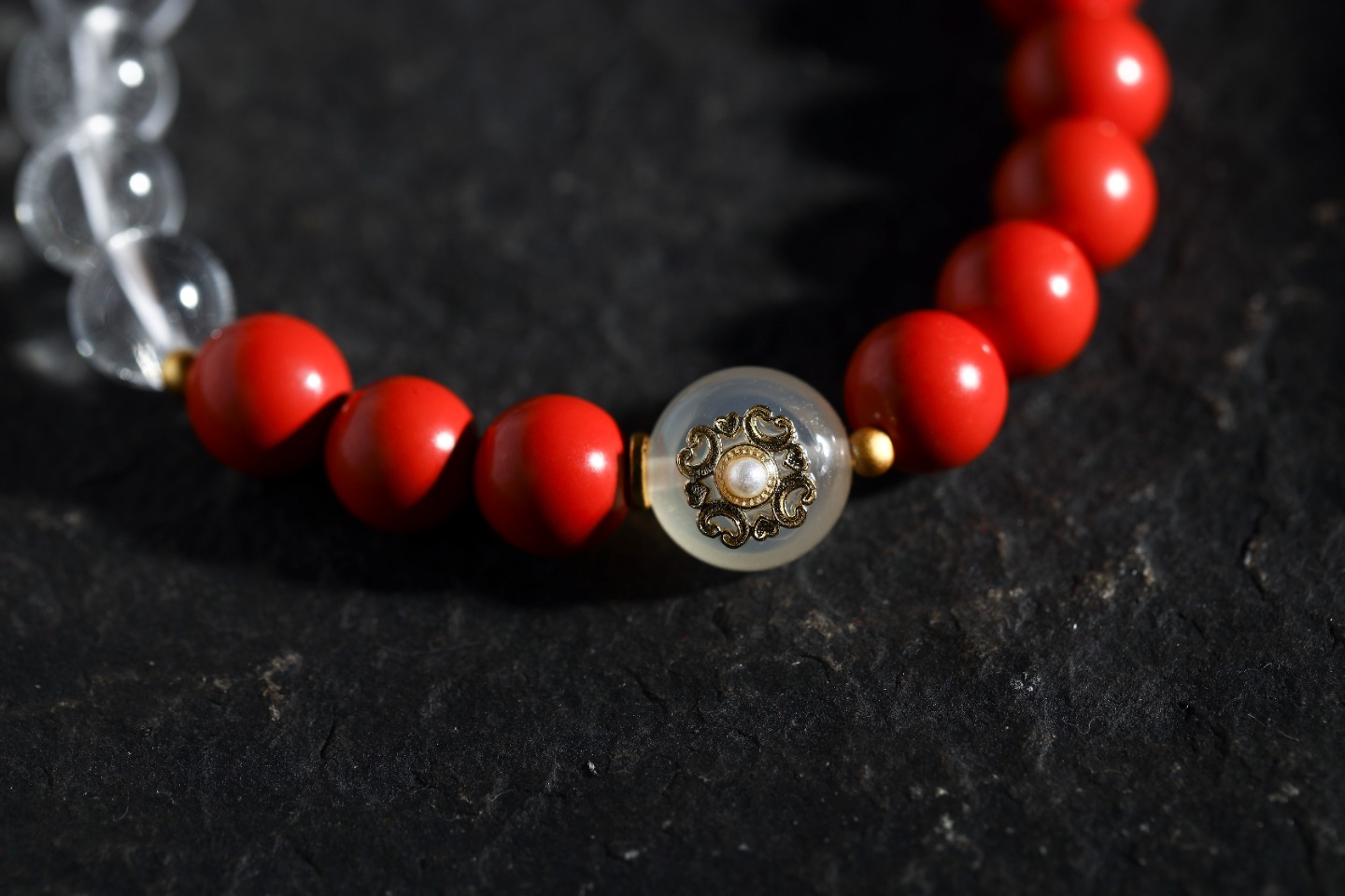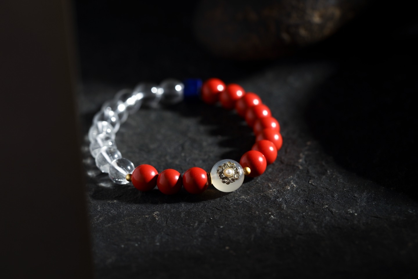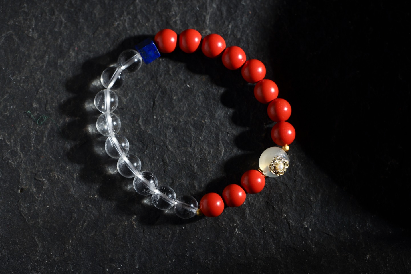 白水晶,古法金色铜珠,青金石方块,薄片,白玛瑙珍珠平安扣路路通