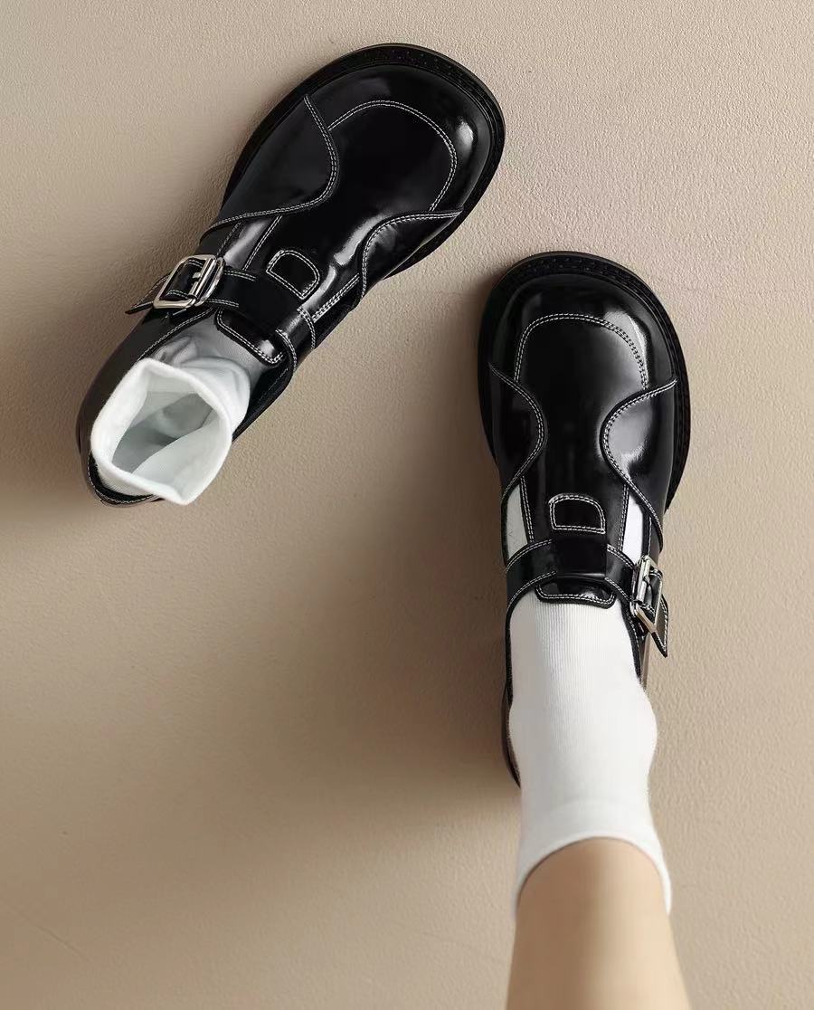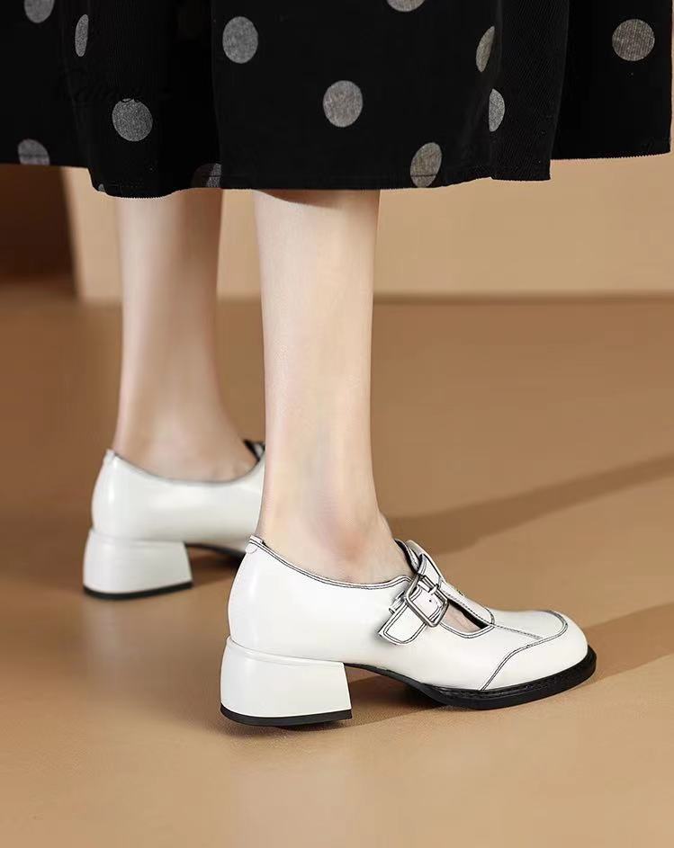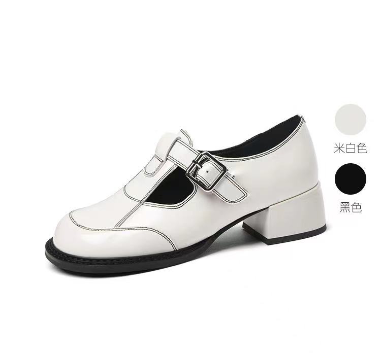 Wonders法式粗跟玛丽珍2023春季新款甜酷扣带单鞋英伦中跟女鞋