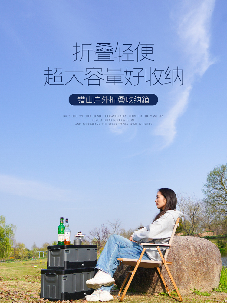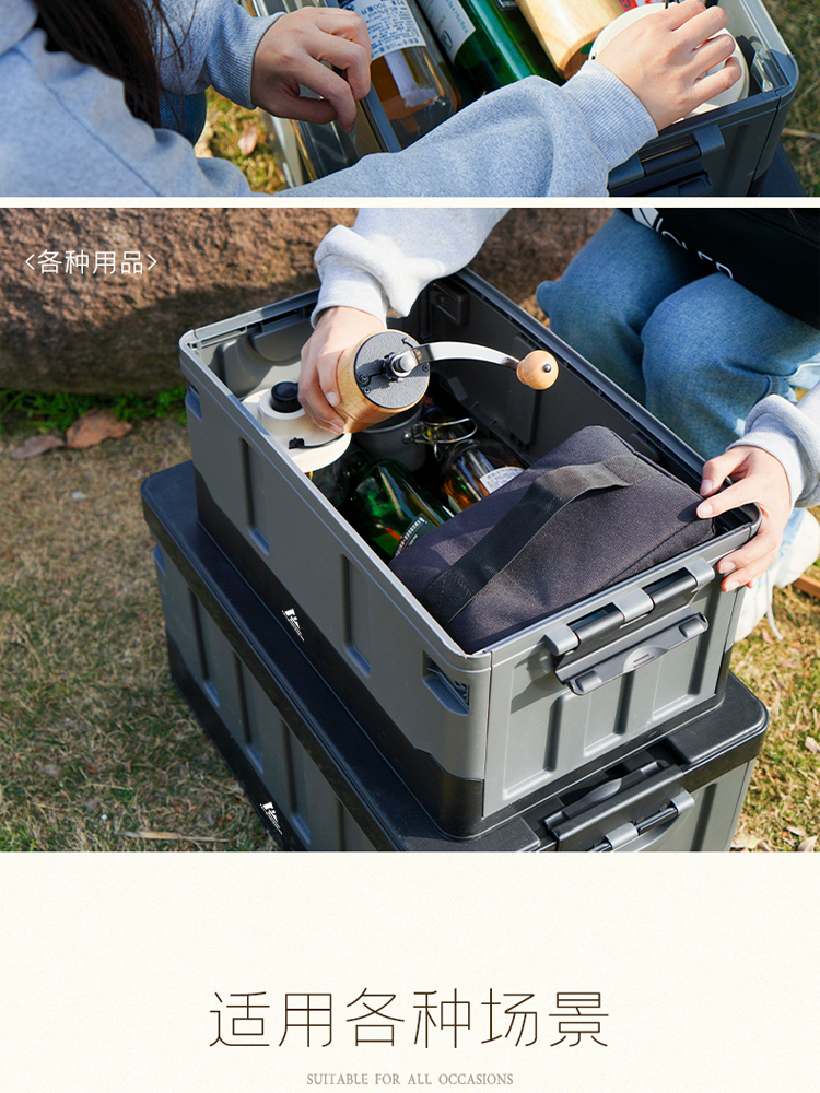 错山户外露营便携收纳箱野营折叠箱车载后备整理箱储物箱 (F-09大号)