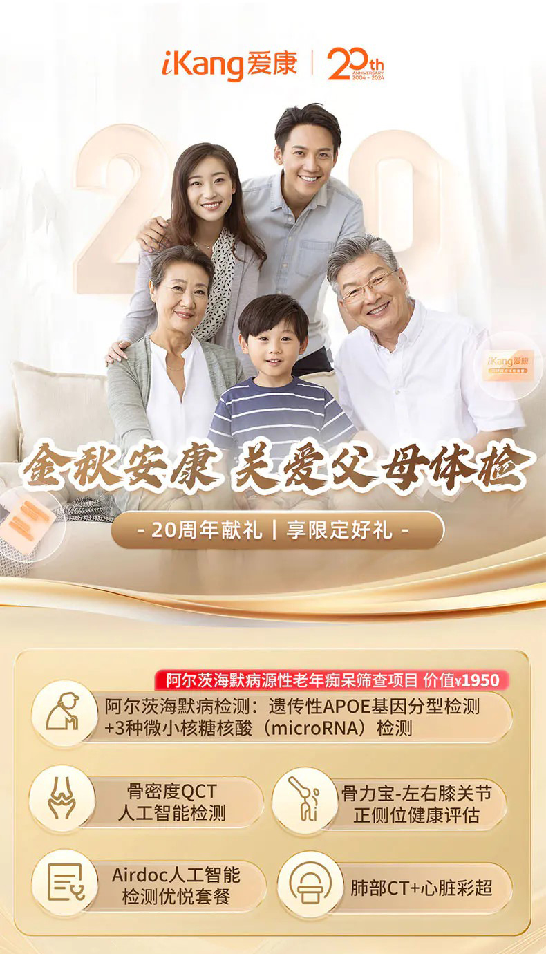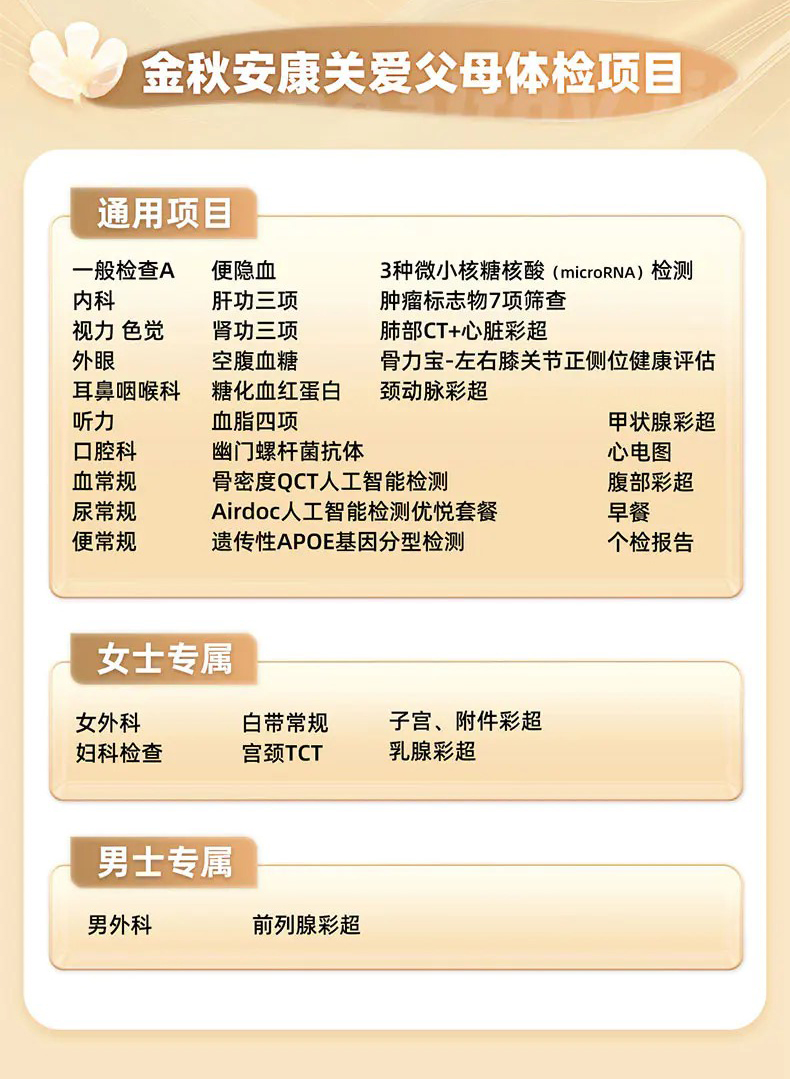 金秋安康关爱父母体检套餐(男女通用)适用爱康国宾/国宾VIP/卓悦