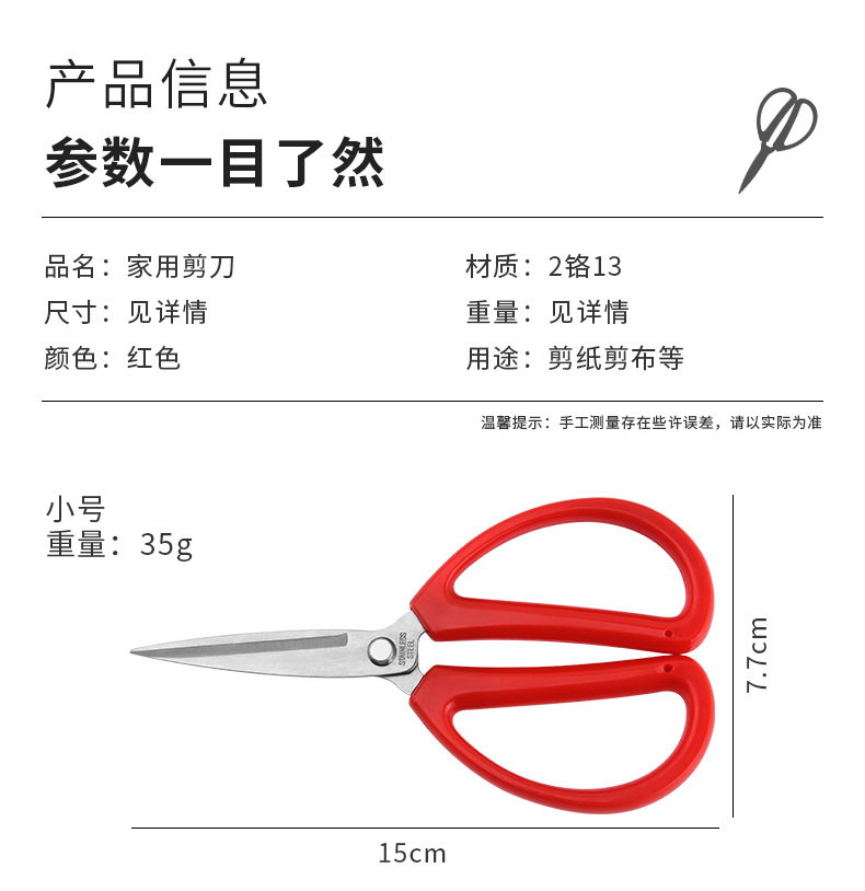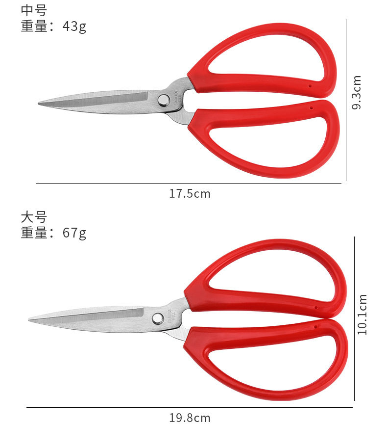 剪刀做工精致,刀身经久耐用防滑省力,采用优质不锈钢材质,用后洗一洗就干净