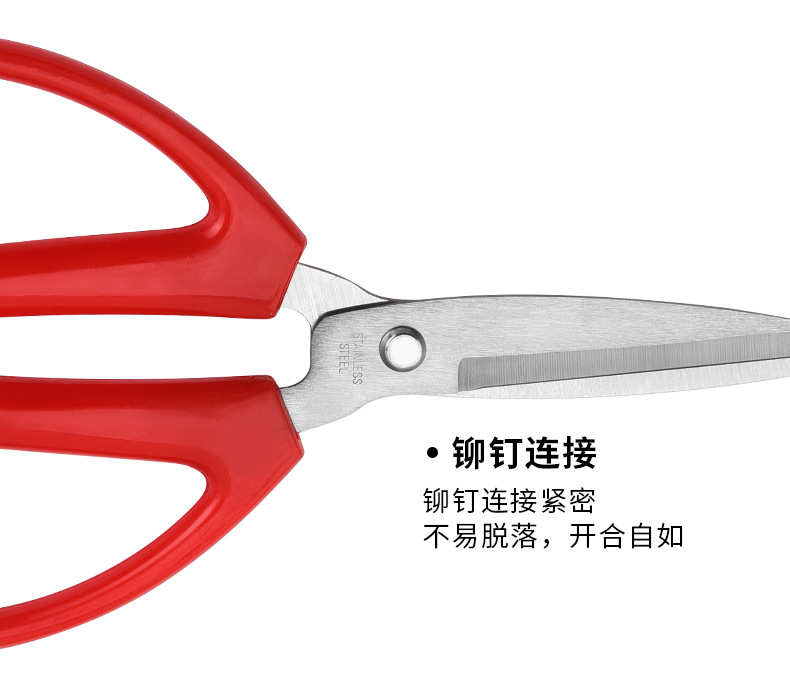 加强型铆钉螺丝,牢固衔接,开合轻松,家用扳手即可轻松调节牢固度。大铆钉使剪刃离开桌面无接触,长久保护剪刃不受磨损,同时增加了高度,方便拿放。