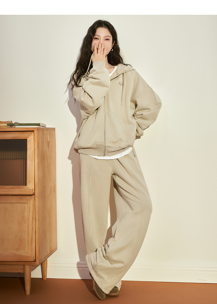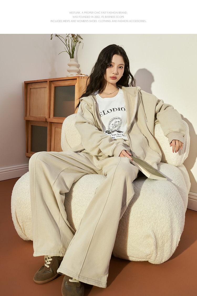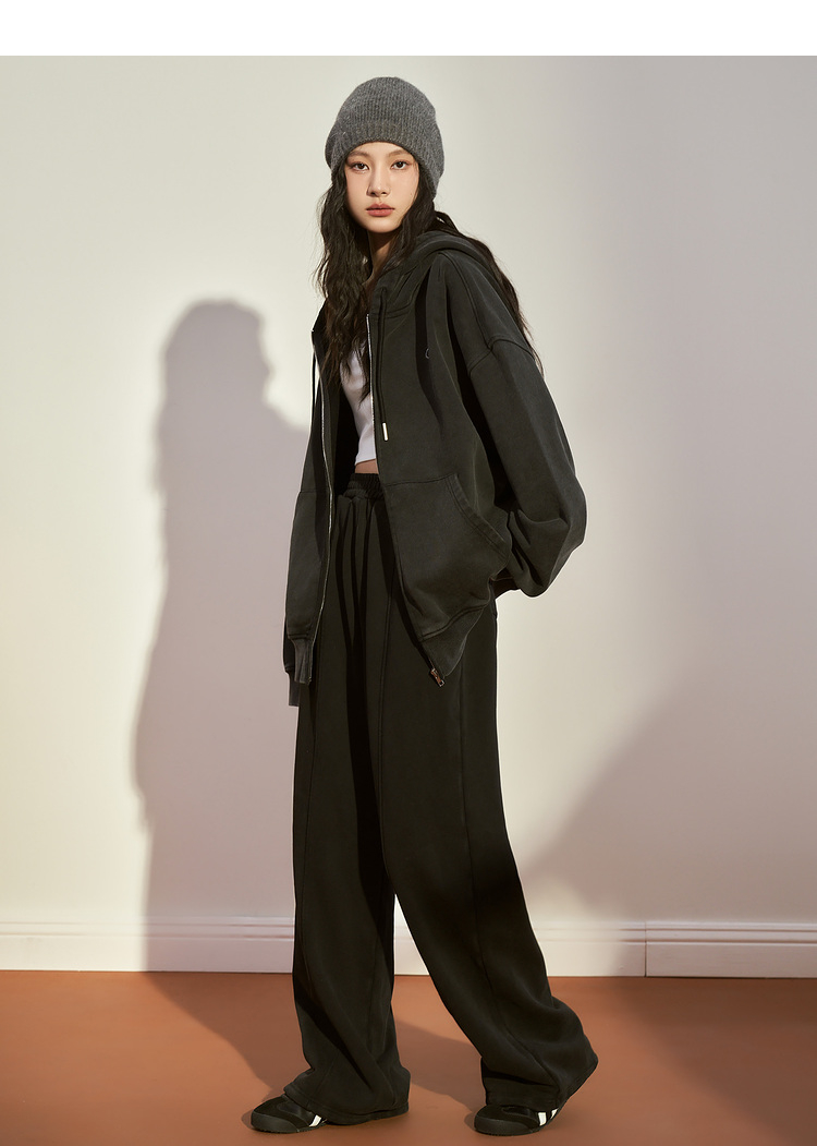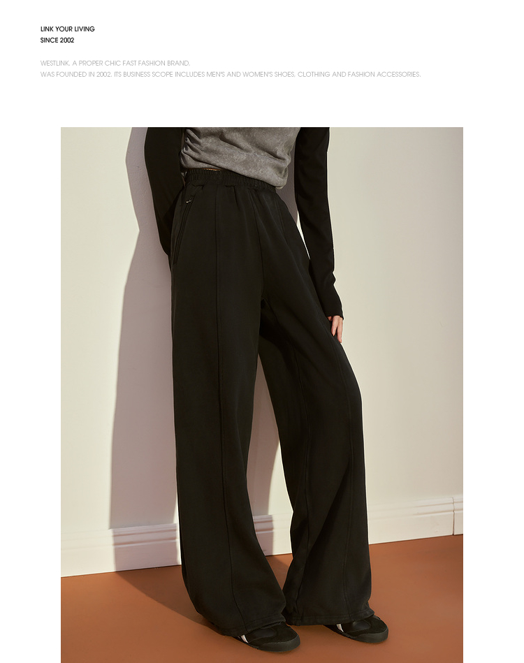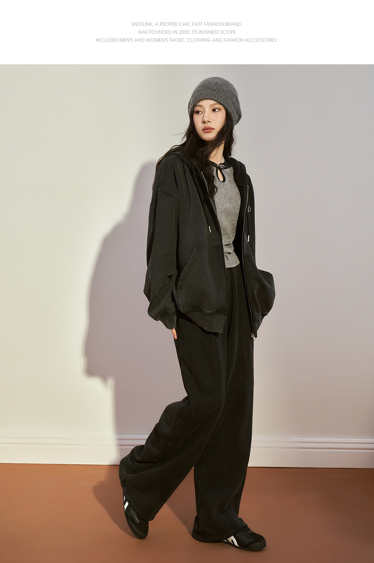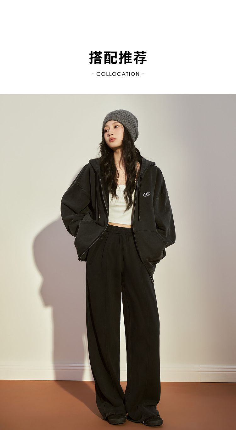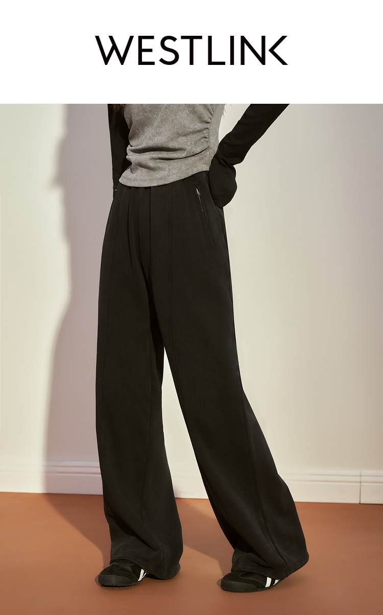 西遇宽松阔腿卫裤女冬季新款慵懒风垂坠感休闲拖地长裤12238544