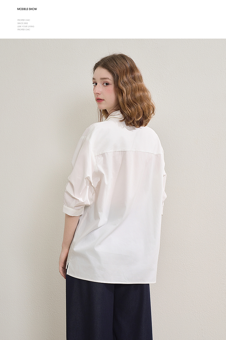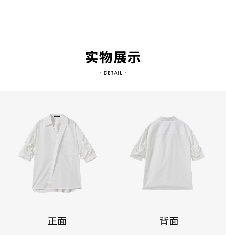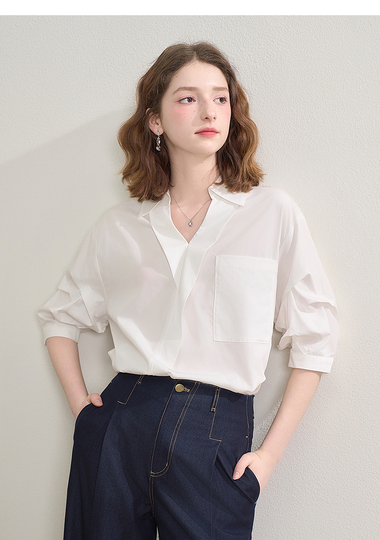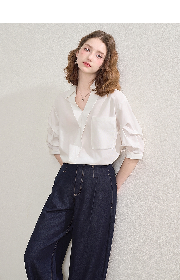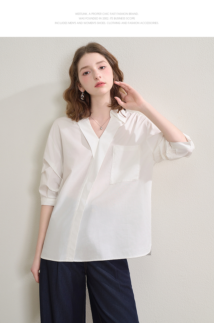 气质V领通勤白衬衫女夏季斜门襟设计感百搭显瘦短袖衬衣V0850322