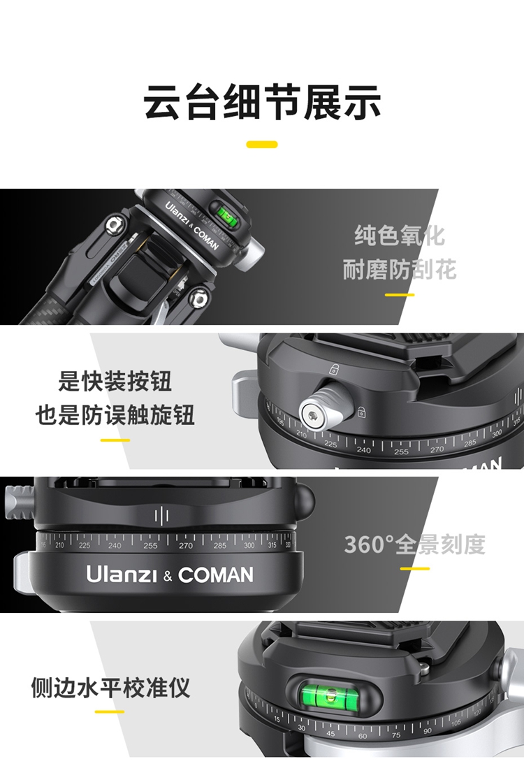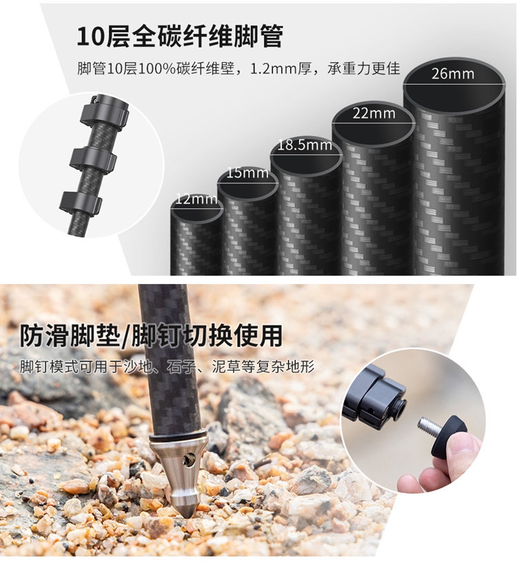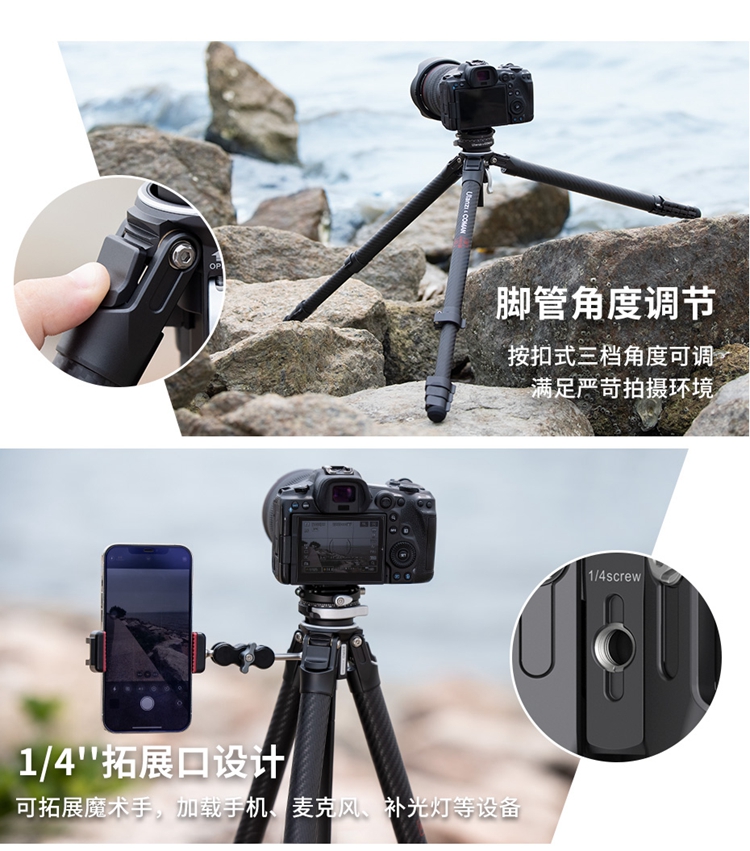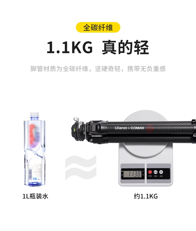 Ulanzi优篮子&科漫联名|零感系列随行碳纤维三脚架全碳材质旅行三脚架XY羽量级便携高端三脚架