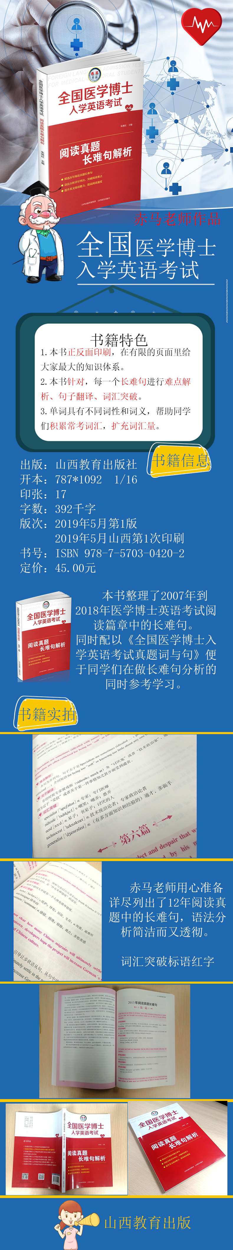 正版 包邮 全国医学博士入学英语考试阅读真题长难句解析 医学 英语 博士生 入学考试