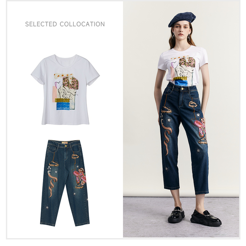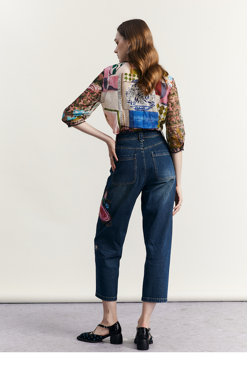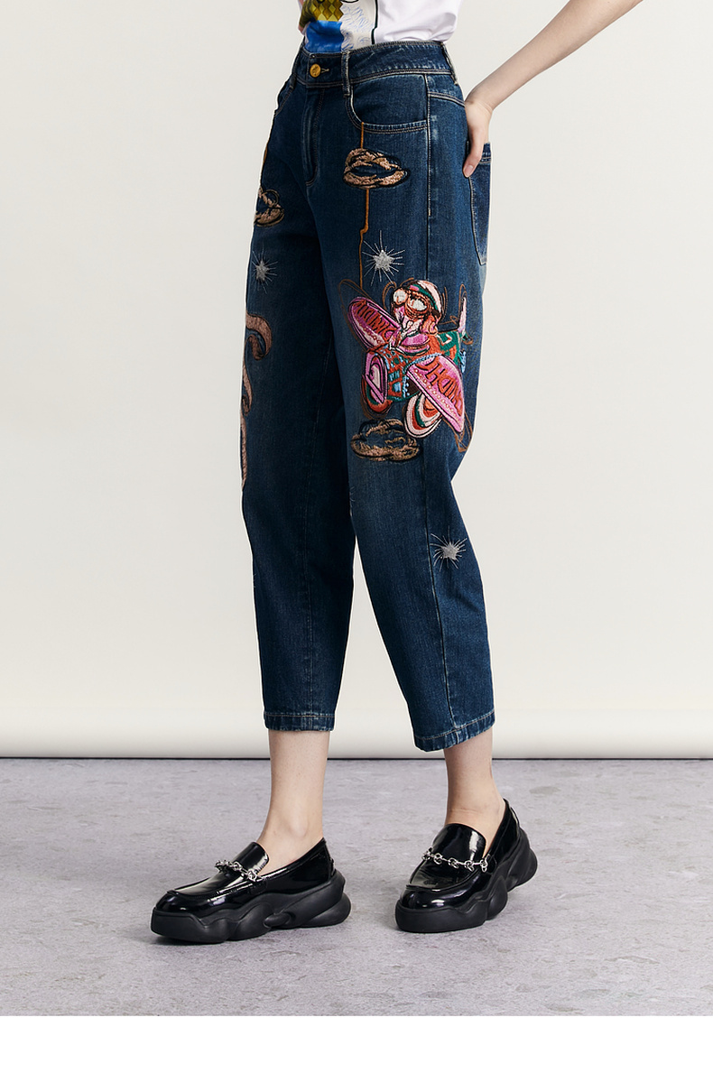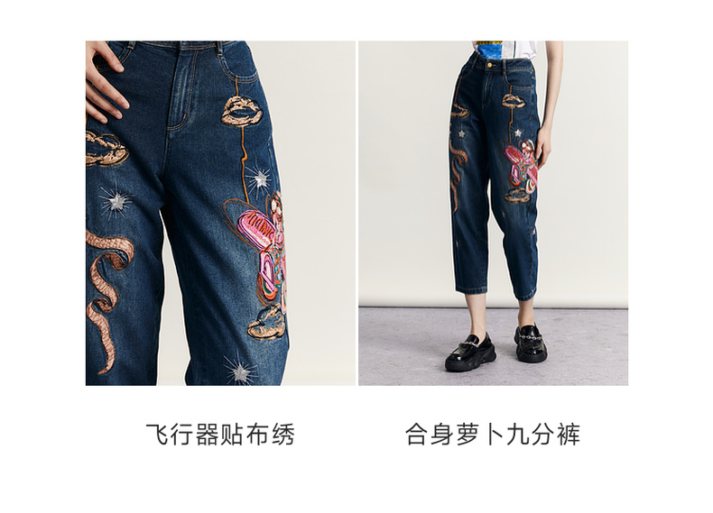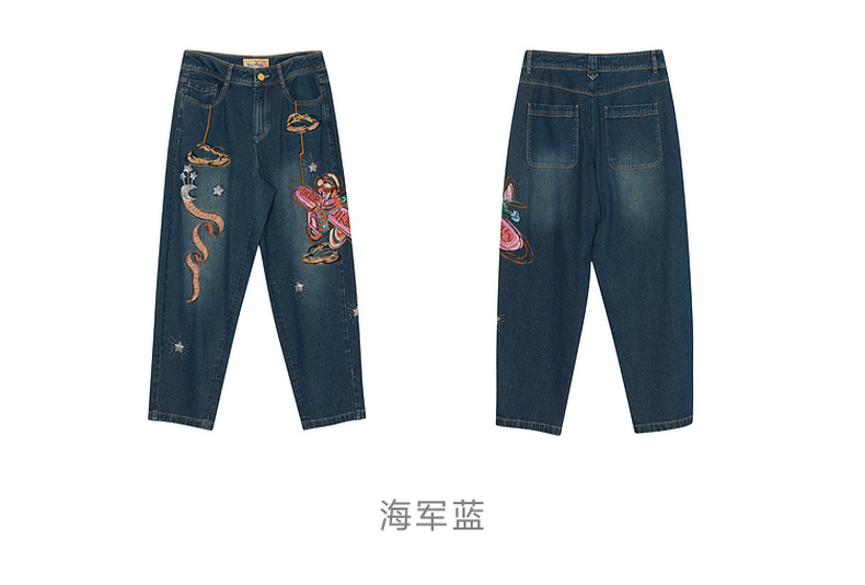 谜底复古绣花牛仔裤女2023秋季新款原创重工刺绣萝卜裤233MK0965