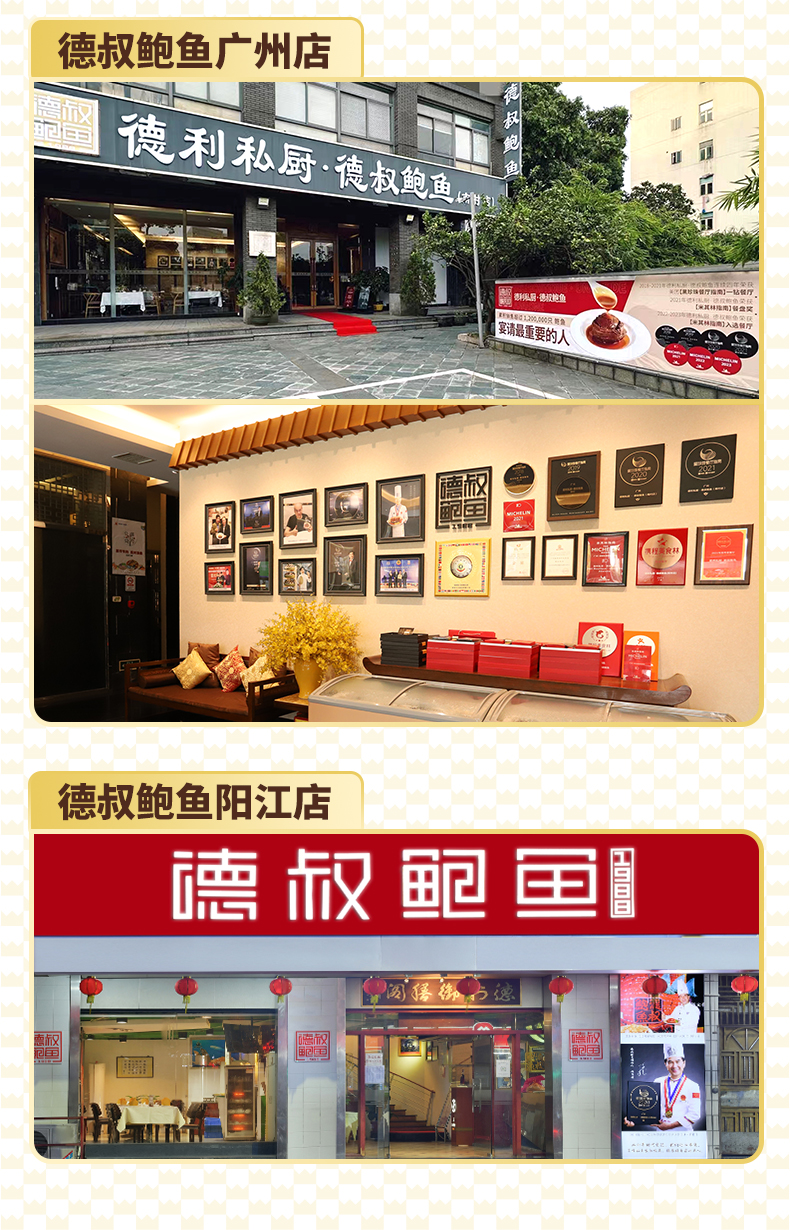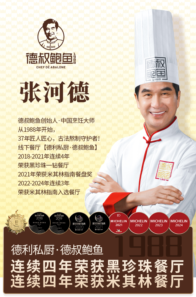 - 德叔鲍鱼官方商城,客服热线:4006111977 德叔鲍鱼创始于1988年,专注鲍鱼研究34年。线下粤菜餐厅,主打溏心干鲍,荣获米其林和黑珍珠等称号。线上全平台推广,本商城提供微信端的便捷购买。