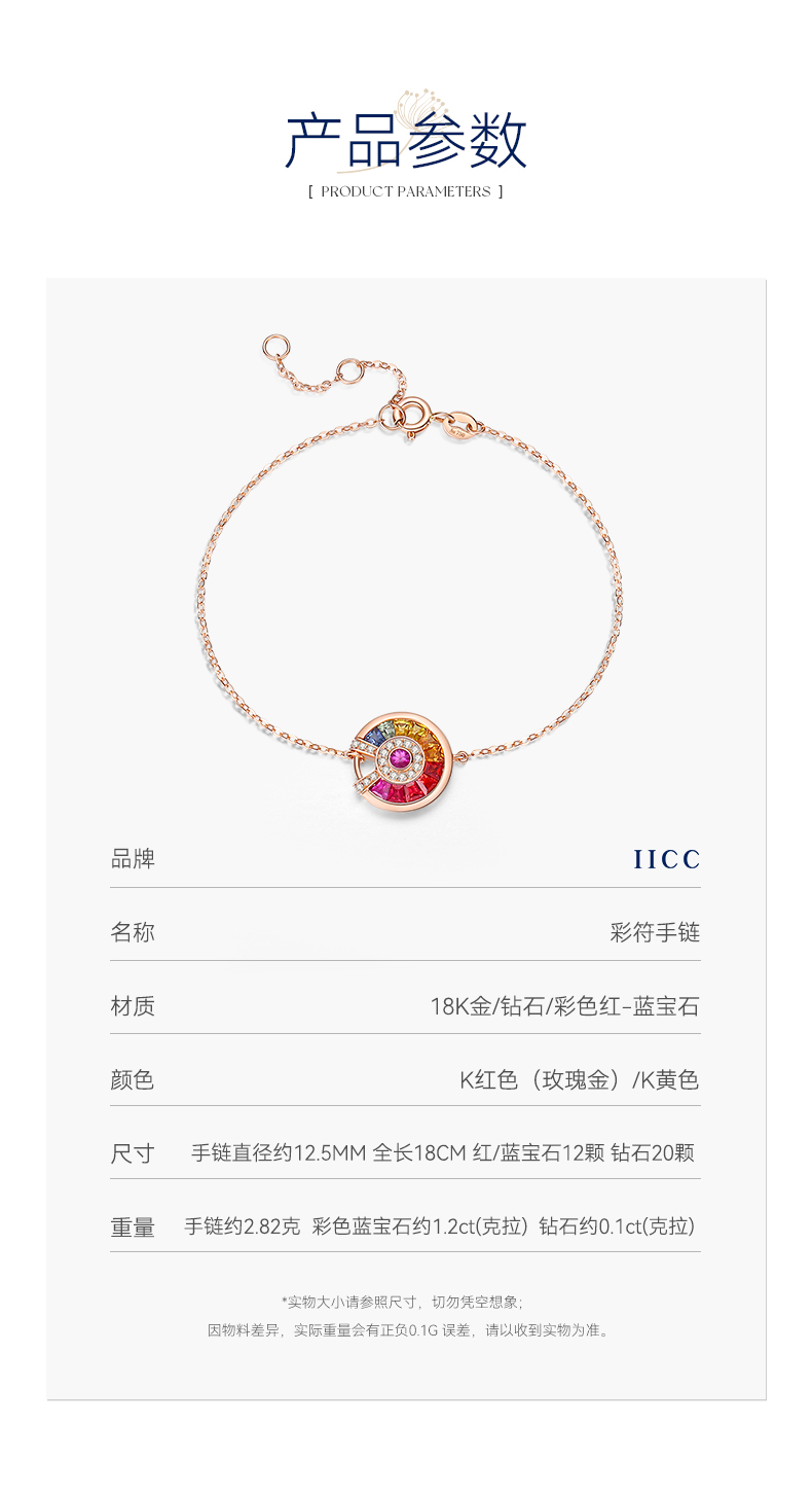 Fanci范琦×IICC珠宝 彩虹系列【彩符宝石手链】18K玫瑰金钻石首饰手链奢品女 下单即赠(IICC珠宝专属礼盒)+顺丰空运+运费险
