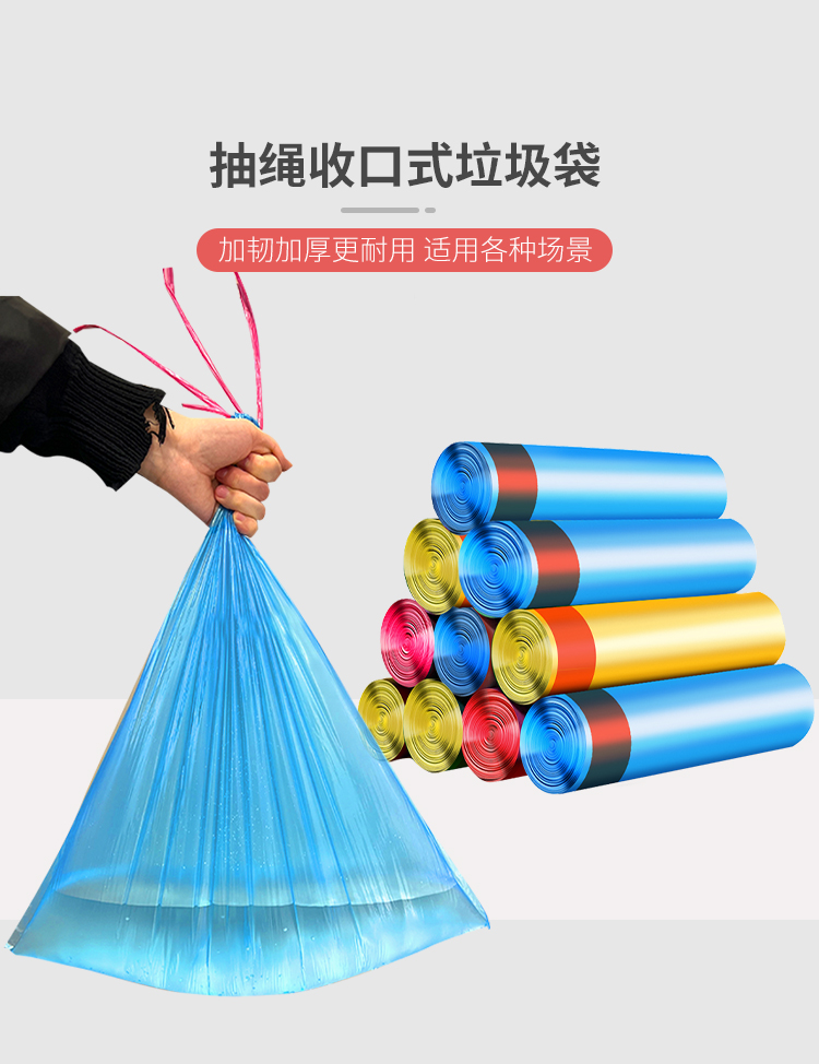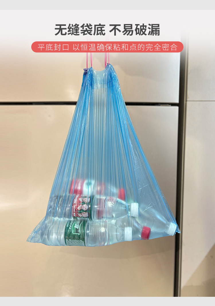 韵舒雅家用加厚抽绳垃圾袋75只 无缝袋底 高韧耐扯