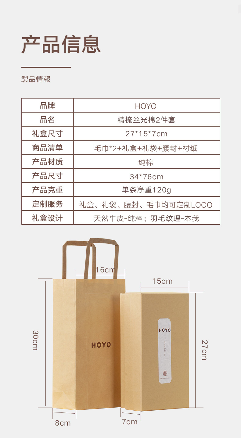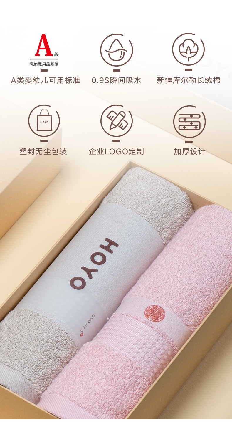 HOYO厚祐 精梳丝光棉毛巾两件套