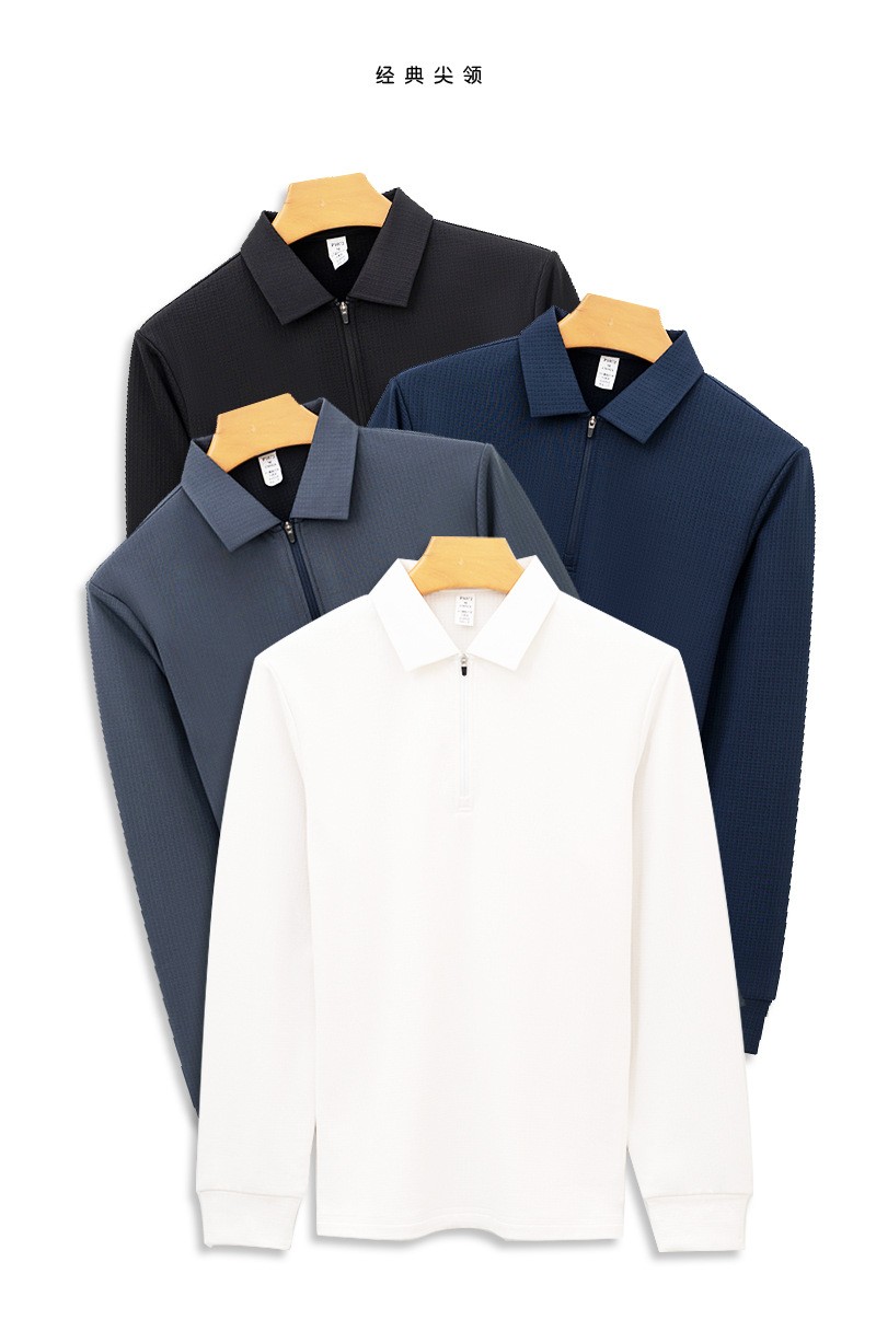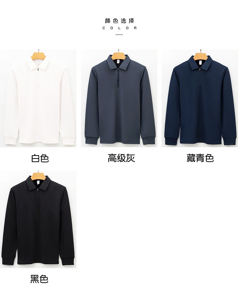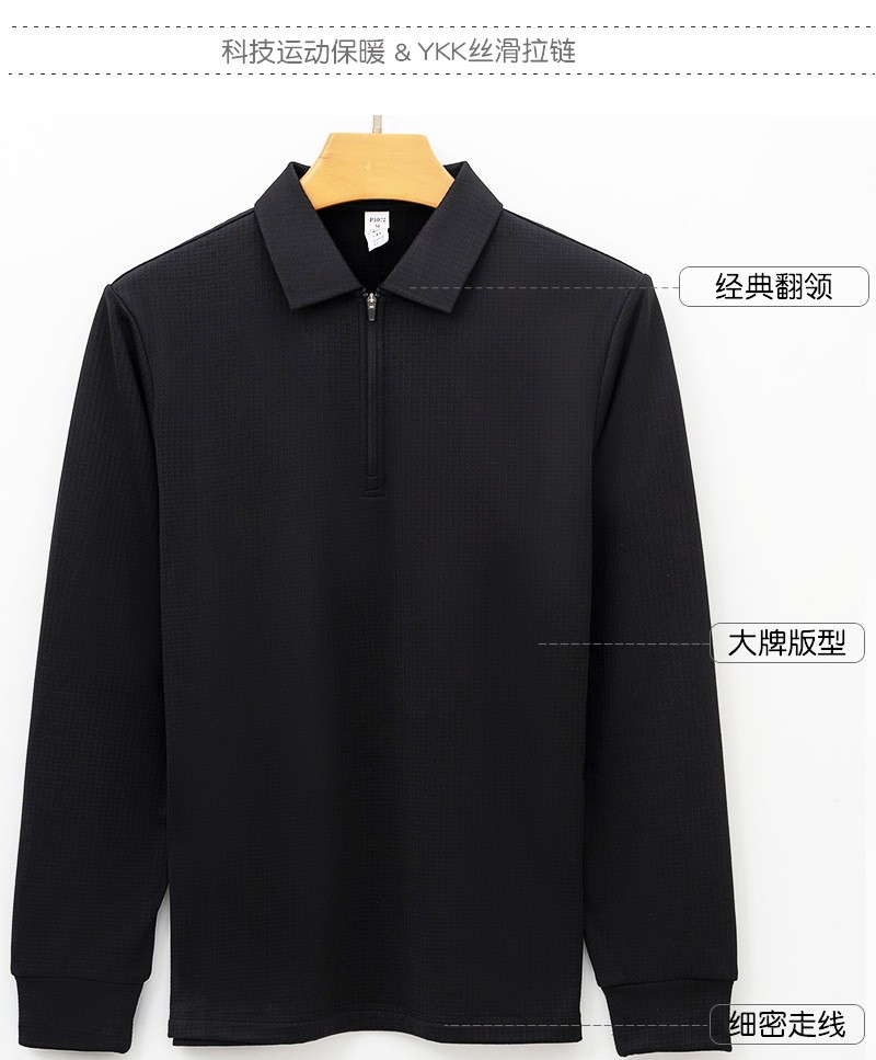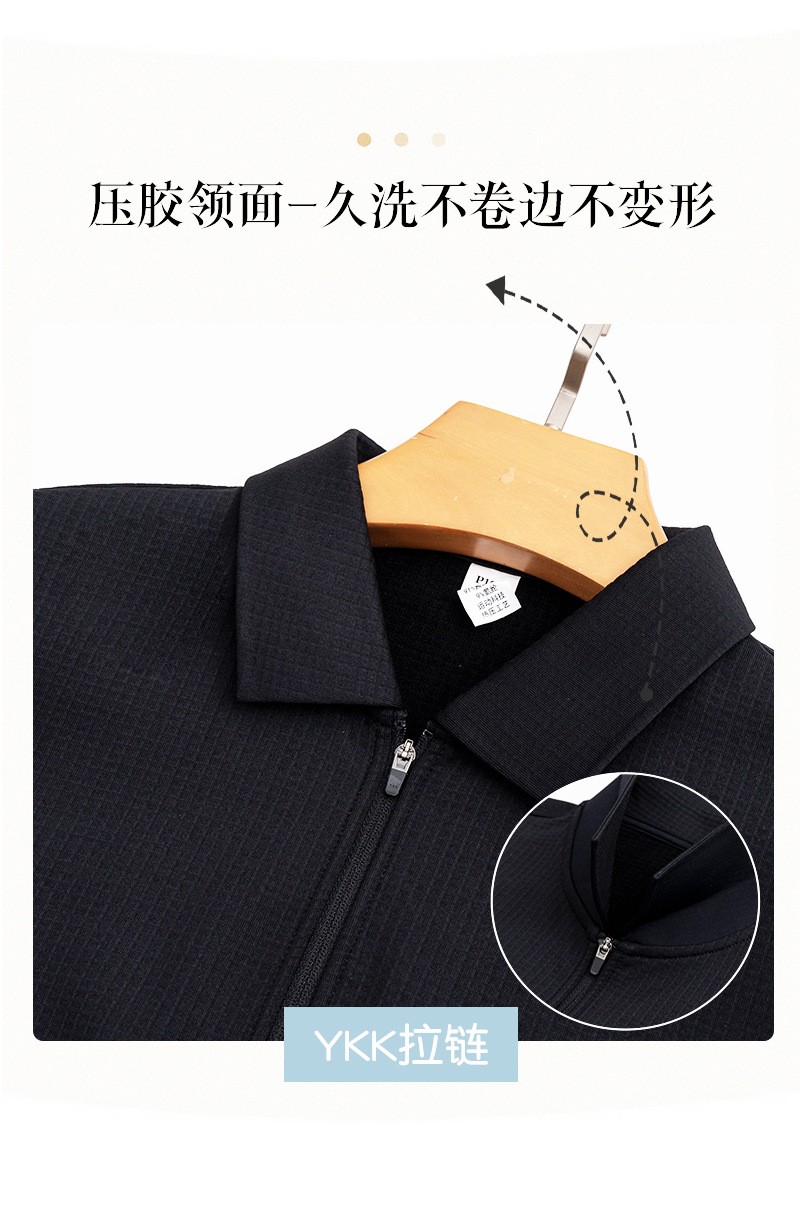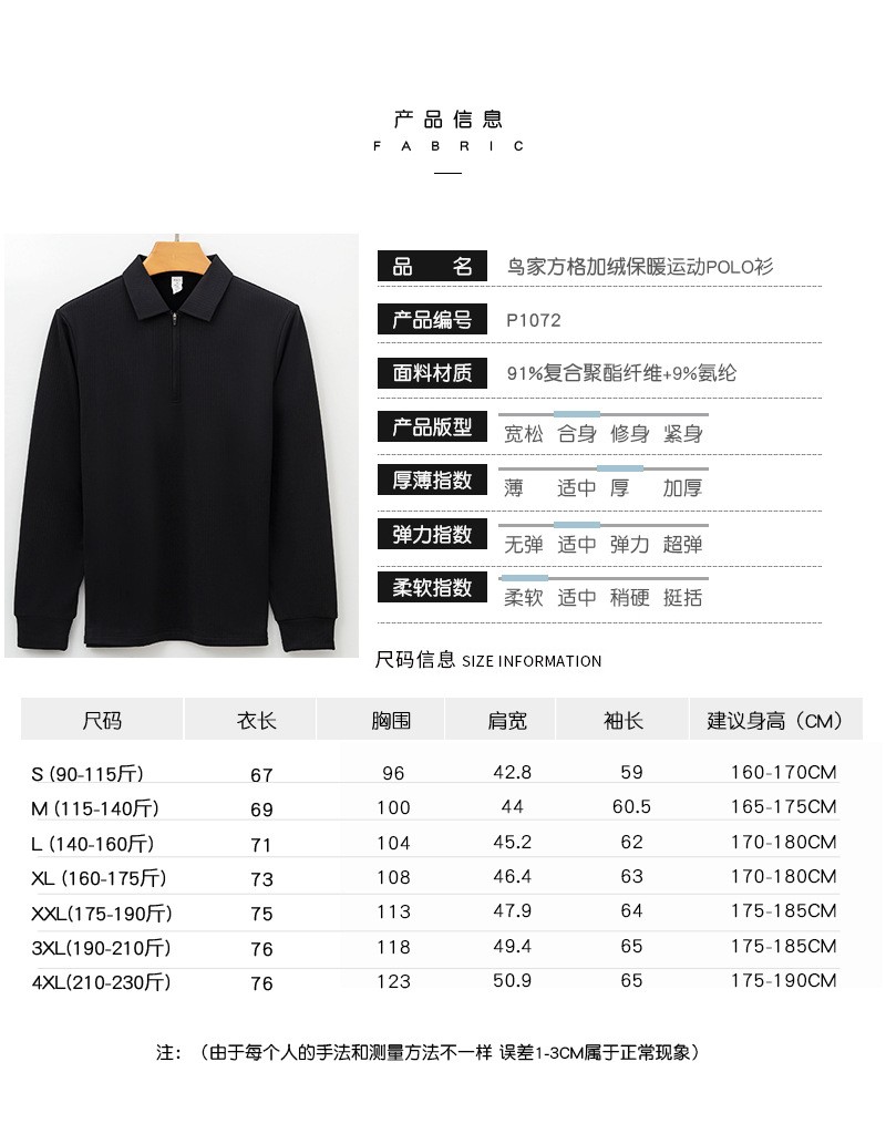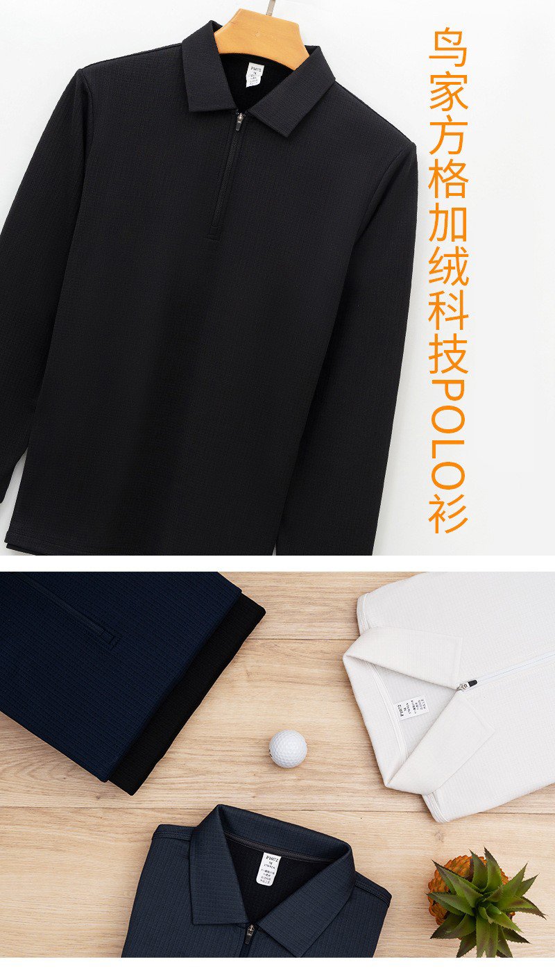 岸纾 鸟家方格拉绒半拉链长袖POLO衫280克(4色可选)P1072