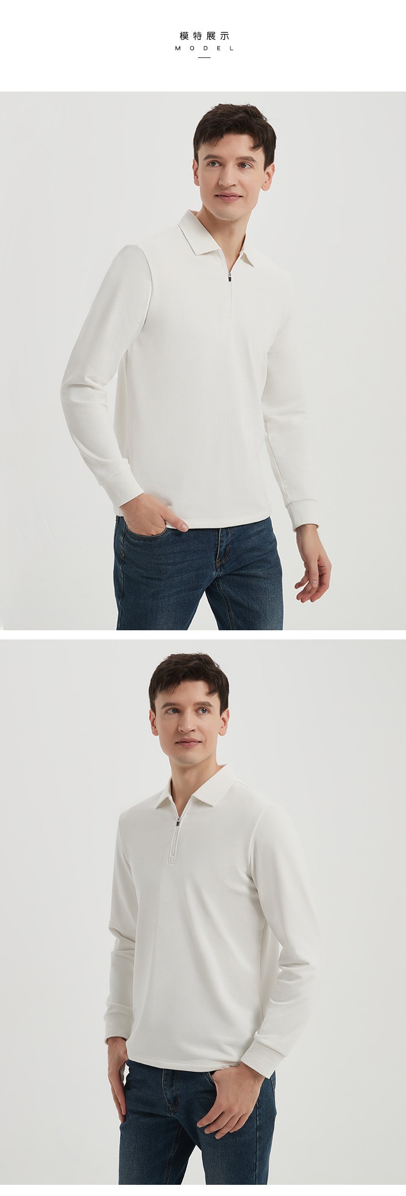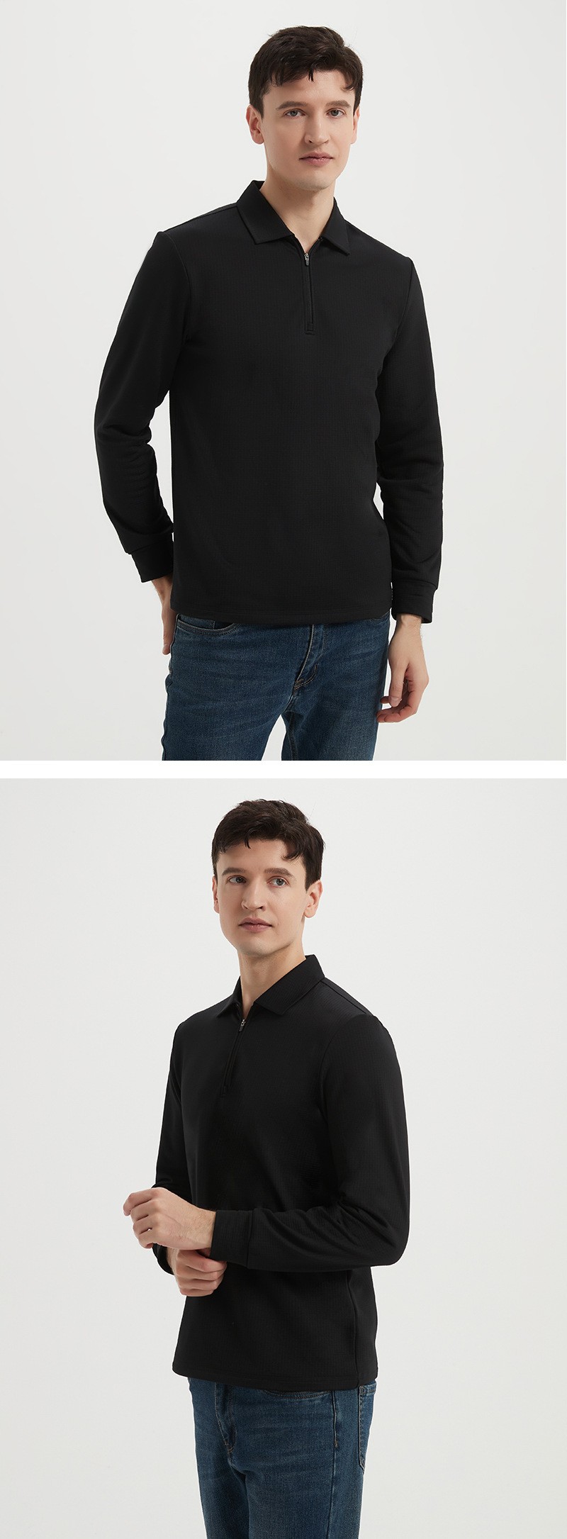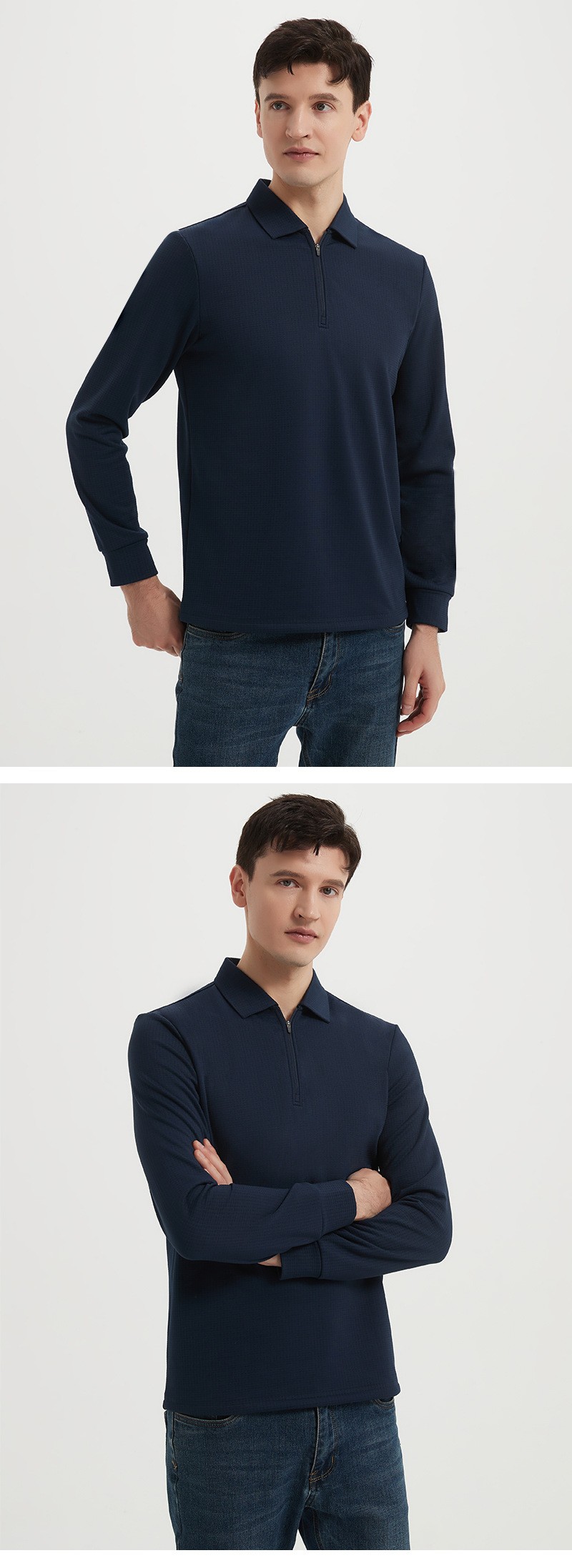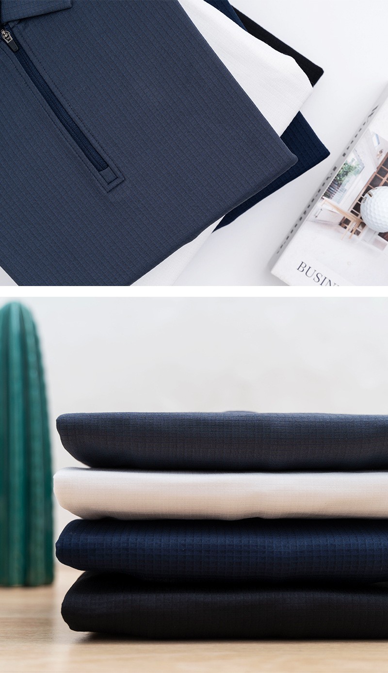 岸纾 鸟家方格拉绒半拉链长袖POLO衫280克(4色可选)P1072