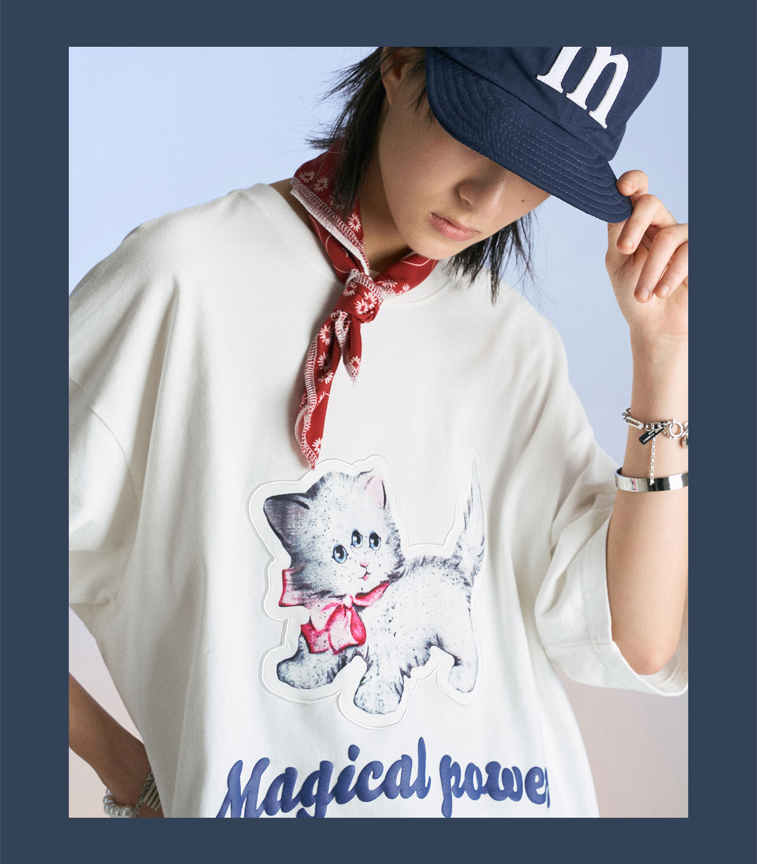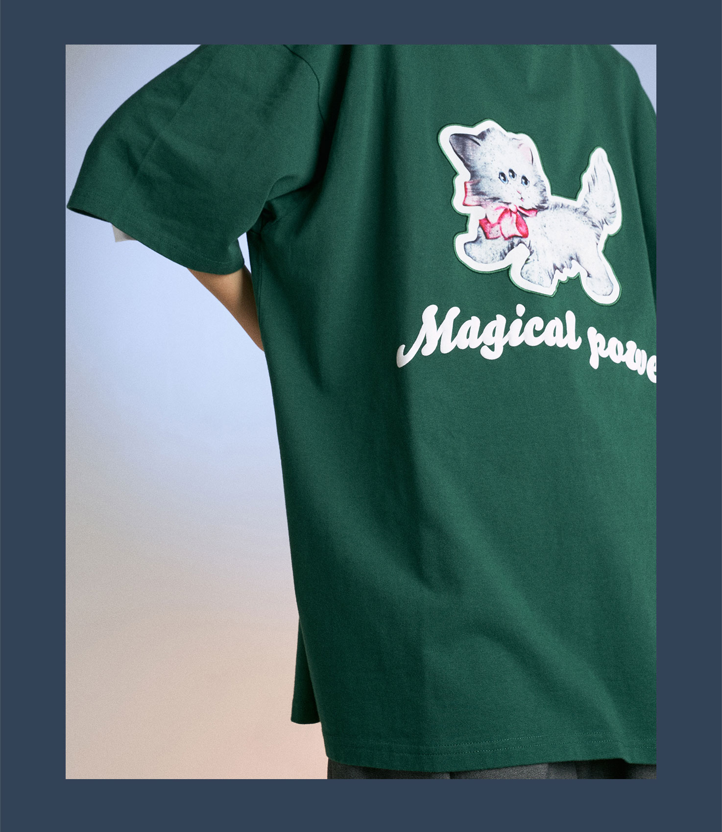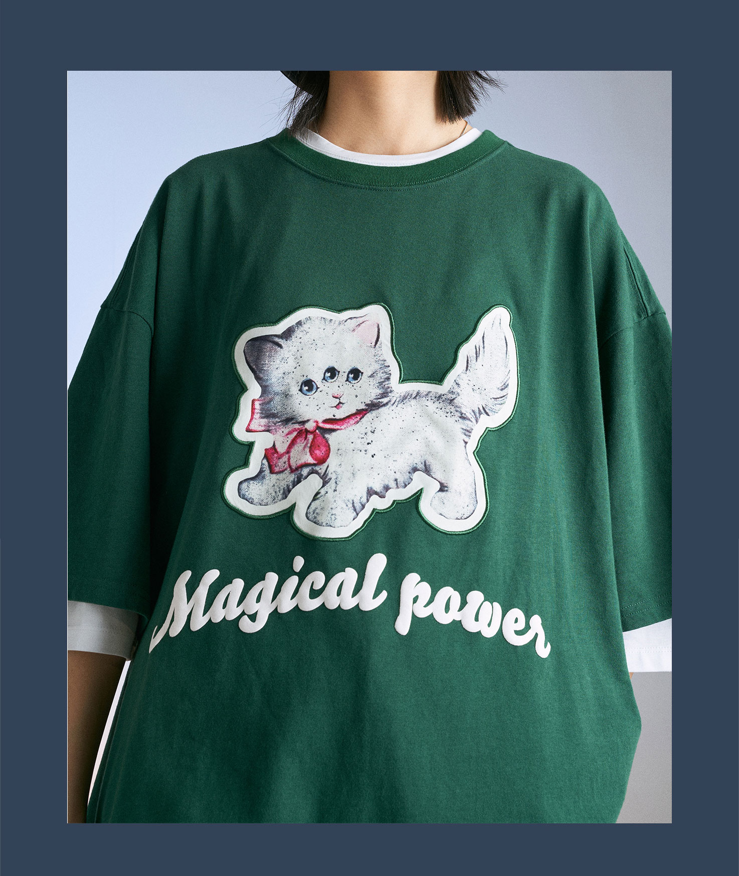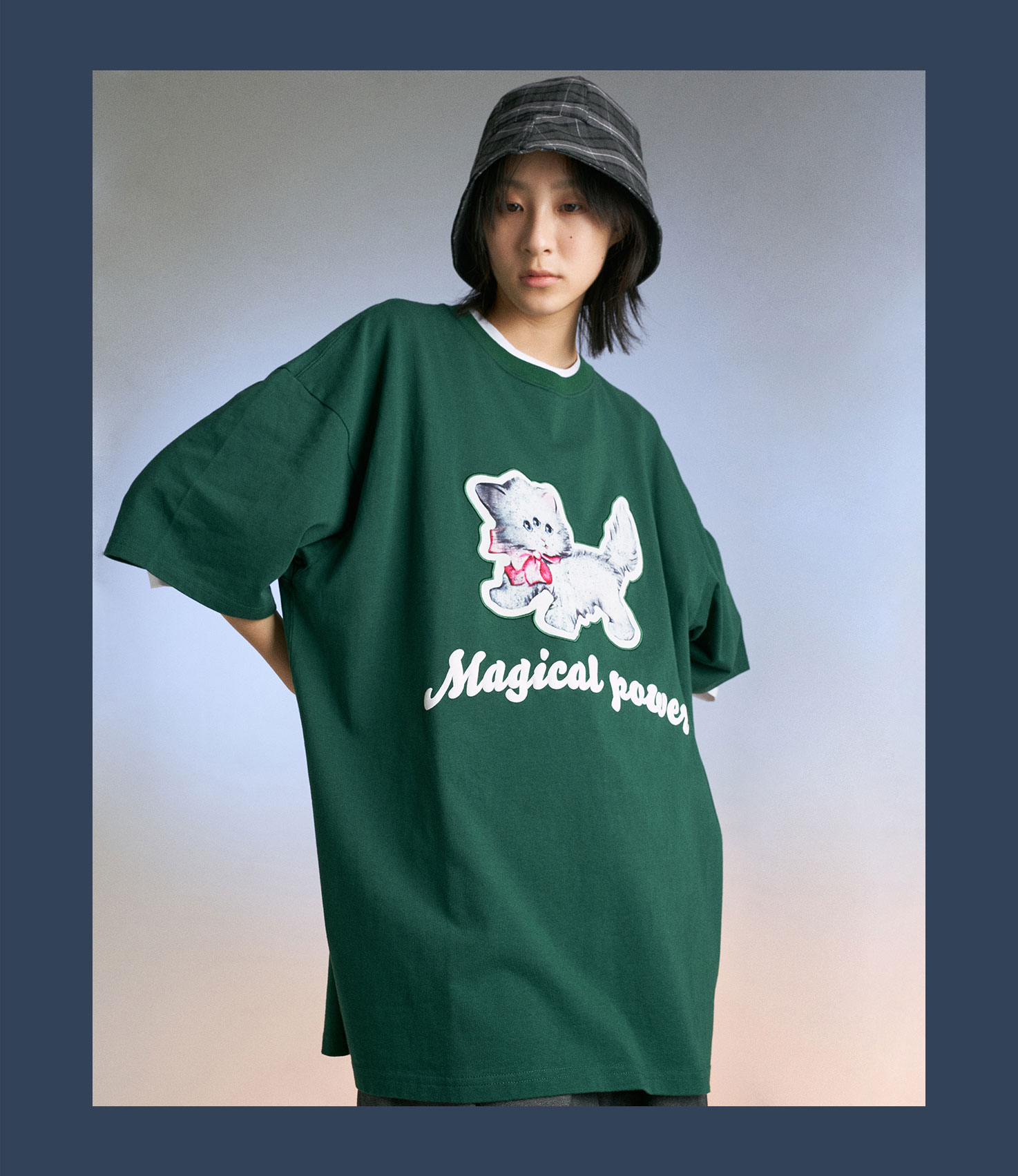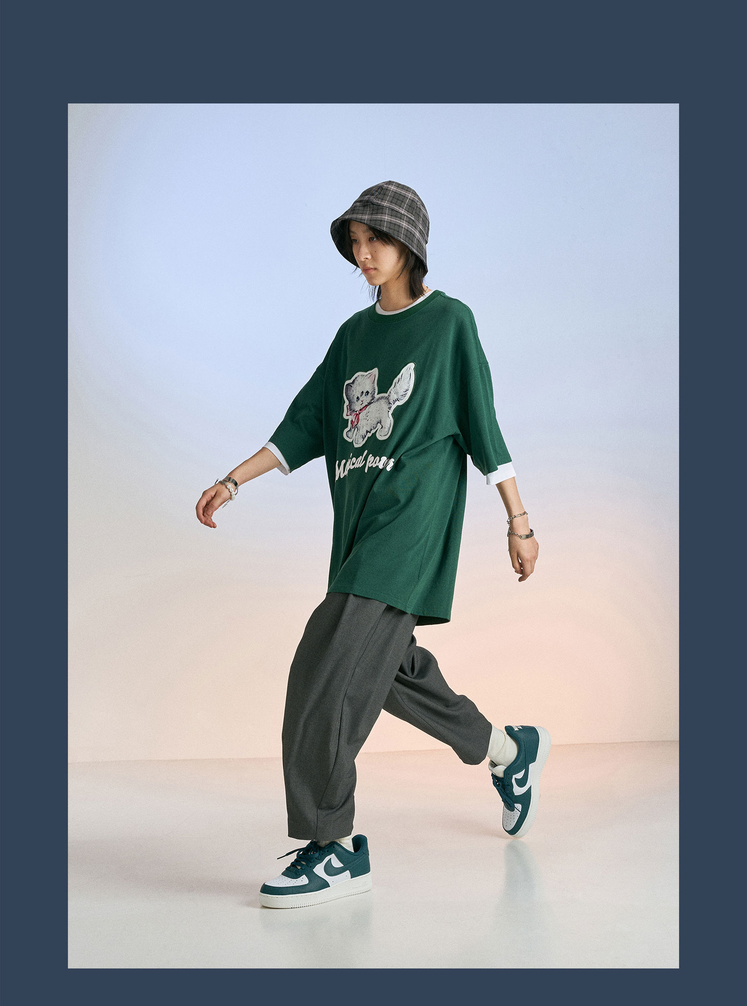 MODITEC 20SS 多色奇妙猫落肩短袖 刺绣印花宽松廓形短袖纯棉T恤