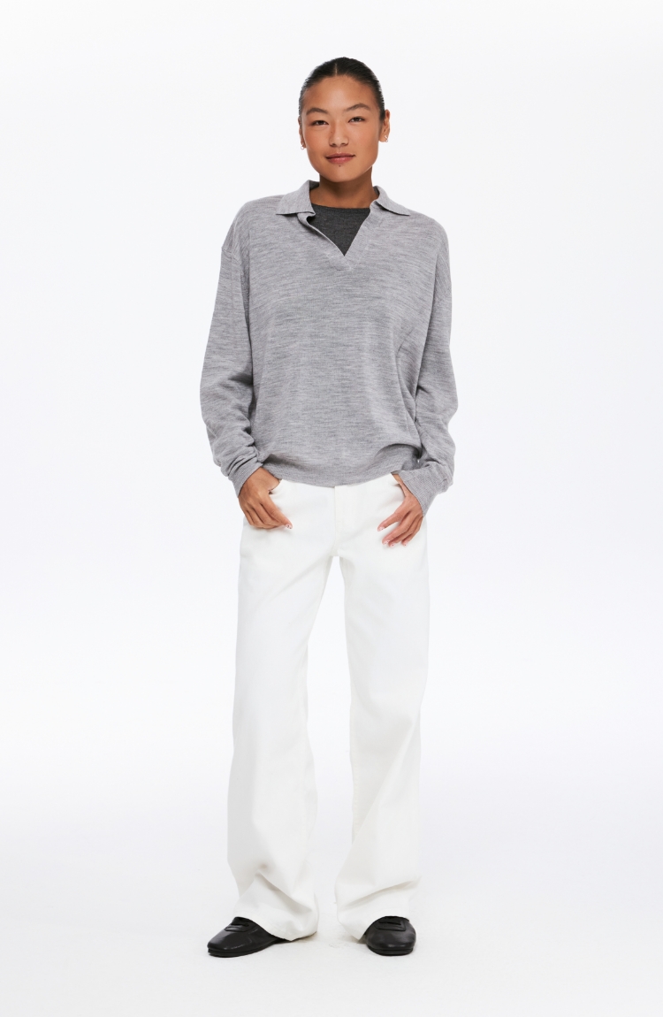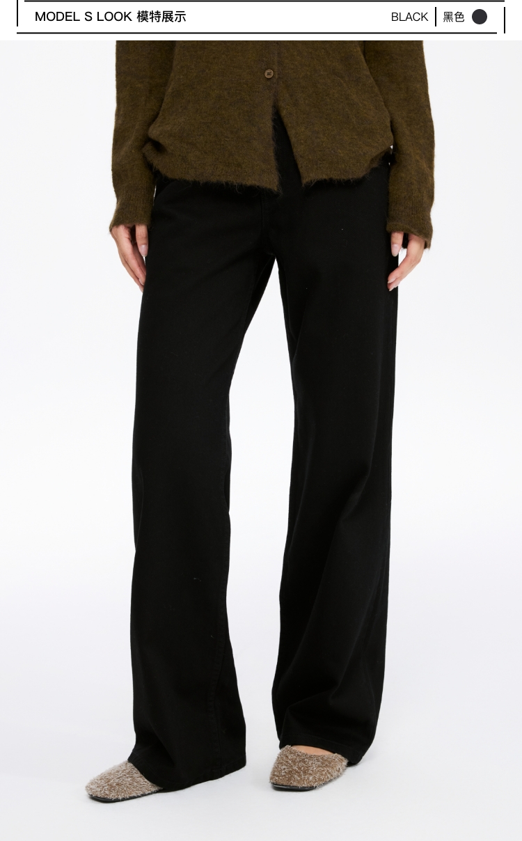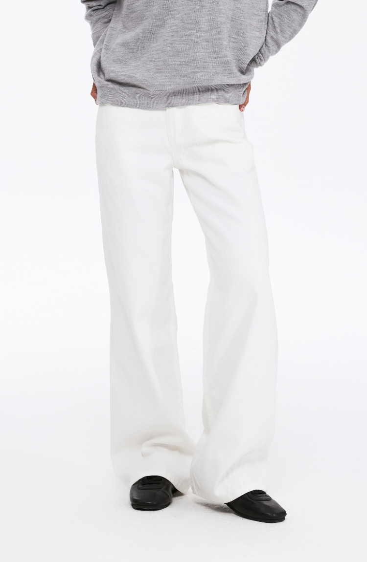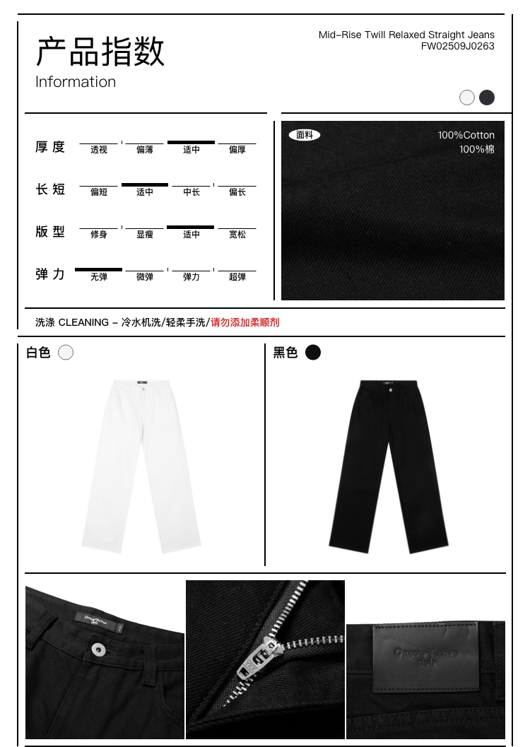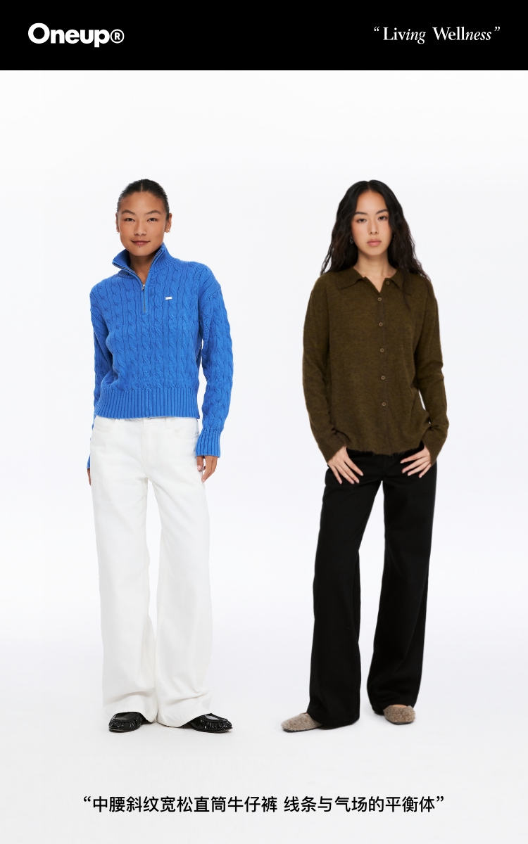 oneup中腰斜纹宽松直筒牛仔裤
