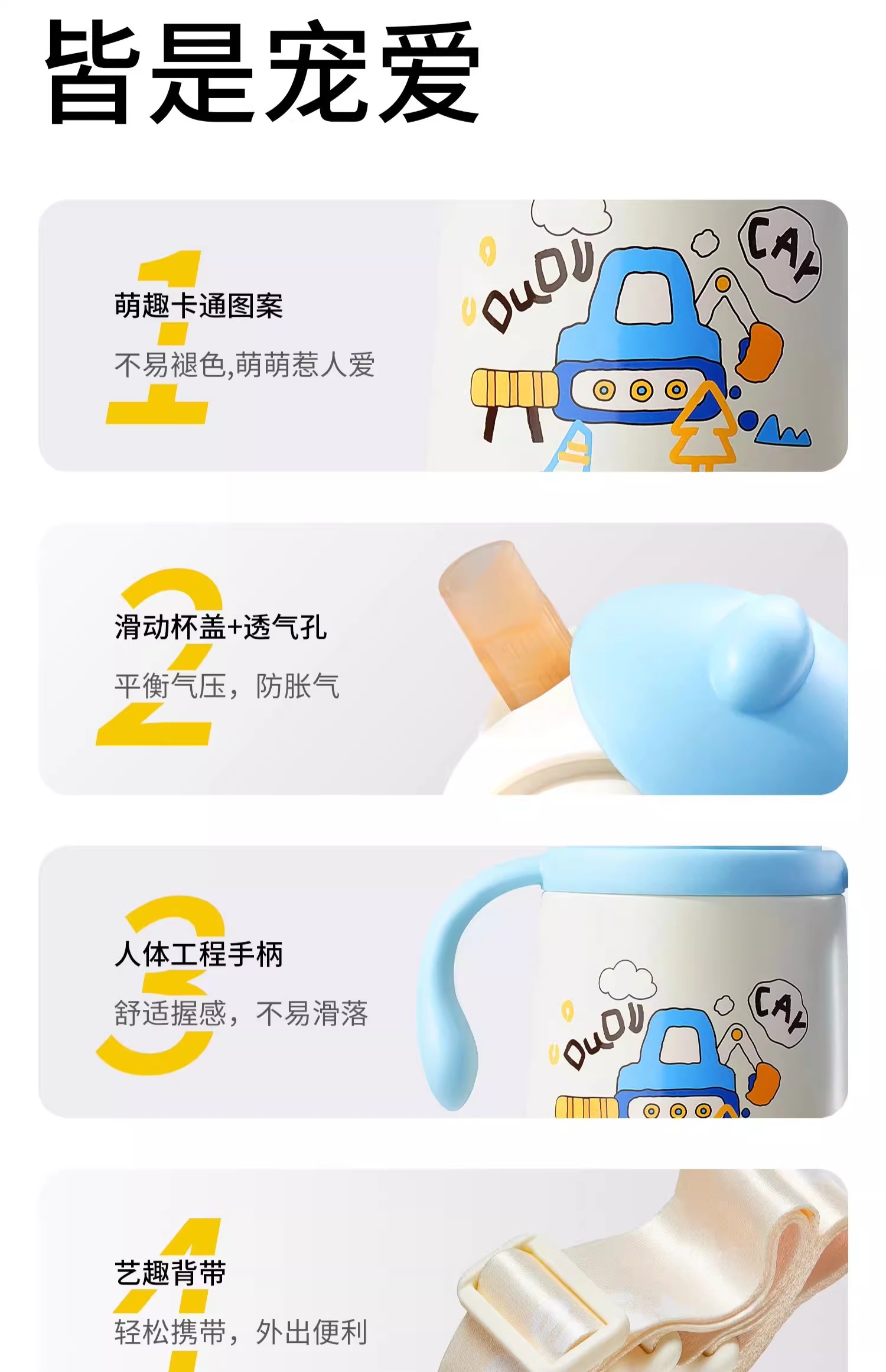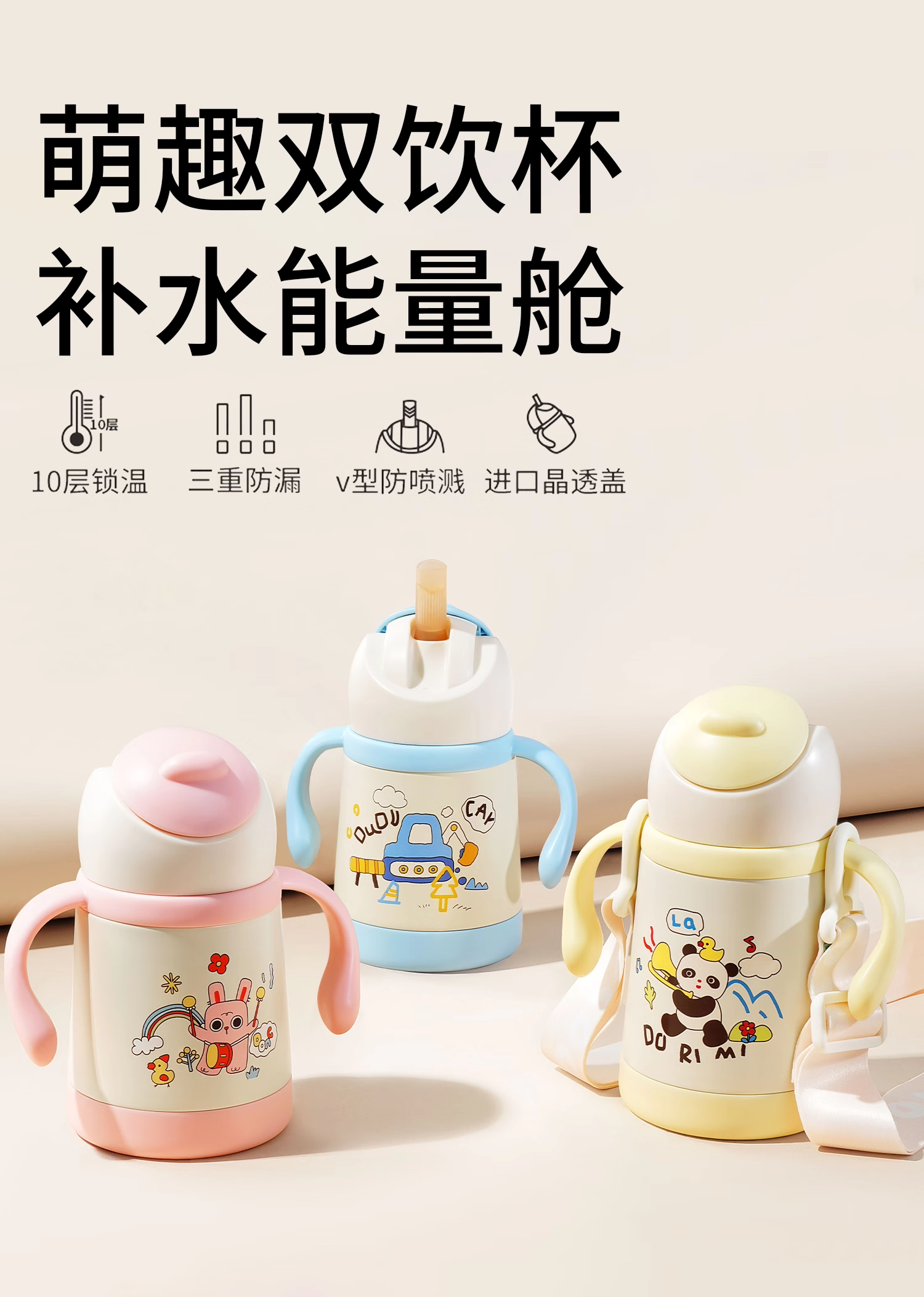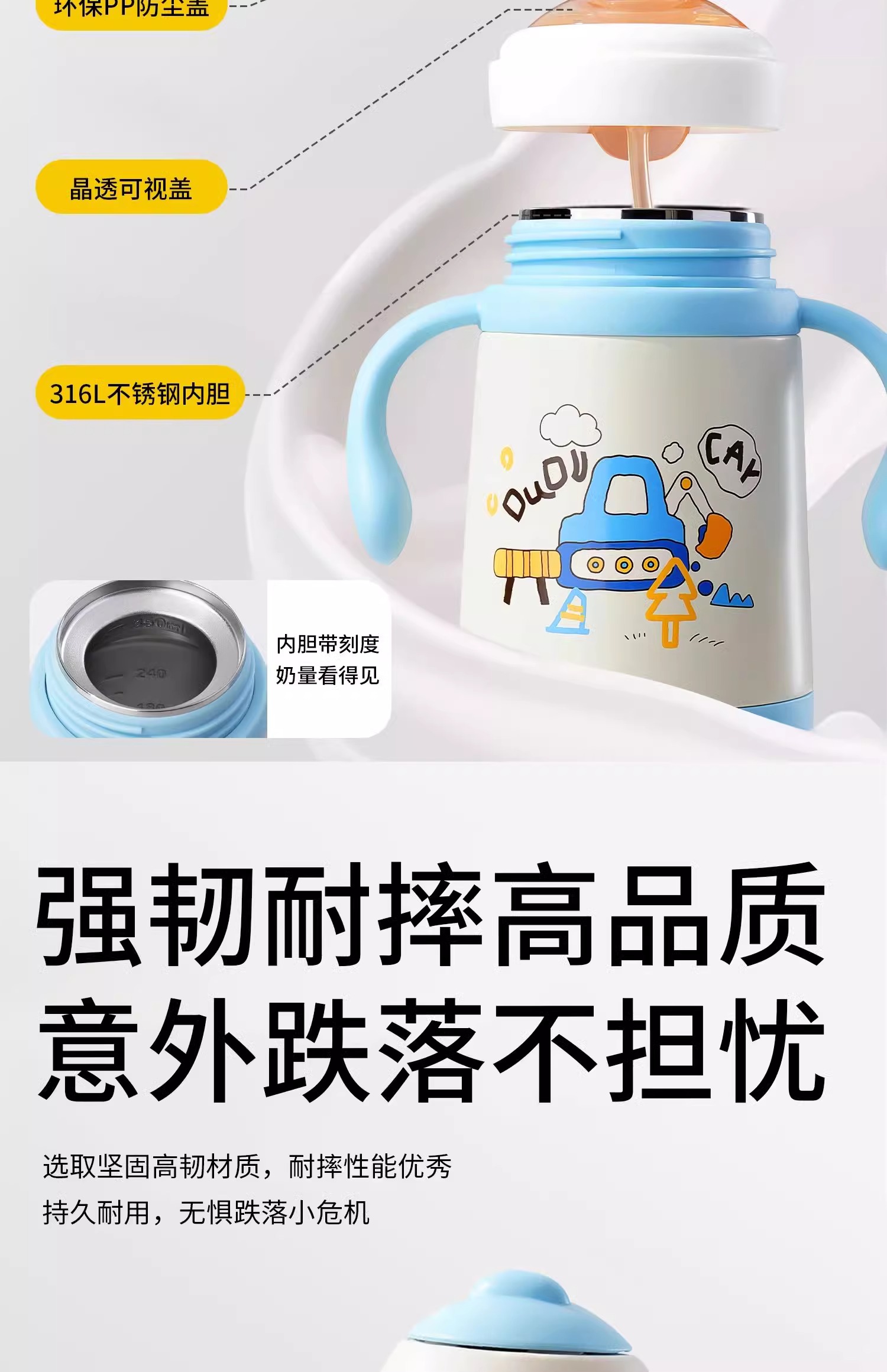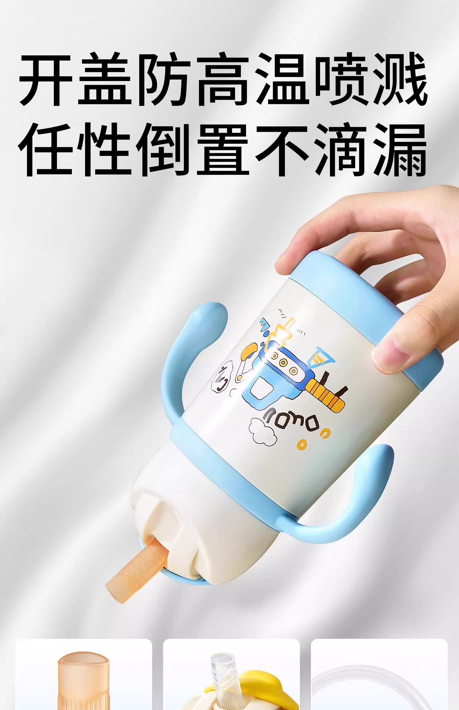 科巢儿童保温杯带吸管两用宝宝鸭嘴杯婴幼儿学饮杯外出喝水杯子壶
