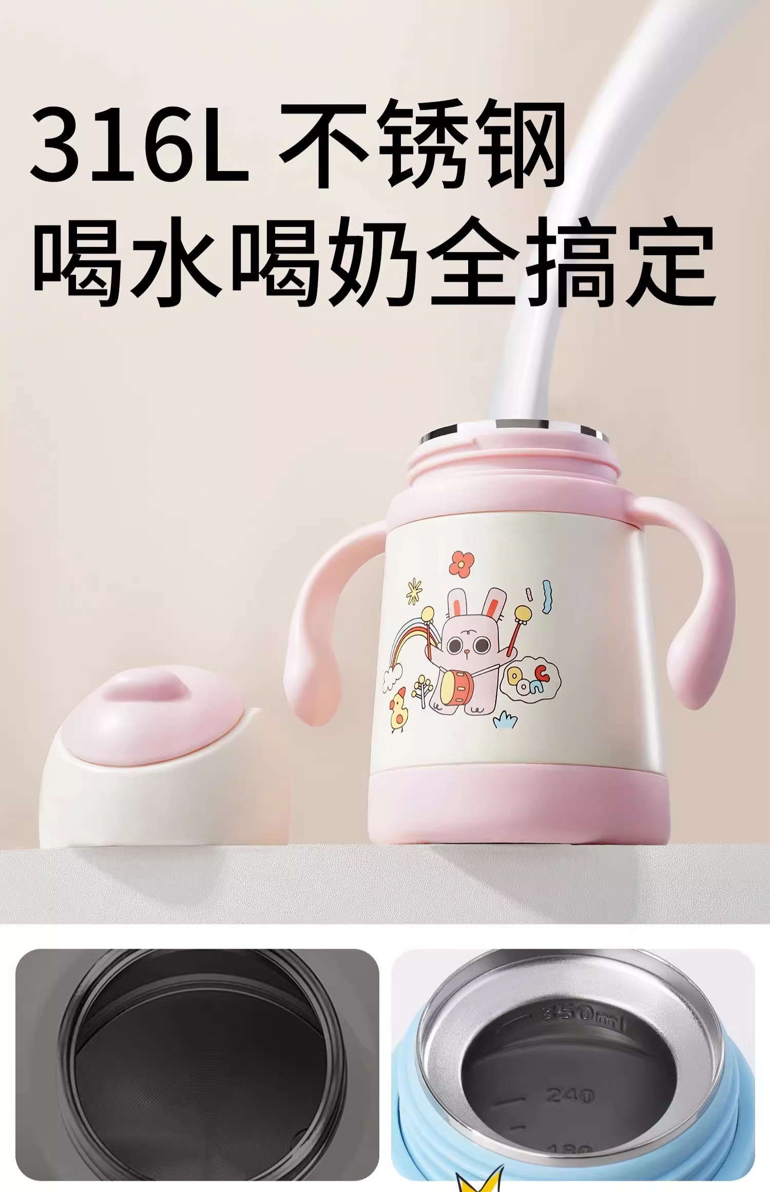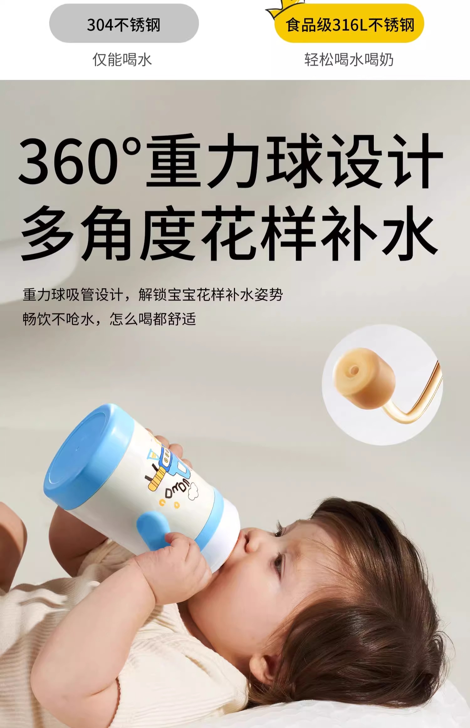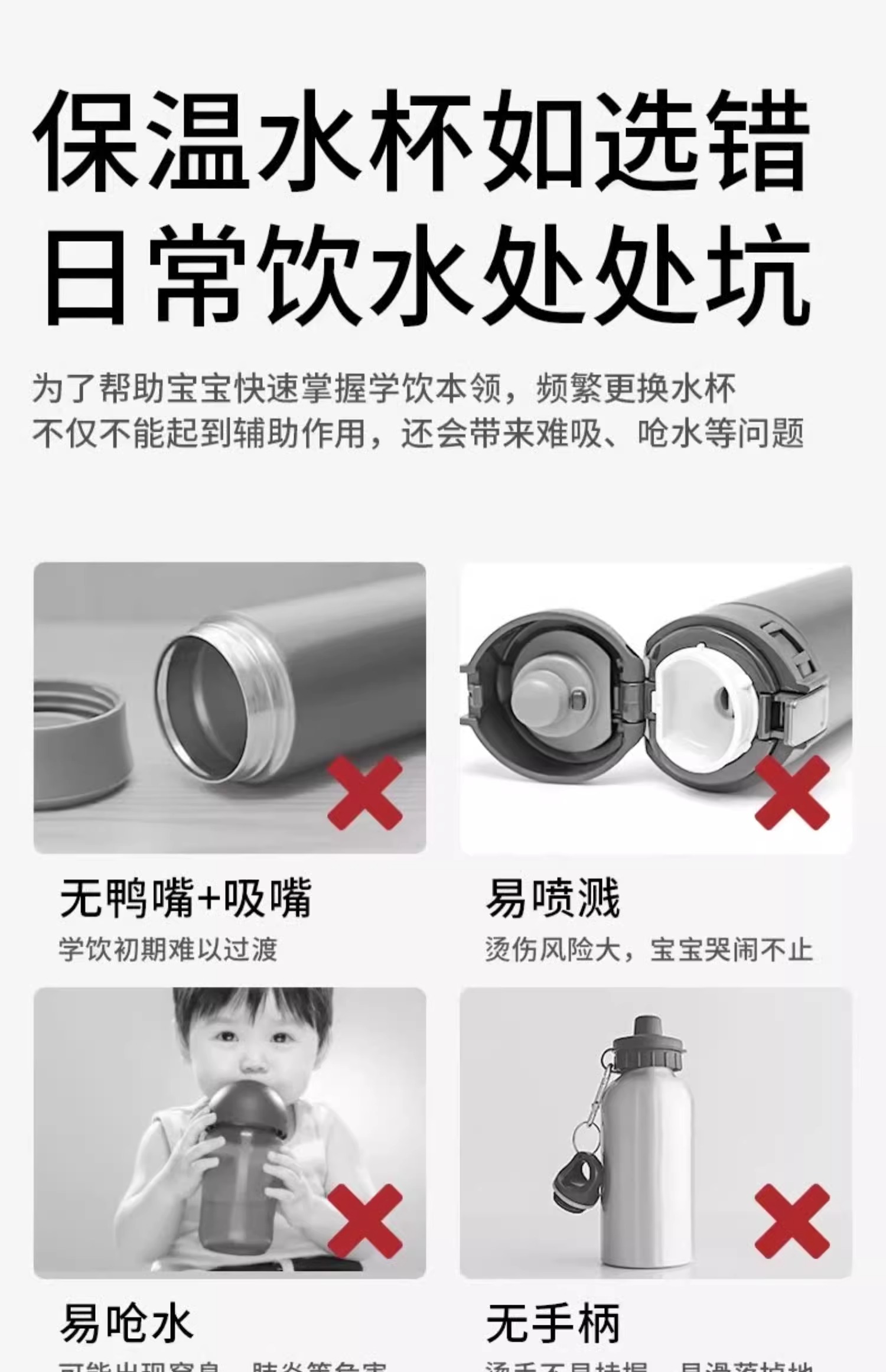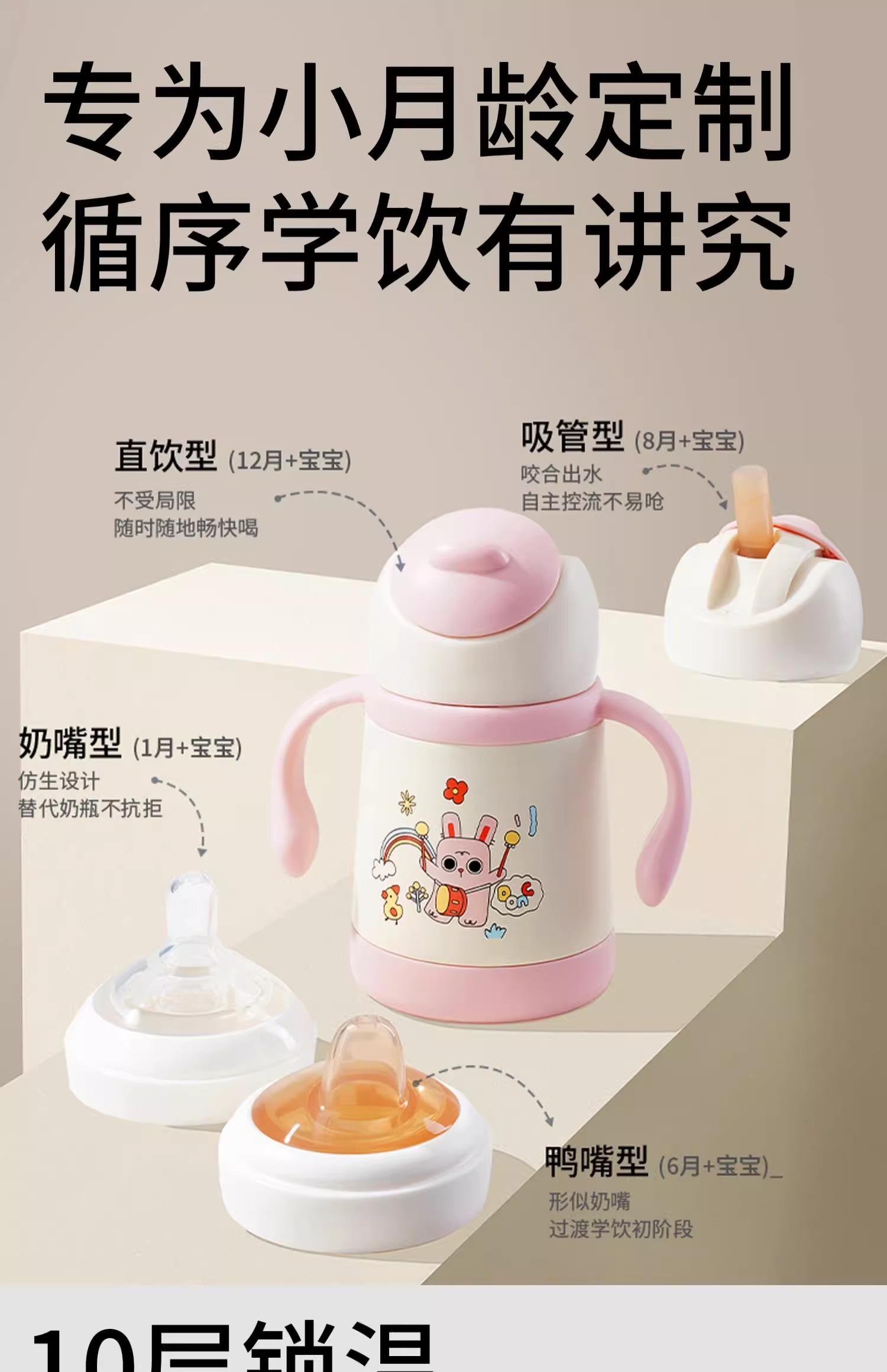 科巢儿童保温杯带吸管两用宝宝鸭嘴杯婴幼儿学饮杯外出喝水杯子壶