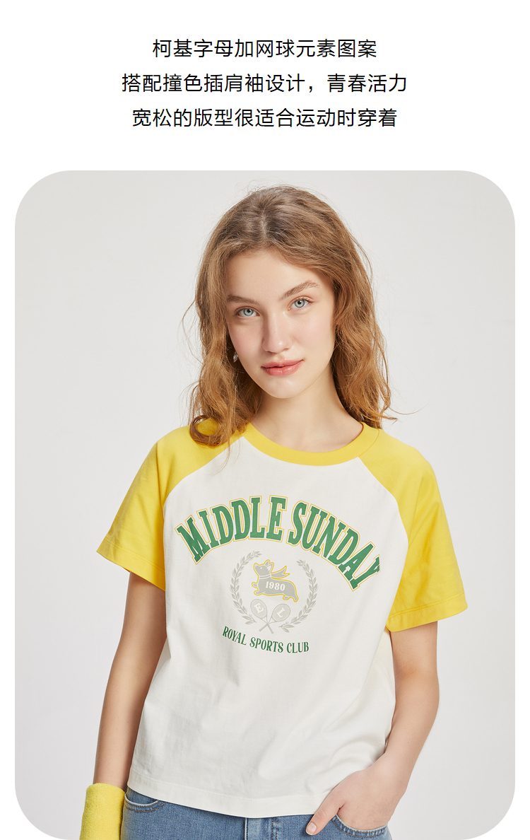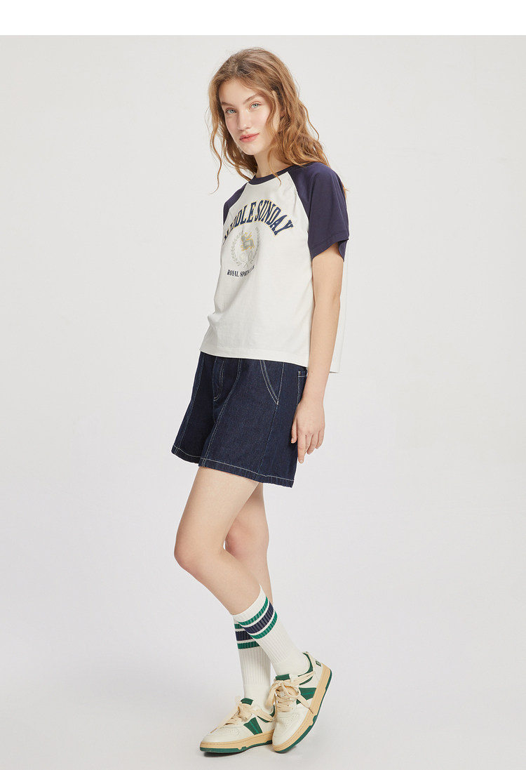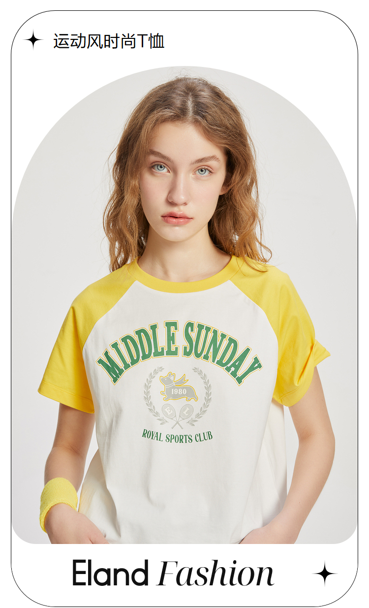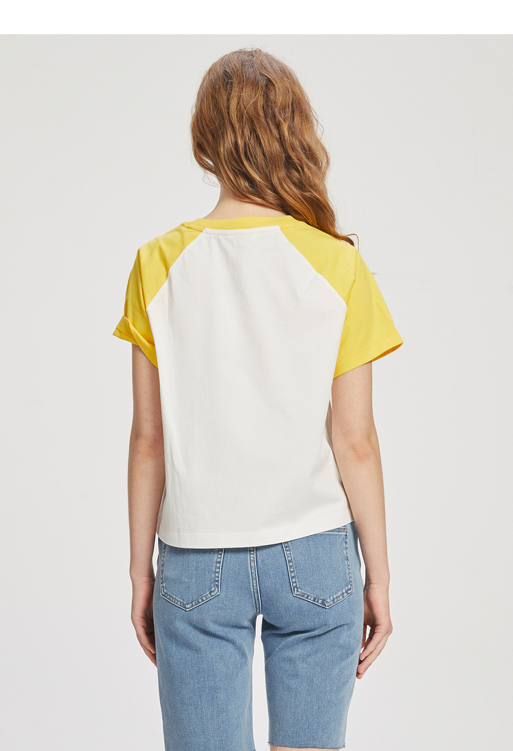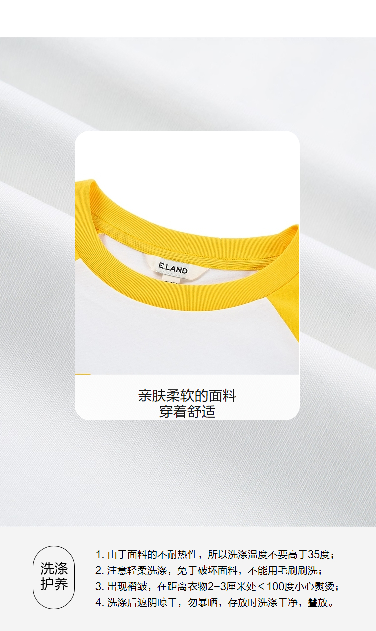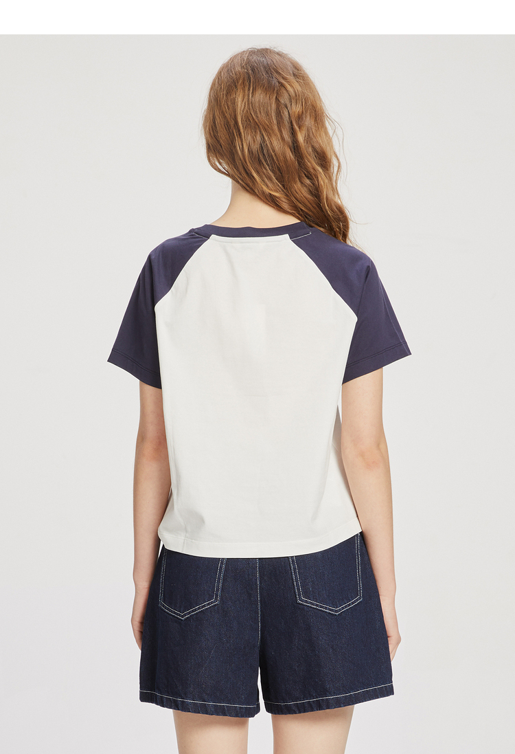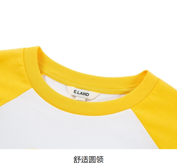 ELAND衣恋2022年春季新款小个子美式设计感撞色插肩纯棉T恤上衣女EERAC24N2M