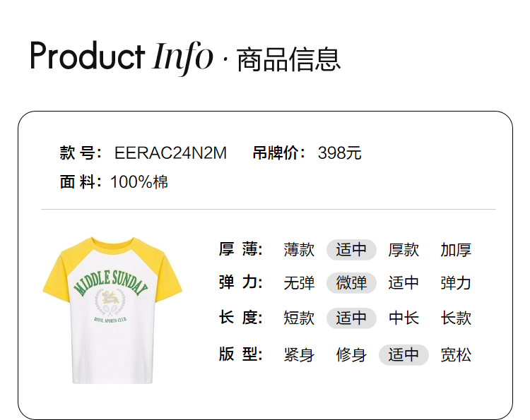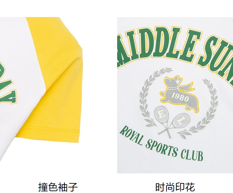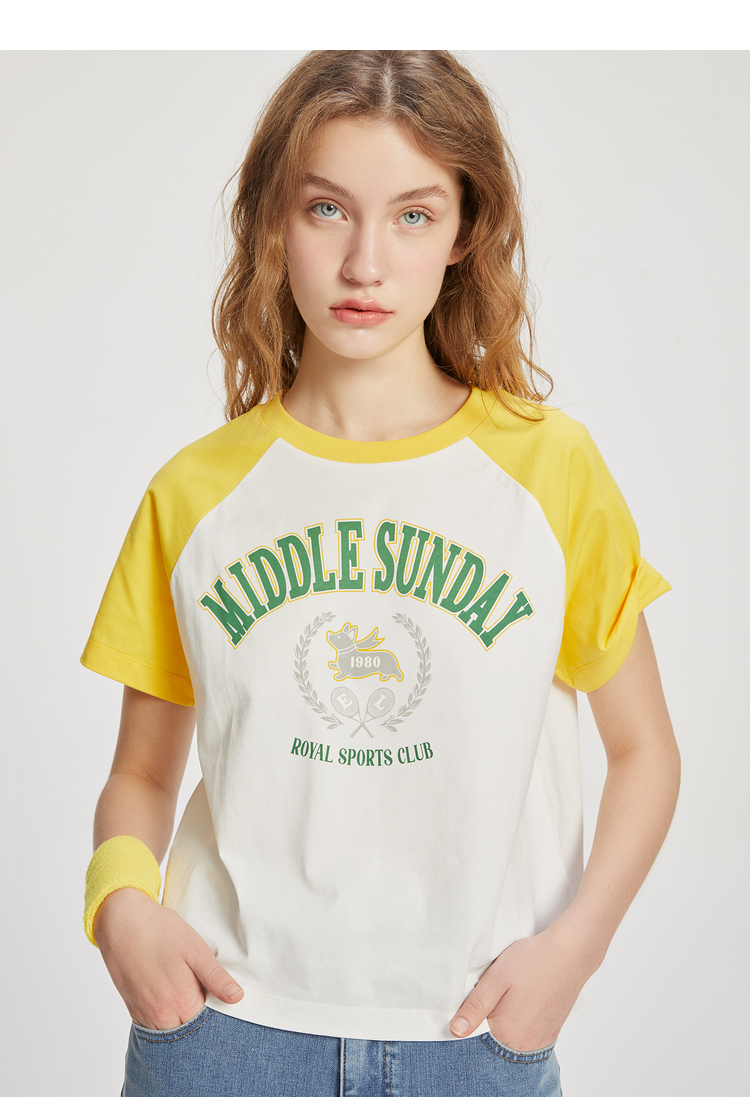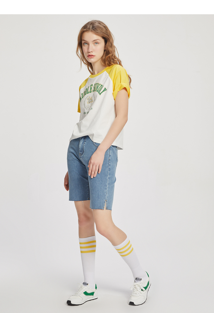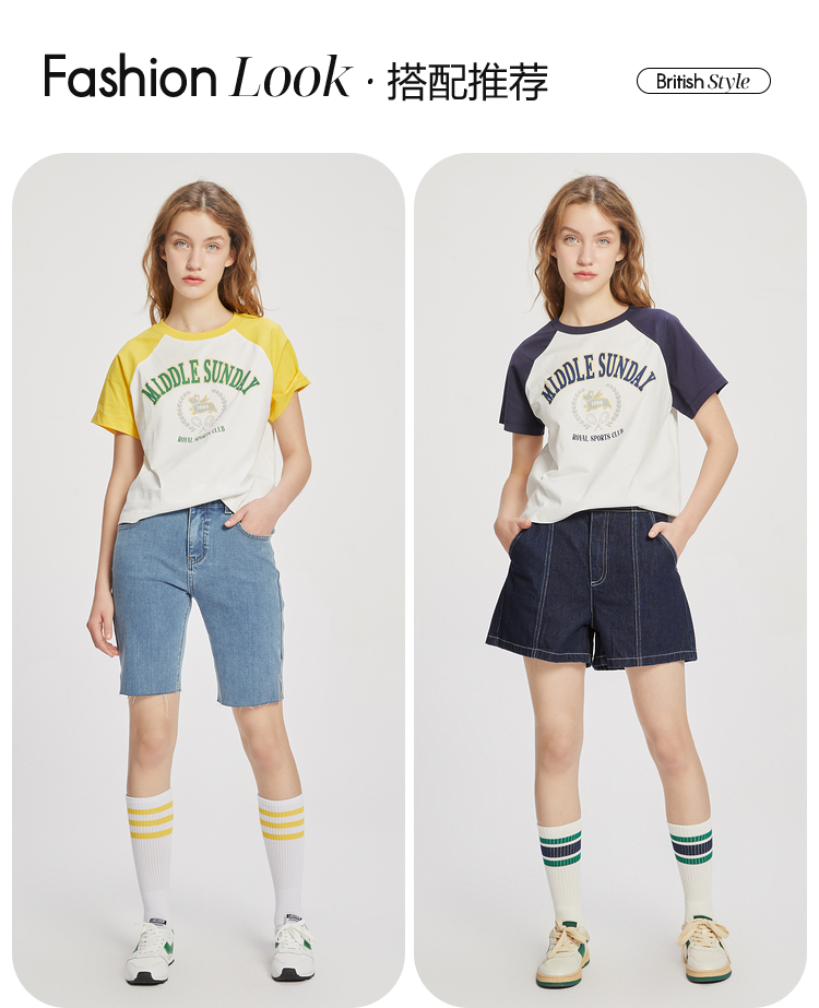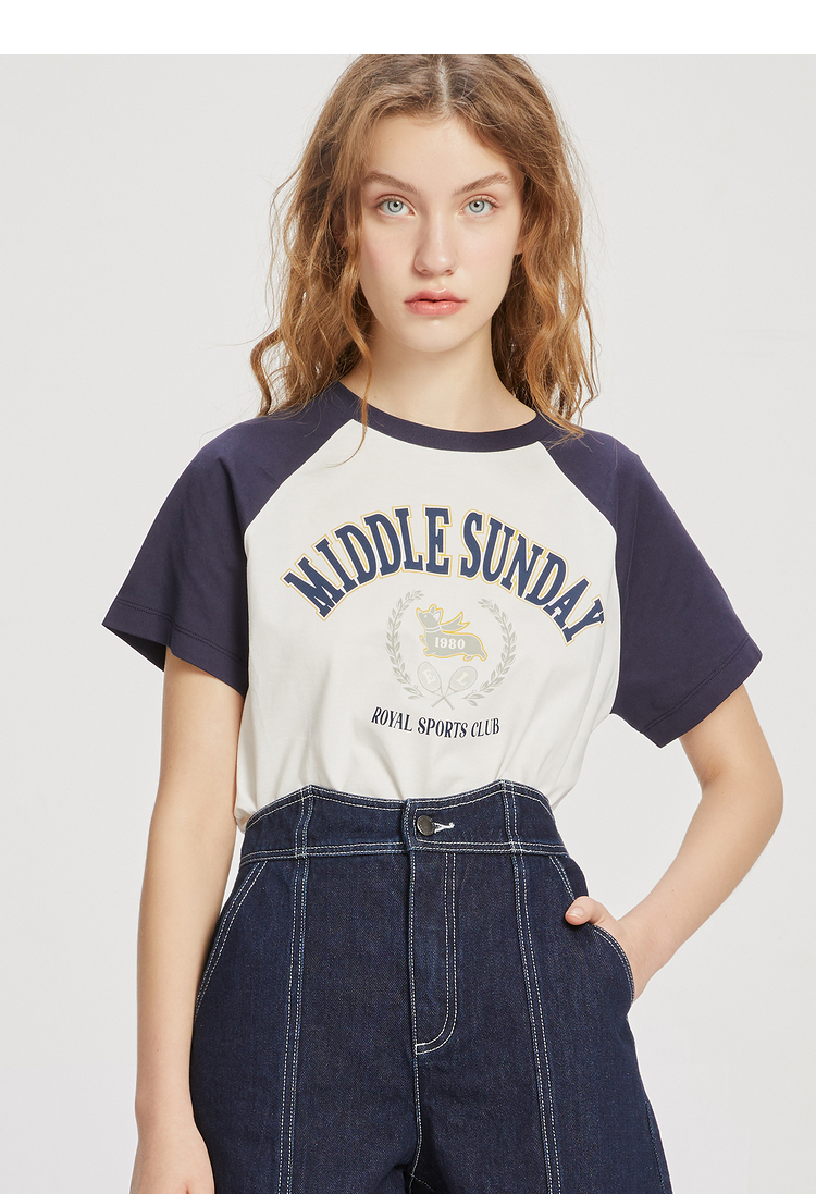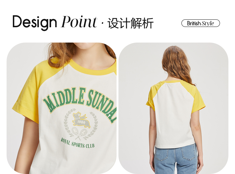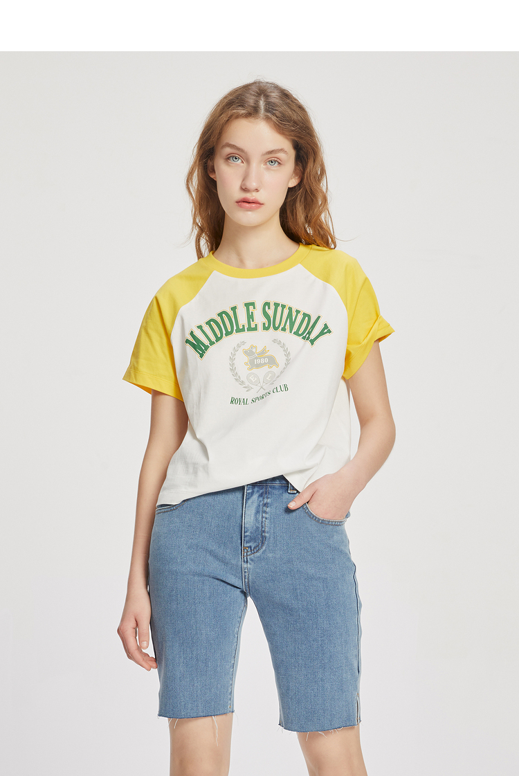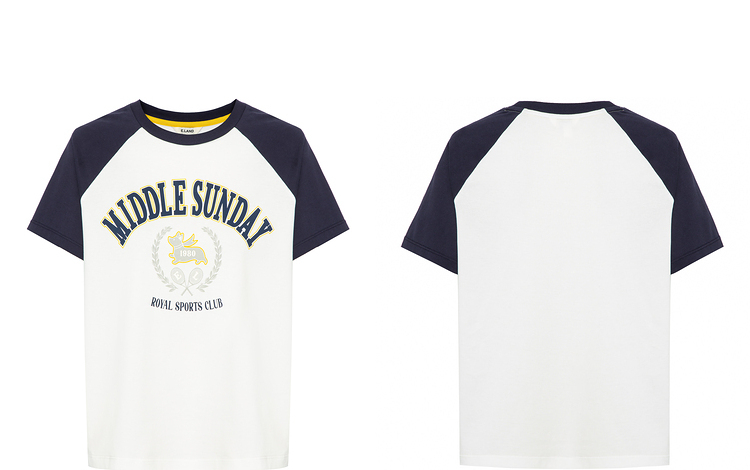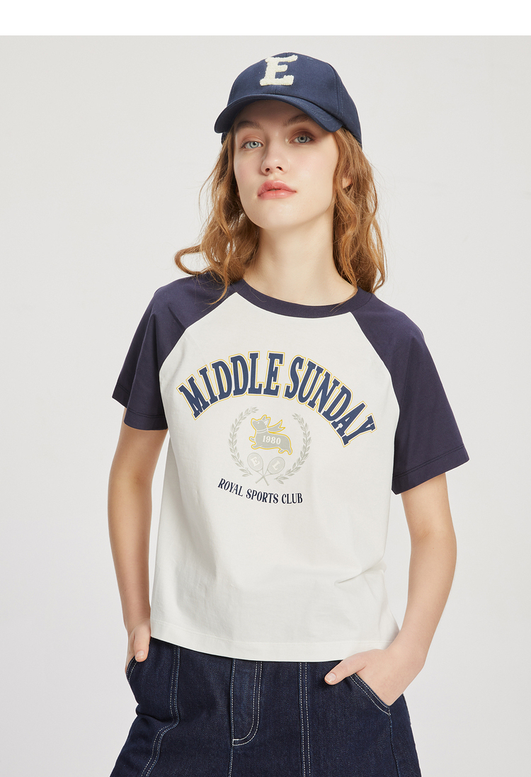 ELAND衣恋2022年春季新款小个子美式设计感撞色插肩纯棉T恤上衣女EERAC24N2M