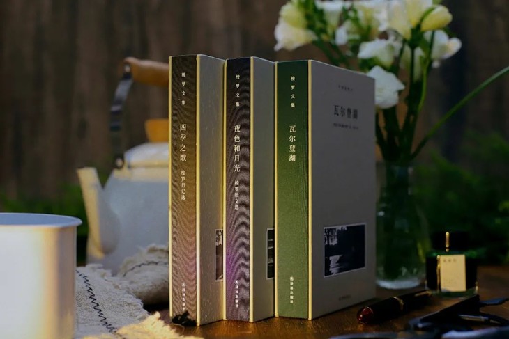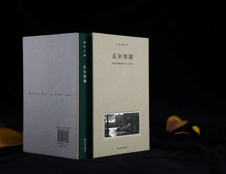 从这里开始读,就仿佛你也拥有了一间梦中的森林小屋。推开窗,就能感受款款清风。凭轩而坐,就能看见鹰在长空盘旋,水貂探出脑袋,在岸边叼走一只青蛙……另一个建议是,认准仲泽担纲翻译的版本。仲泽的译本,诗意又浪漫,贴切又严谨。能够一定程度上降低阅读门槛。如果你也爱好文艺、喜欢独处,热衷沉浸在大自然的优美风光,那百草君推荐你一定不要错过今天这套——「梭罗文集」木刻插图本。一共收录三本书:《瓦尔登湖》、《四季之歌:梭罗日记选》、《夜色和月光:梭罗散文集》。其中还特别加入了梭罗迷们争相收藏的《非暴力抵制》及其述评和解读。今天的这版木刻插图本,收录了托马斯·内森的大约50幅经典木刻版画。书中选取的版画式样、风景,与书中所描绘的自然风光契合度很高。从黄昏日落、森林小屋到雾散湖泊,木刻版画独有静谧的气质,让你整个人都会随之沉浸。硬装书壳,封面采用云雾灰沉香纸,细腻的草木纤维纹理夹杂其间,如同抚摸一片风干的灌木叶子。手工定位裱贴的黑白版画,意蕴悠远,美观耐看,神秘又浪漫。分别以藏蓝、墨绿、静谧黑,三色绢布包裹书脊,再现自然氛围中的湖泊、森林与深空。时间只是由梭罗垂钓的一条溪流。他有与生俱来的敏锐智识,如同一位刀客,能帮助他洞见万物的隐秘。所有的灵慧似乎都写在那双眼睛里,其中不只是童蒙的纯真,也有经过砺练得以升华的智慧。这双眼睛是造物者的馈赠,跟它映出的苍穹一样久远。