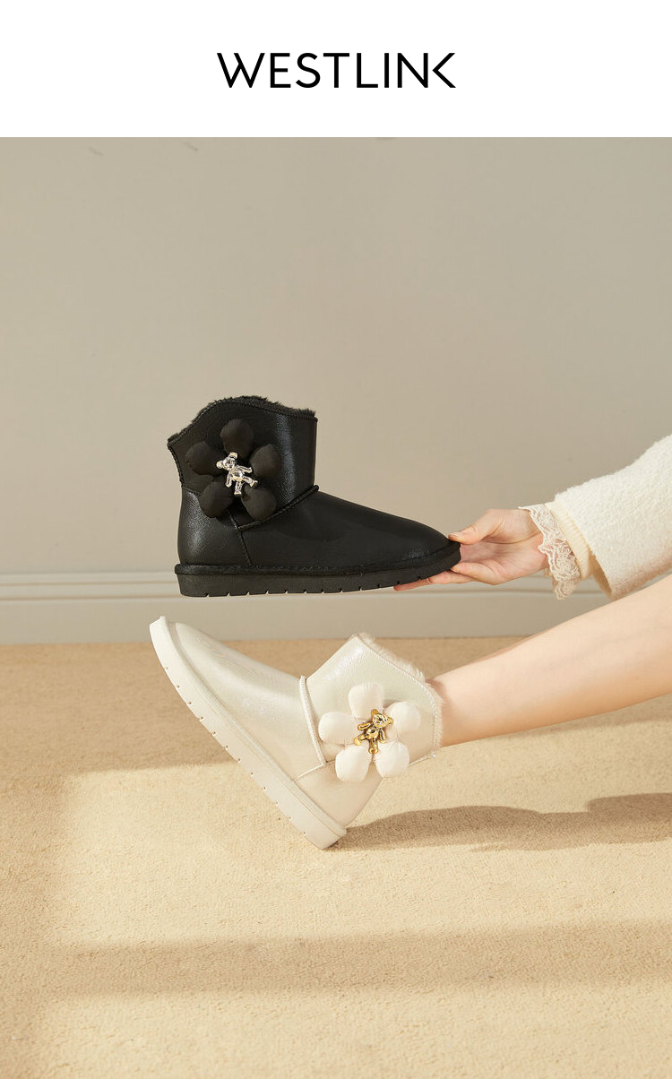 西遇可爱雪地靴女冬季新款网红小熊加绒加厚保暖高筒棉鞋子D2023781