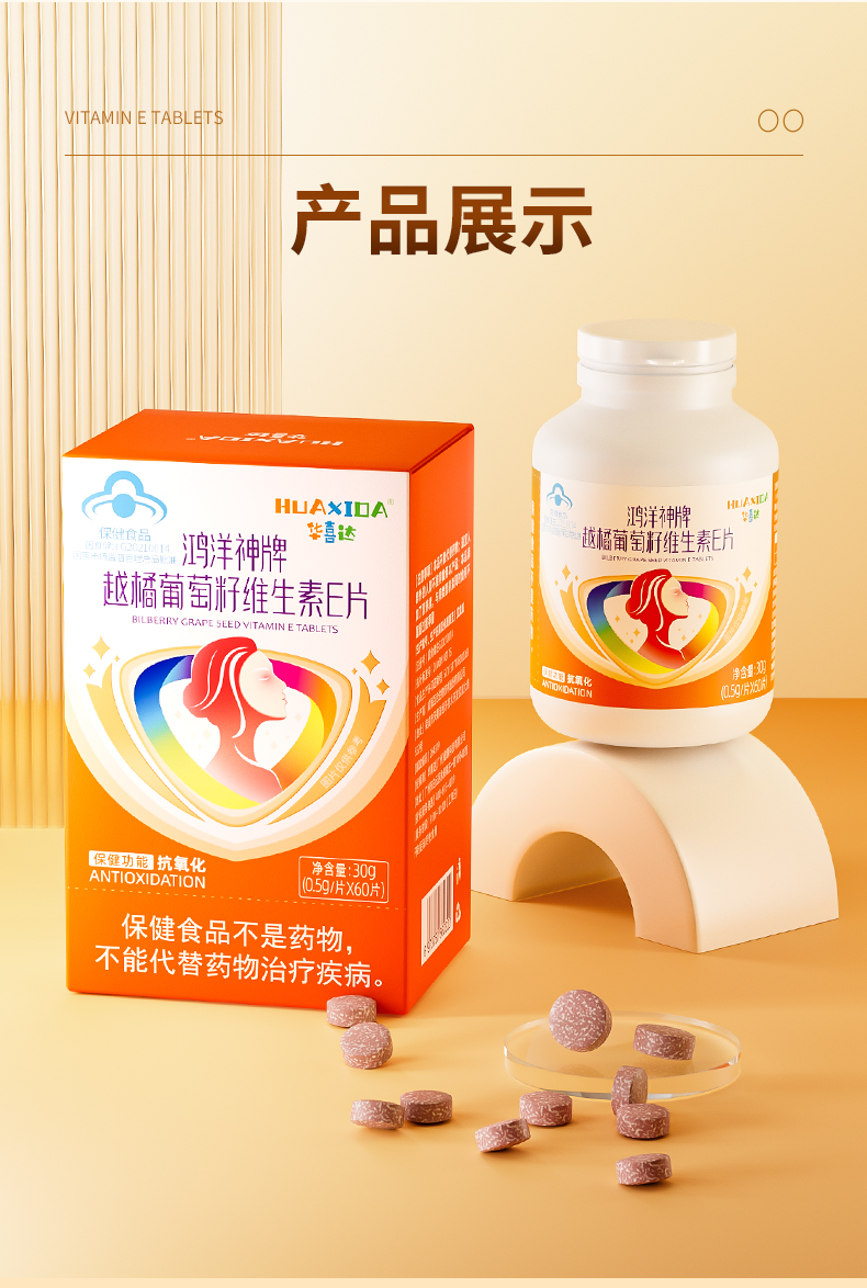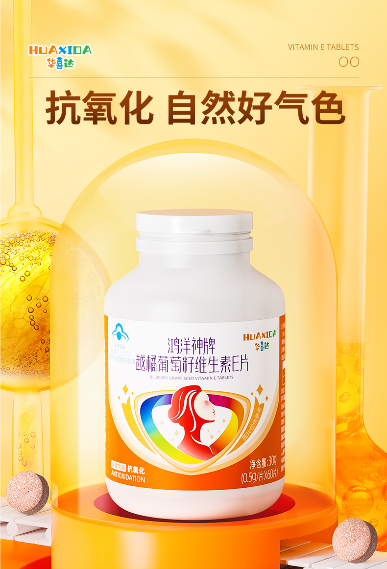 华喜达鸿洋神牌越橘葡萄籽维生素E片改善皮肤松弛暗沉泛黄官方正品