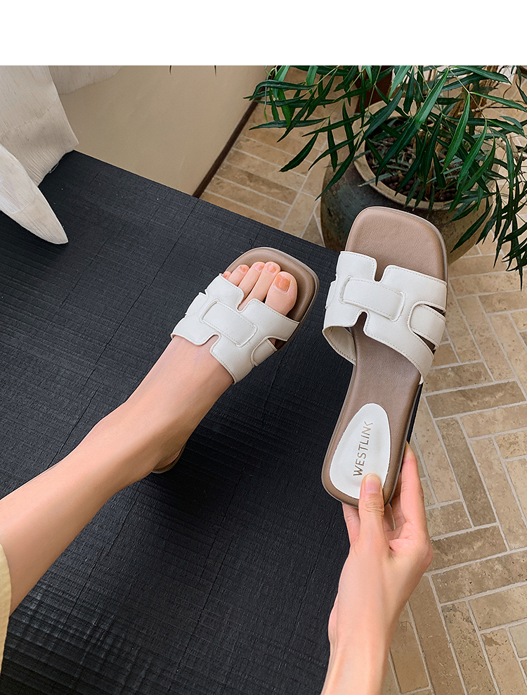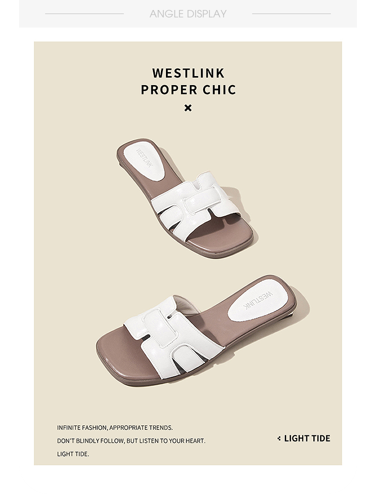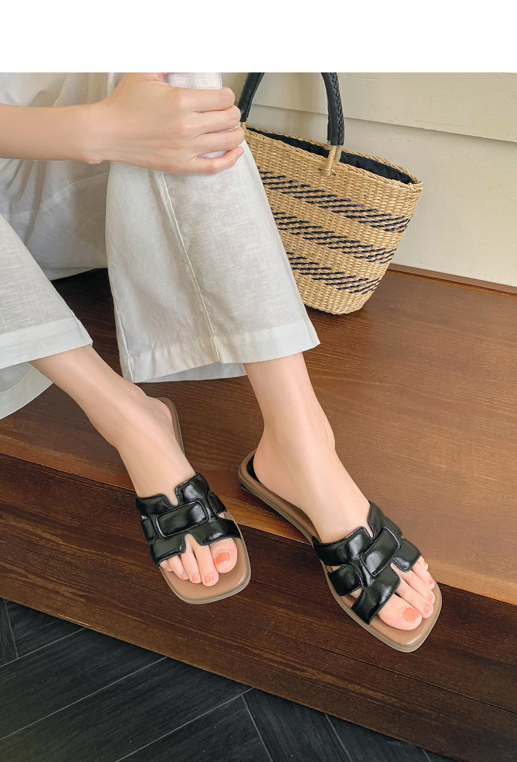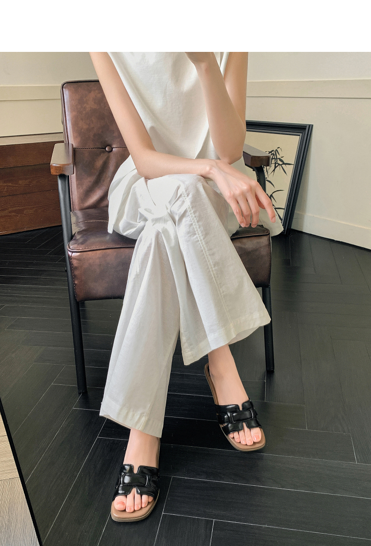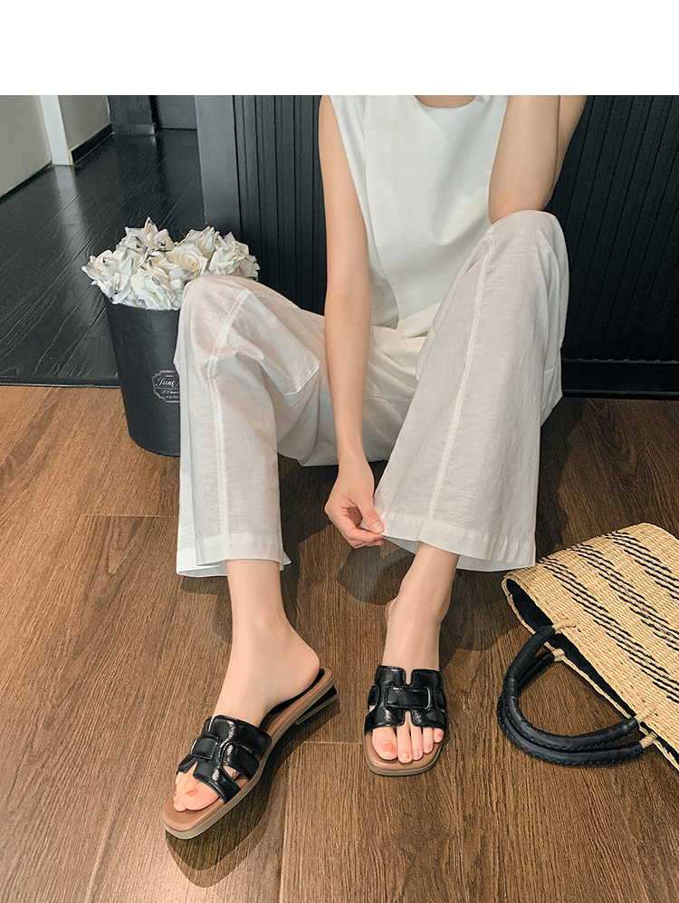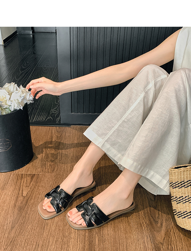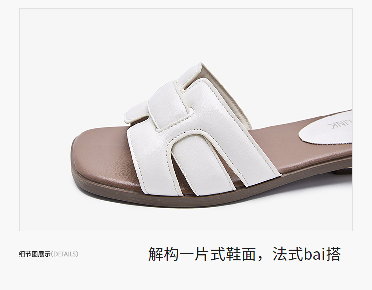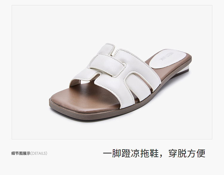 西遇法式凉拖鞋女新款夏季高级感平底凉鞋方头低跟外穿一字拖K1156793