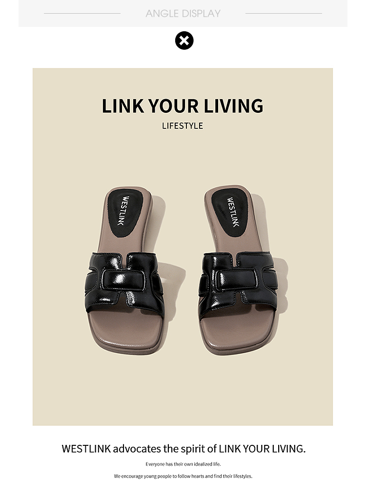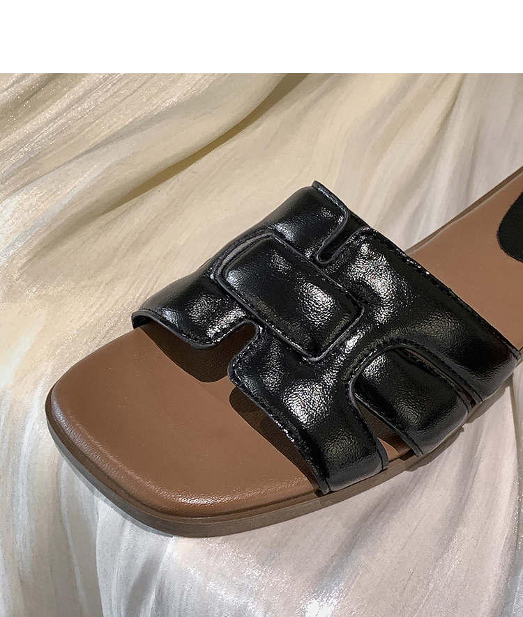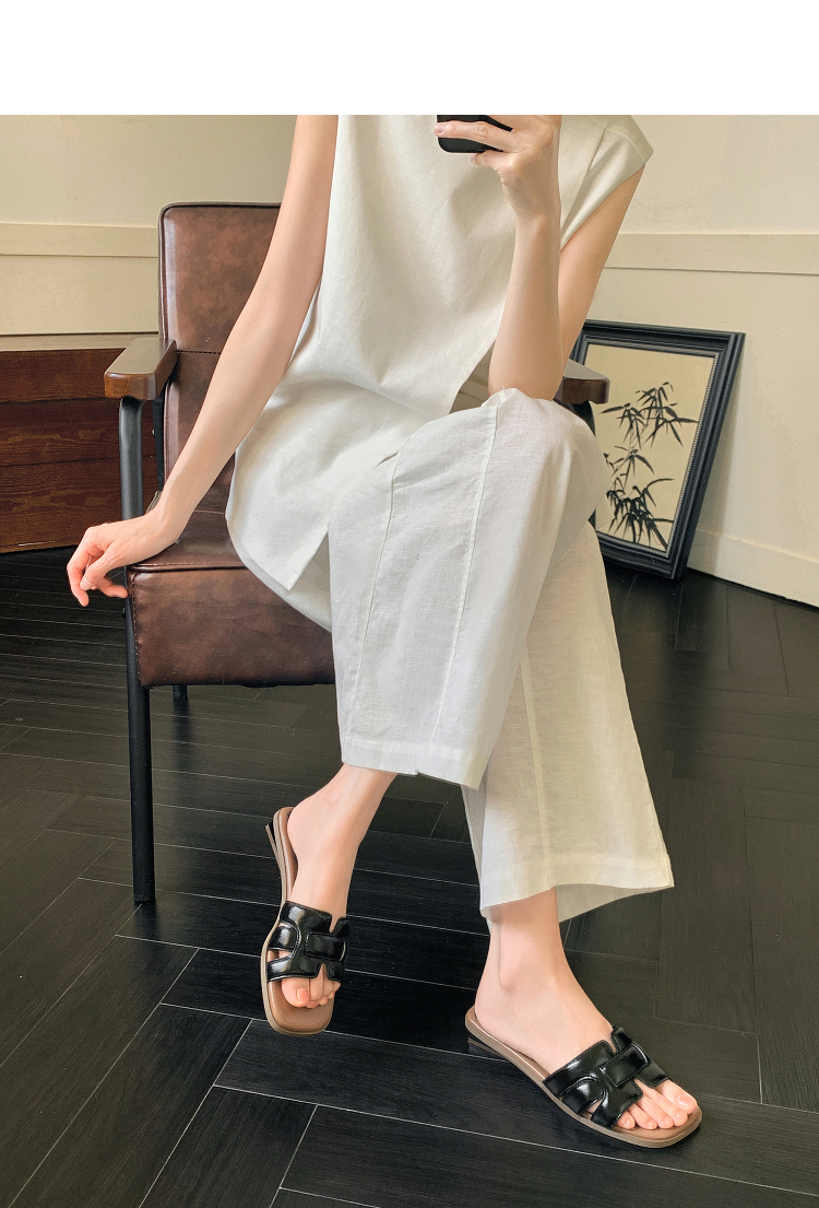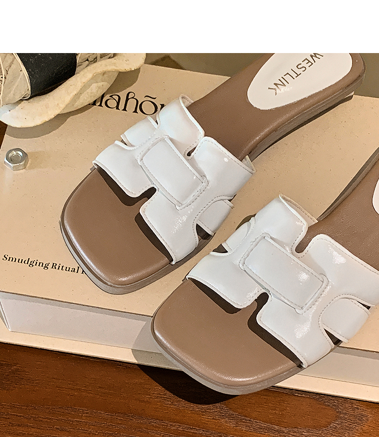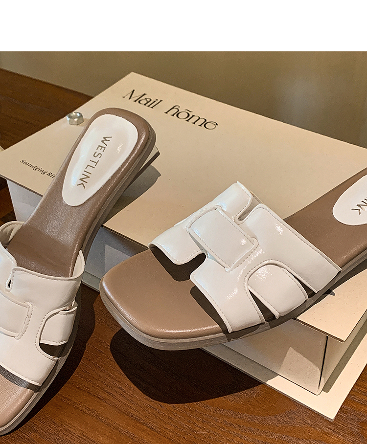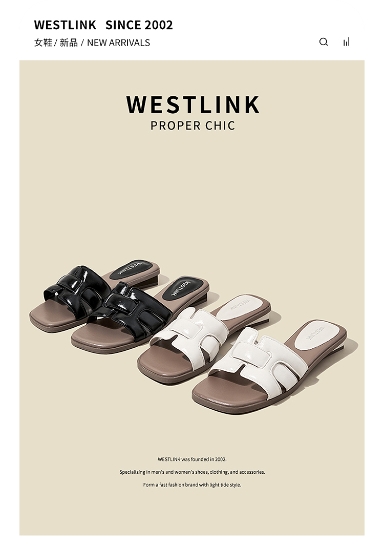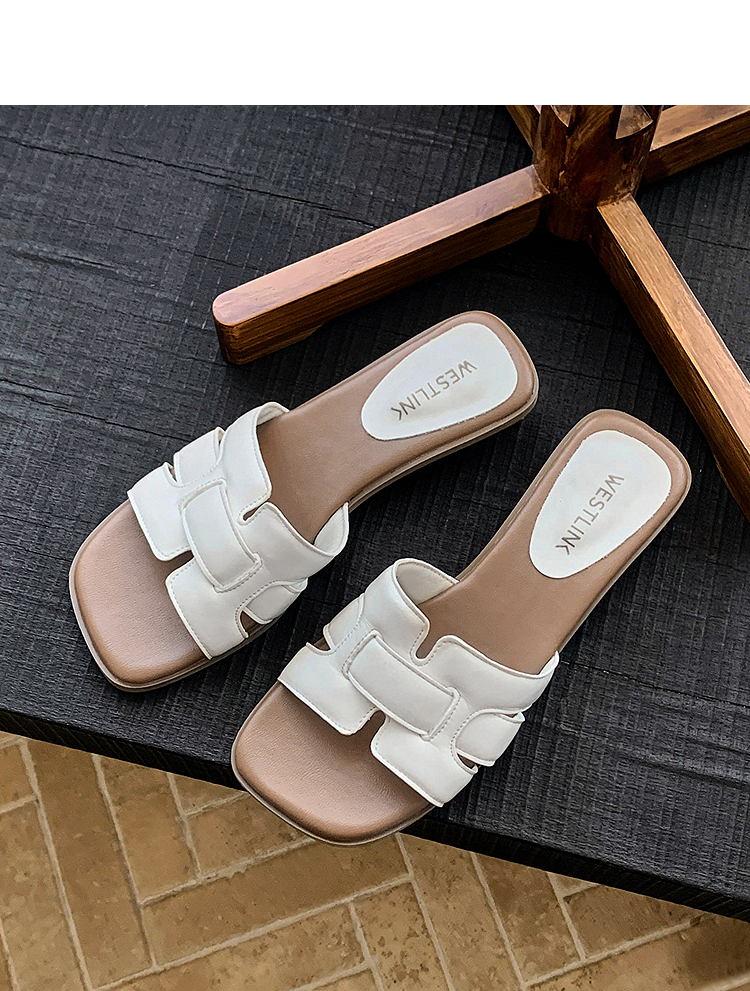 西遇法式凉拖鞋女新款夏季高级感平底凉鞋方头低跟外穿一字拖K1156793