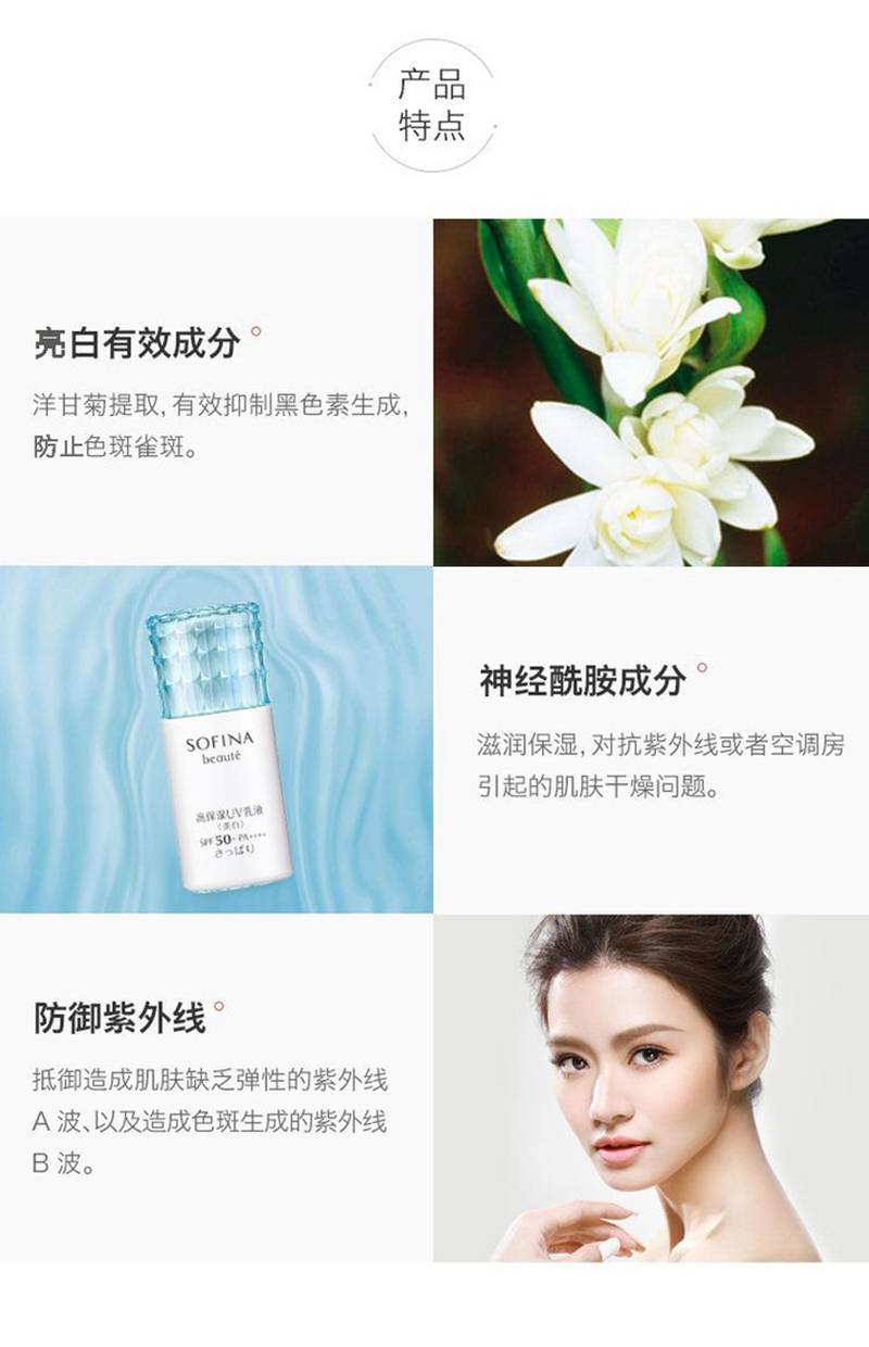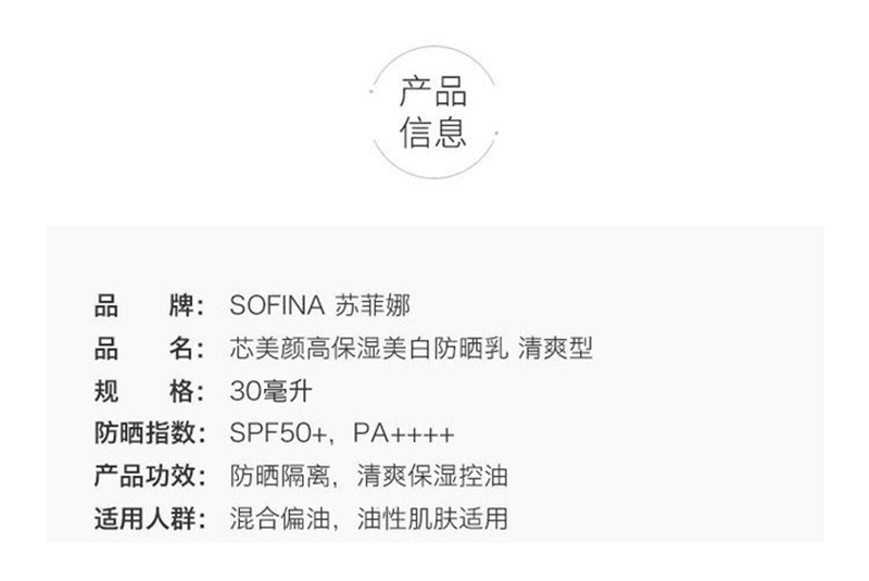 苏菲娜 高保湿美白防晒乳清爽型30g