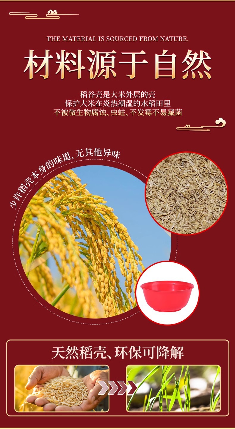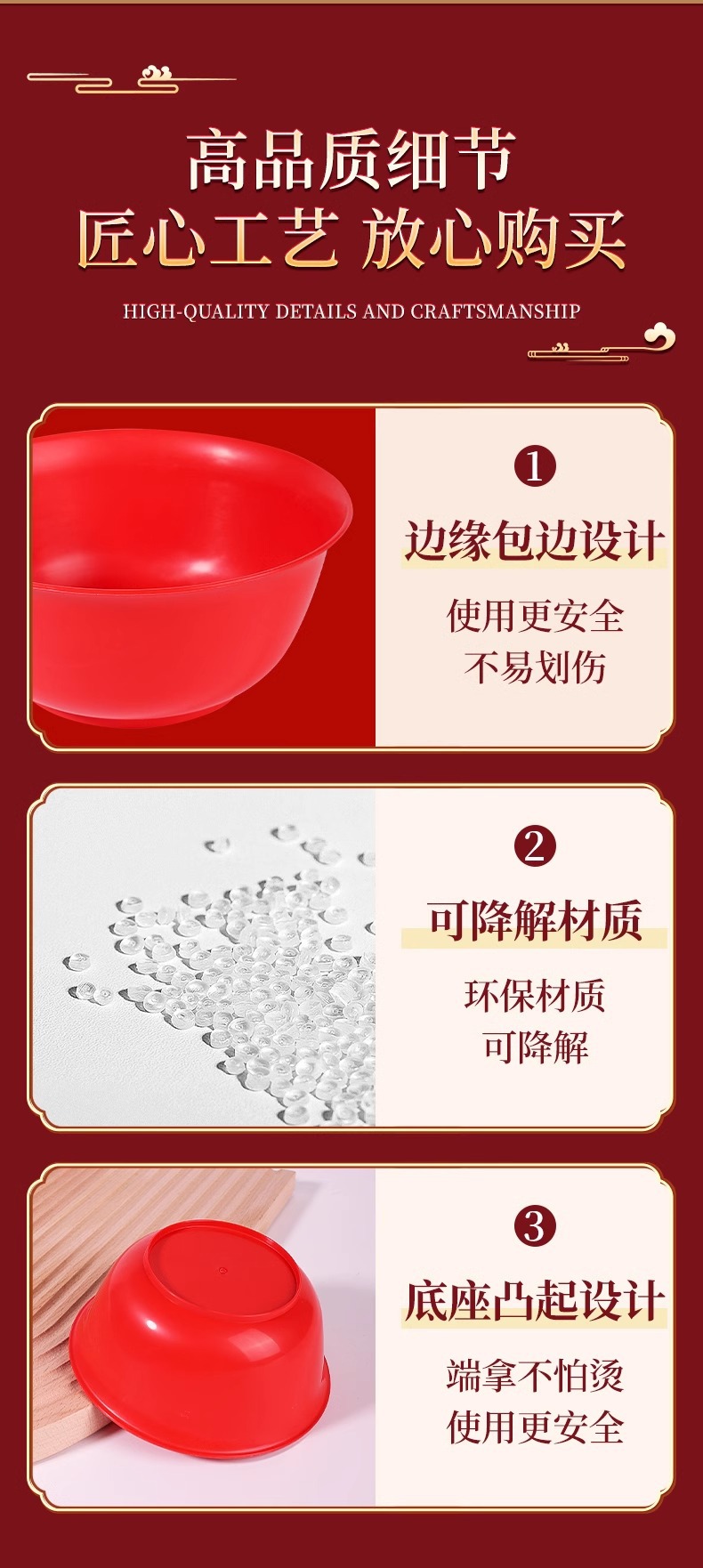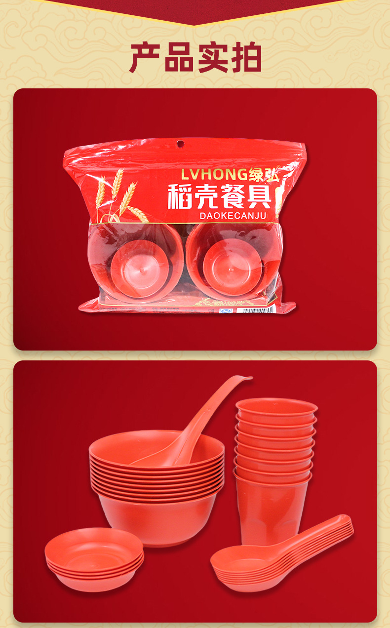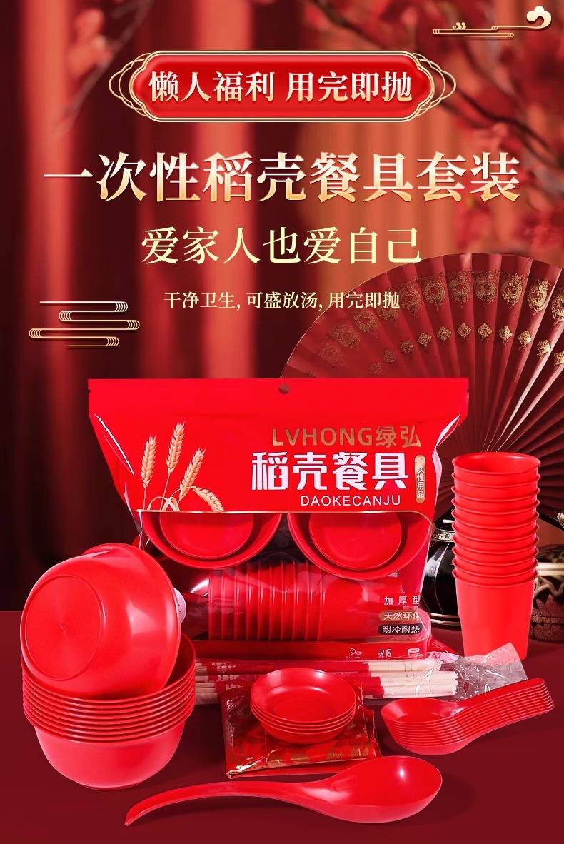 「19.9到手10人份!一次性套装」一次性碗筷杯三件套 组合酒席用红色婚宴新年过年家用套装稻壳餐具10人份餐饮用具