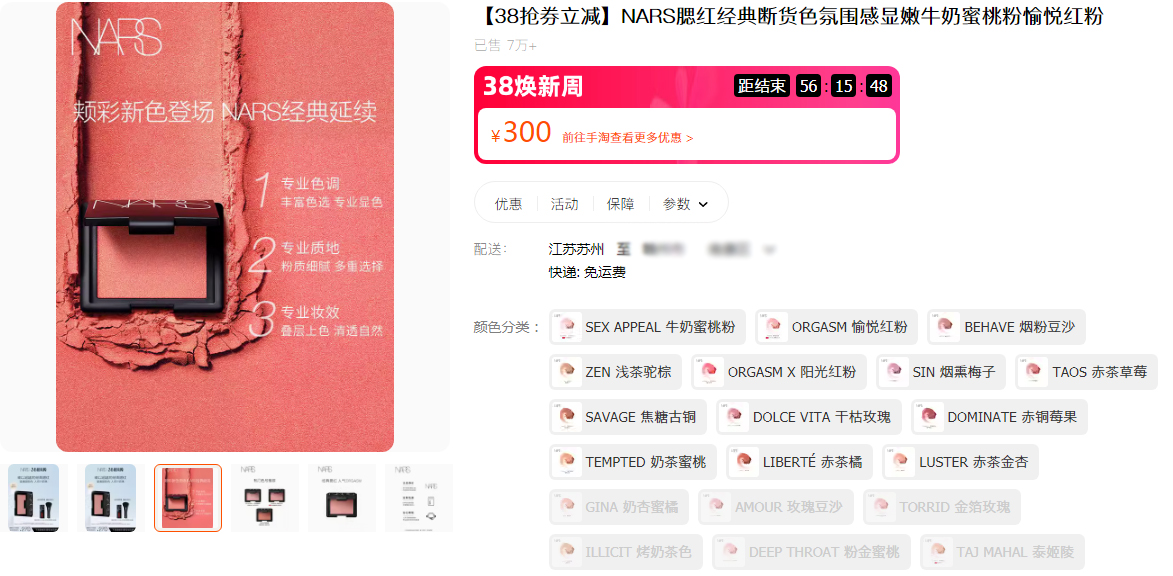 【3.7王炸割肉价】Nars腮红泰姬陵4020(国内3年24.6,国际按5年26.6)