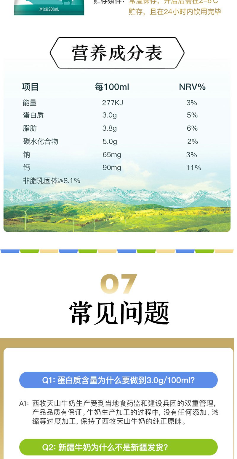 西牧天山新疆纯牛奶袋装纯奶整箱儿童学生营养早餐奶200ml*20袋