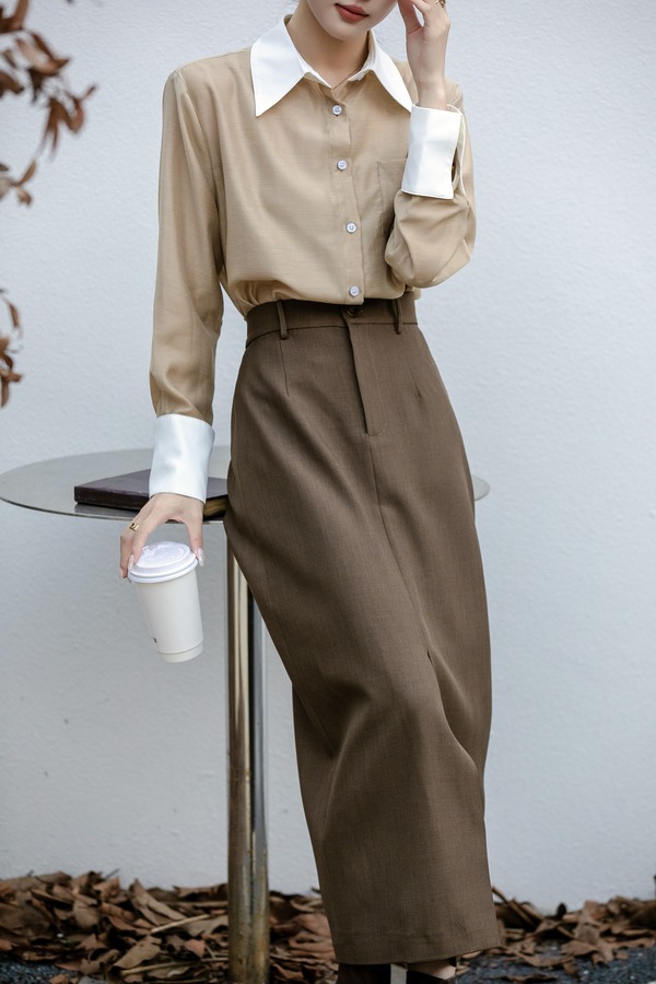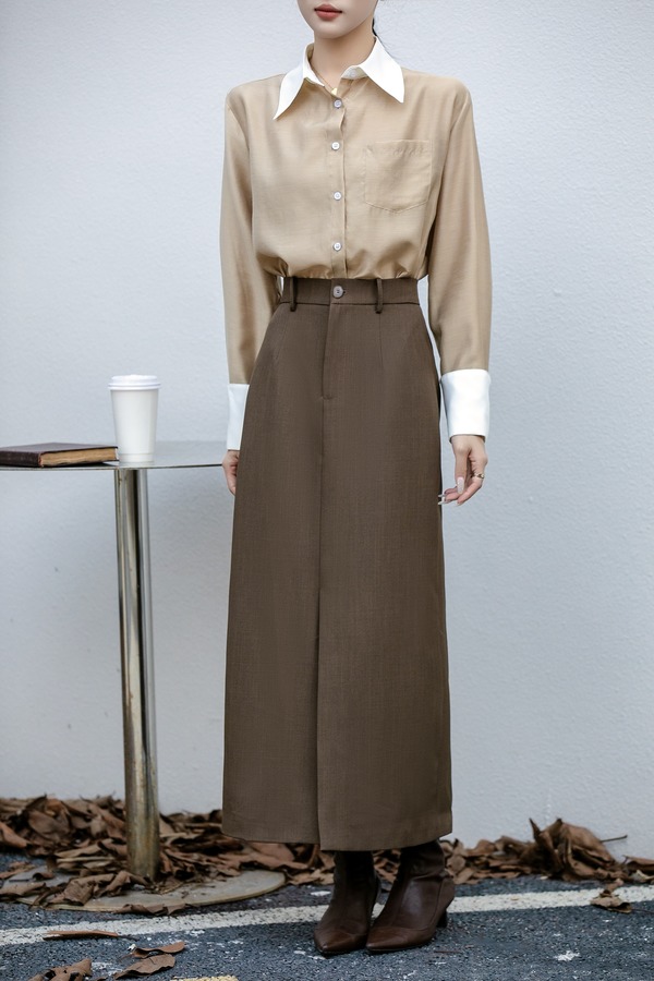 ESTELLICA 气质通勤西装开叉直筒半裙 21476