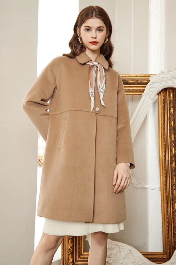 MEETLADY/米莱达 中长款字母丝巾毛呢大衣 14772