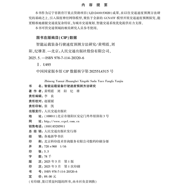 书名:智能运载装备行驶速度预测方法研究