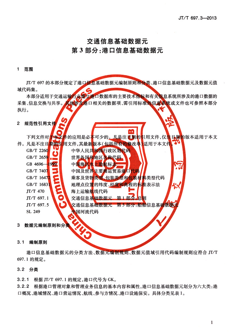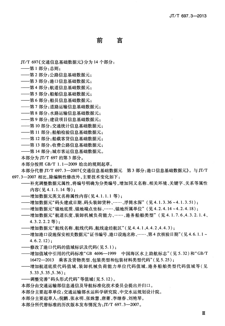 书名:交通信息基础数据元 第3部分:港口信息基础数据元(JT/T 697.3—2013)