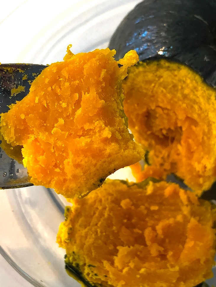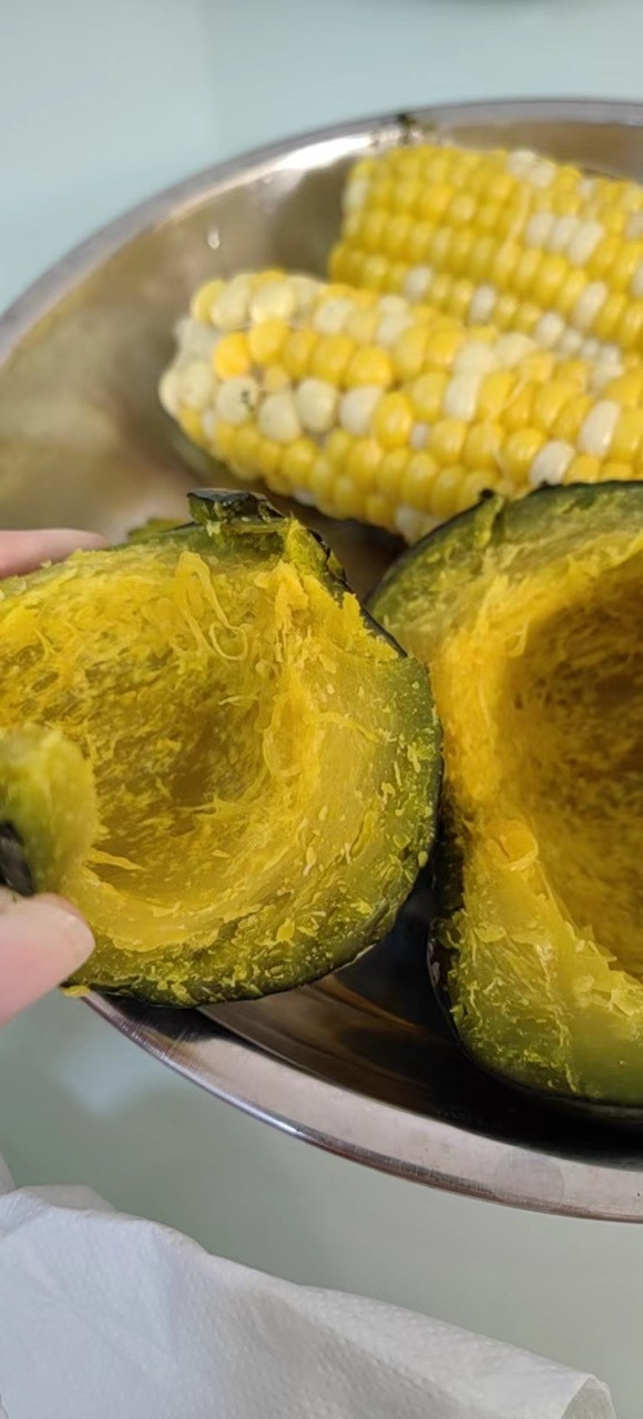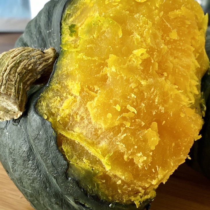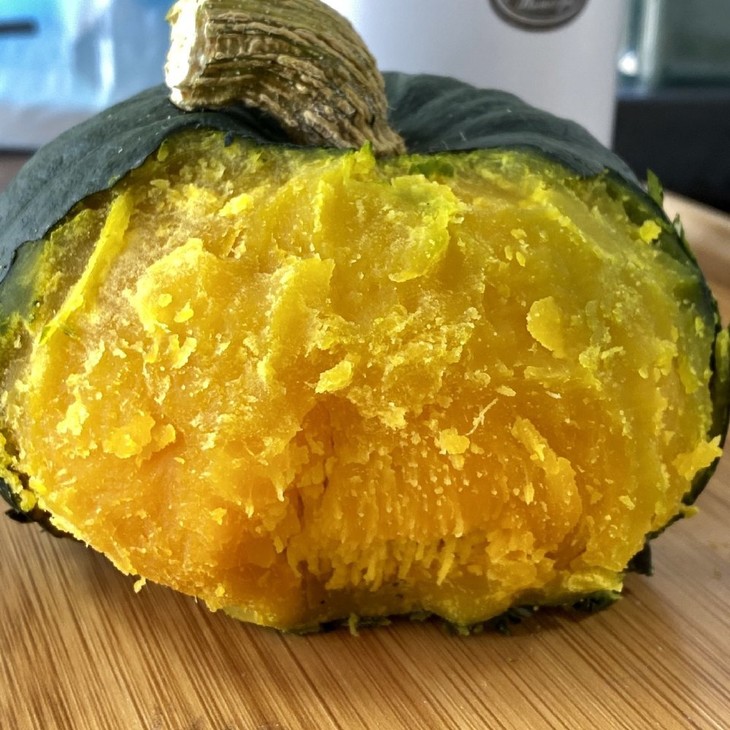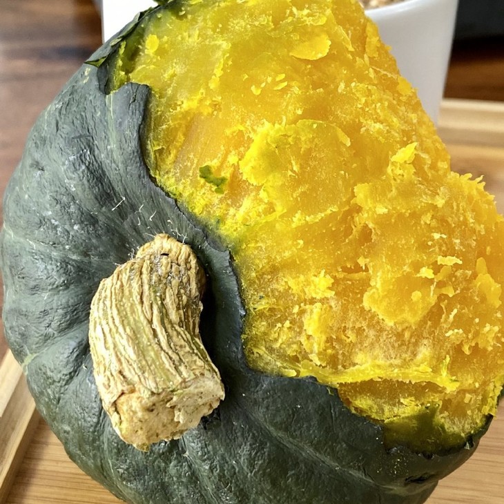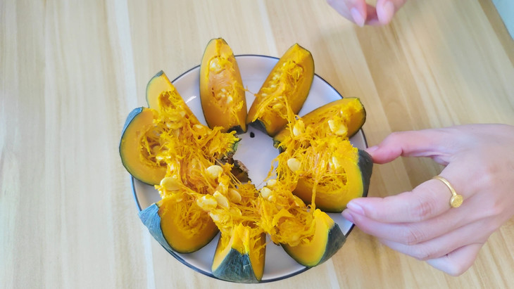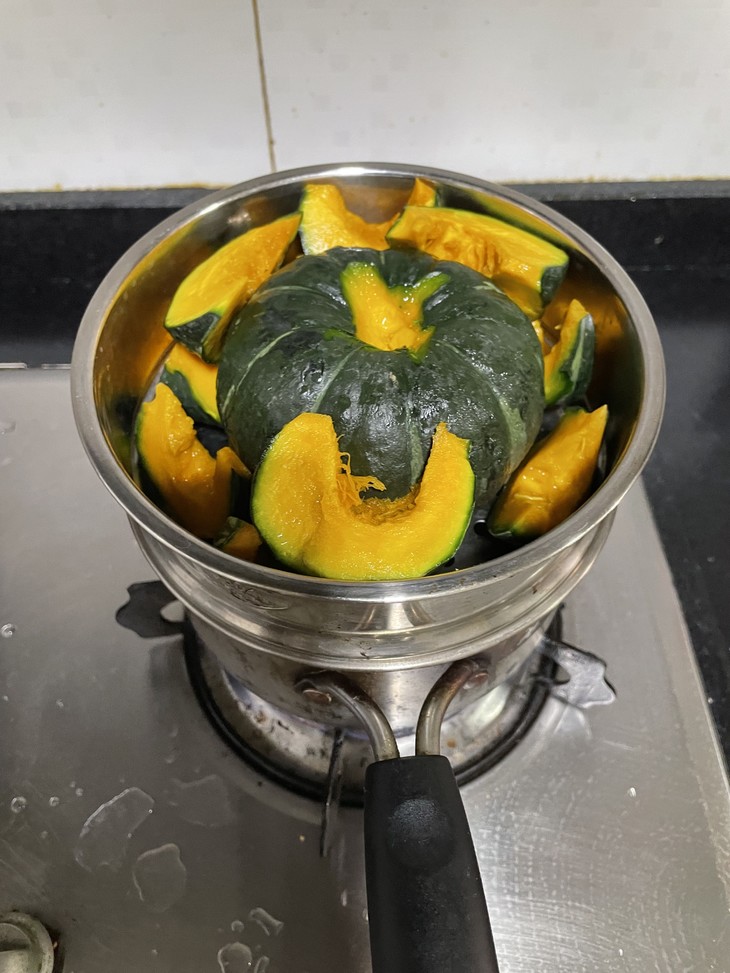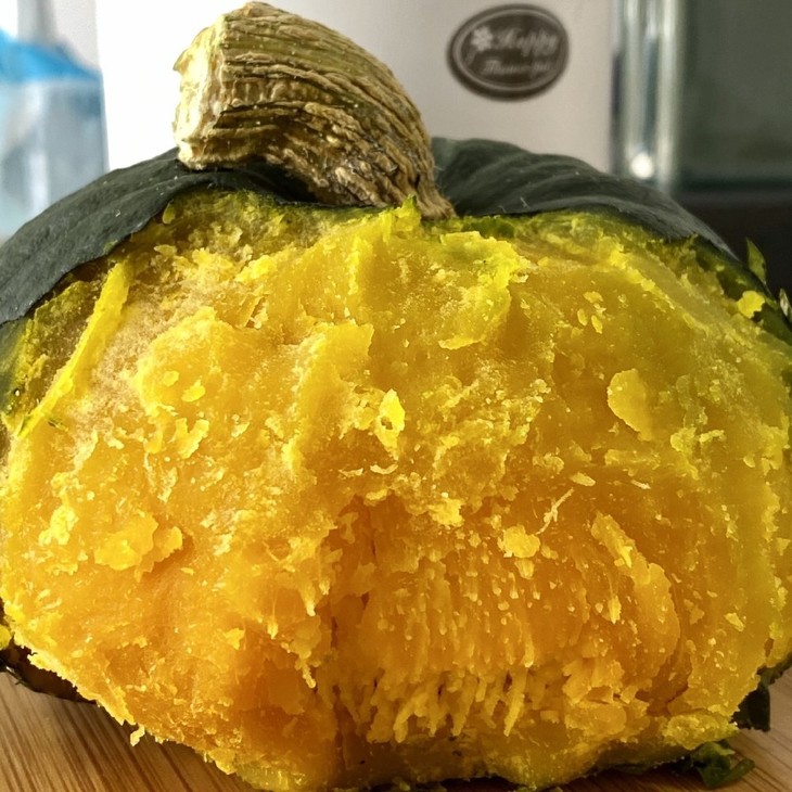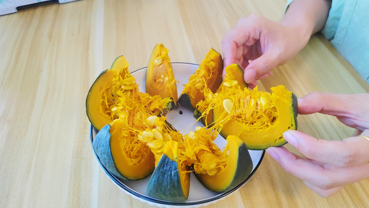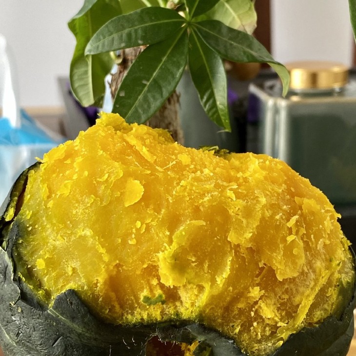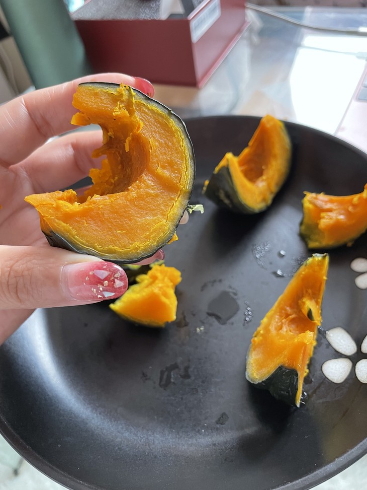 带皮蒸熟的贝贝南瓜,用勺子轻轻一压就变成了泥,浓郁的南瓜香扑面而来