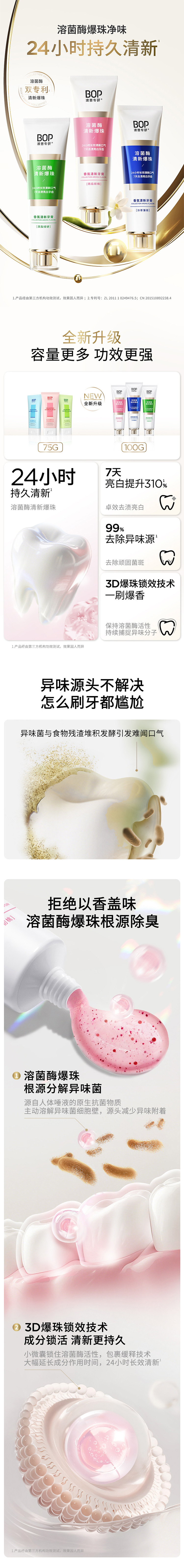 BOP波普专研香氛清新牙膏(雨后初桃香型)100g
