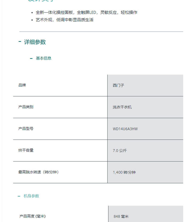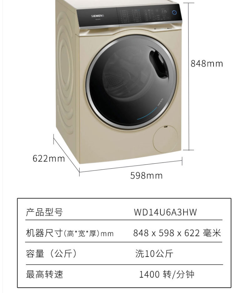 西门子洗衣机全自动大家电智能投放10洗+7烘干XQG100-WD14U6A3HW