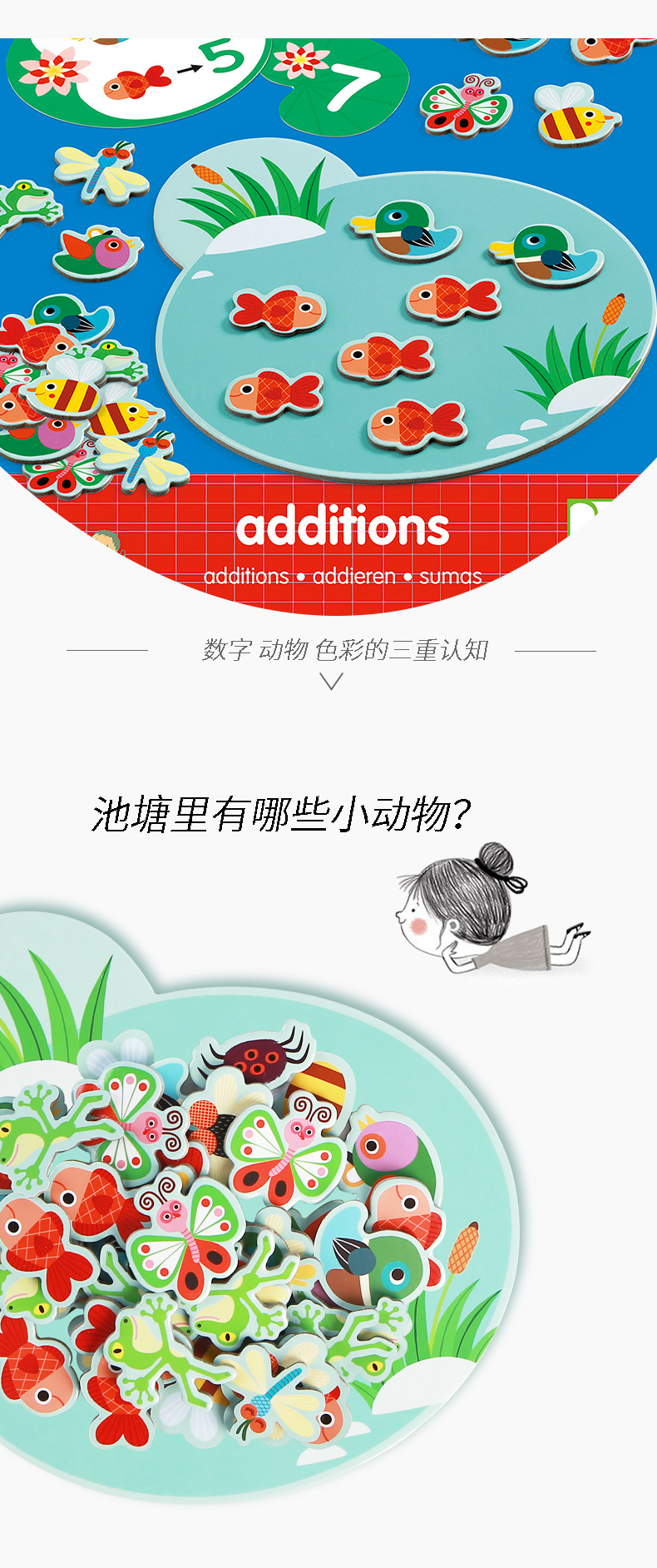 djeco池塘学数数幼儿玩具3-4岁宝宝启蒙学前儿童早教教具益智游戏